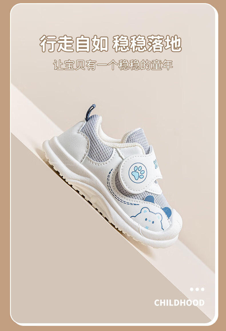 Dr. Jiang Baby Shoes 2026 Spring and Autumn New Boys and Girls Shoes Soft Sole Functional Toe-Toe Anti-Kick Infant Toddler Shoes White/Gray Cut Label and Remove Cabinet 14 Inner Length 12.5cm