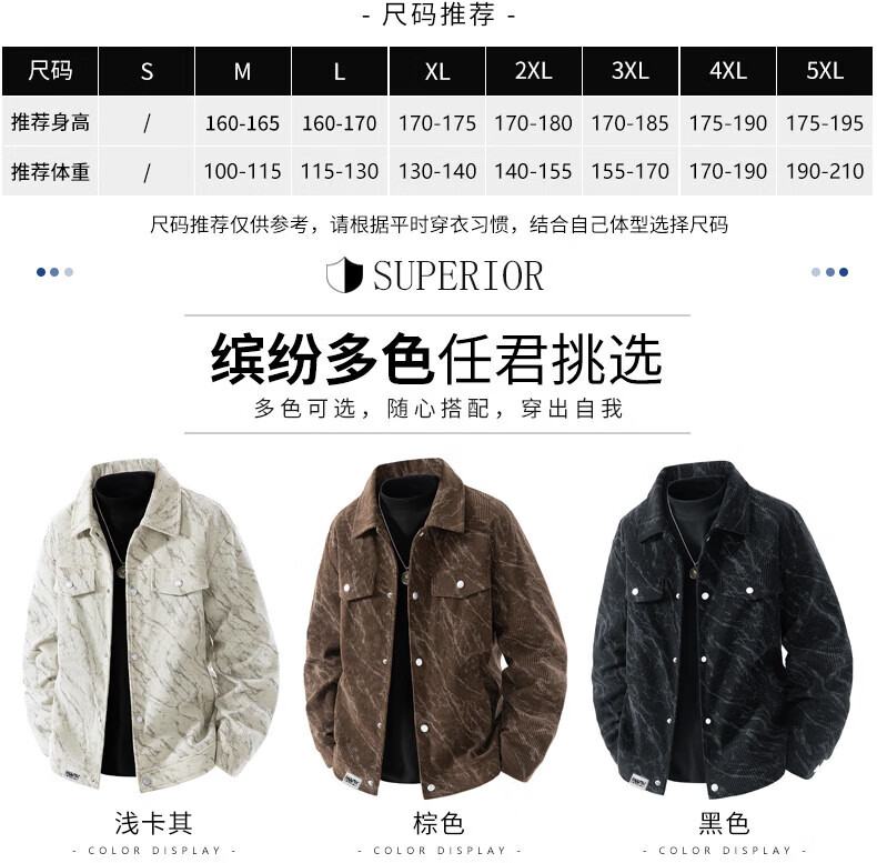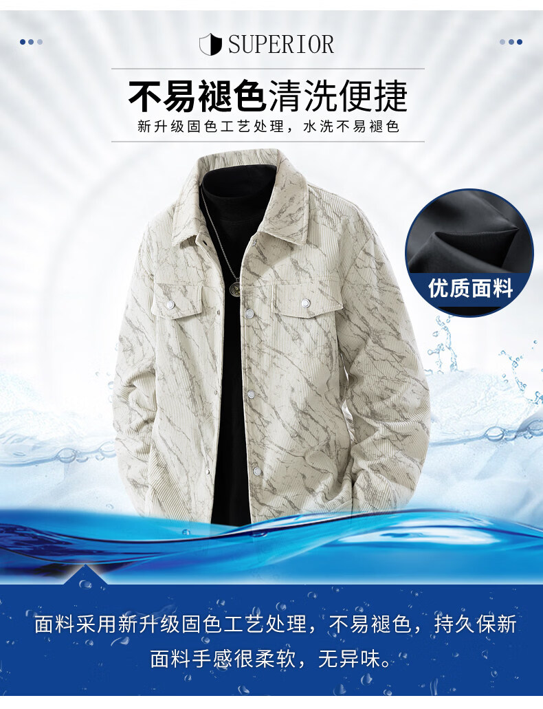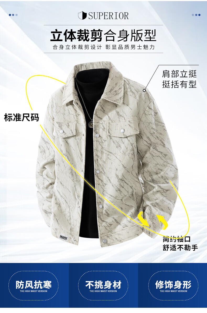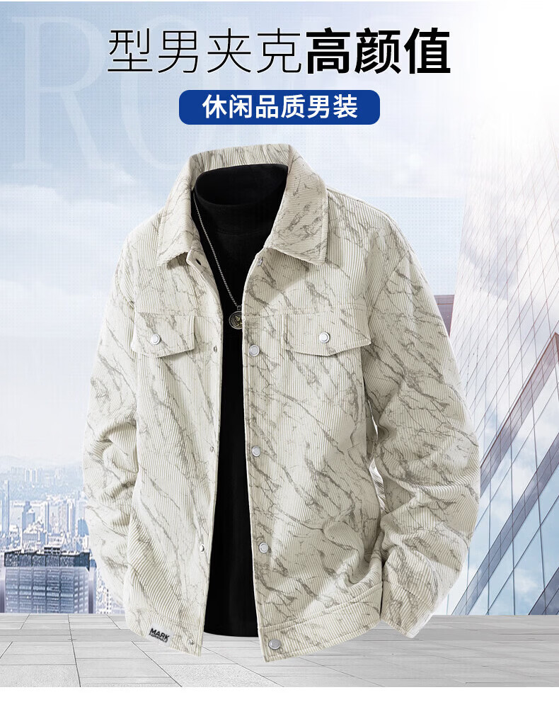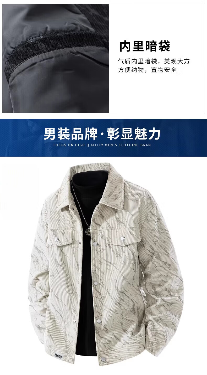 MARK FAIRWHALE Corduroy Men's Jacket Spring and Autumn 2026 New Lapel Workwear Top Casual Versatile Jacket Men's Light Khaki L30 Style 2XL