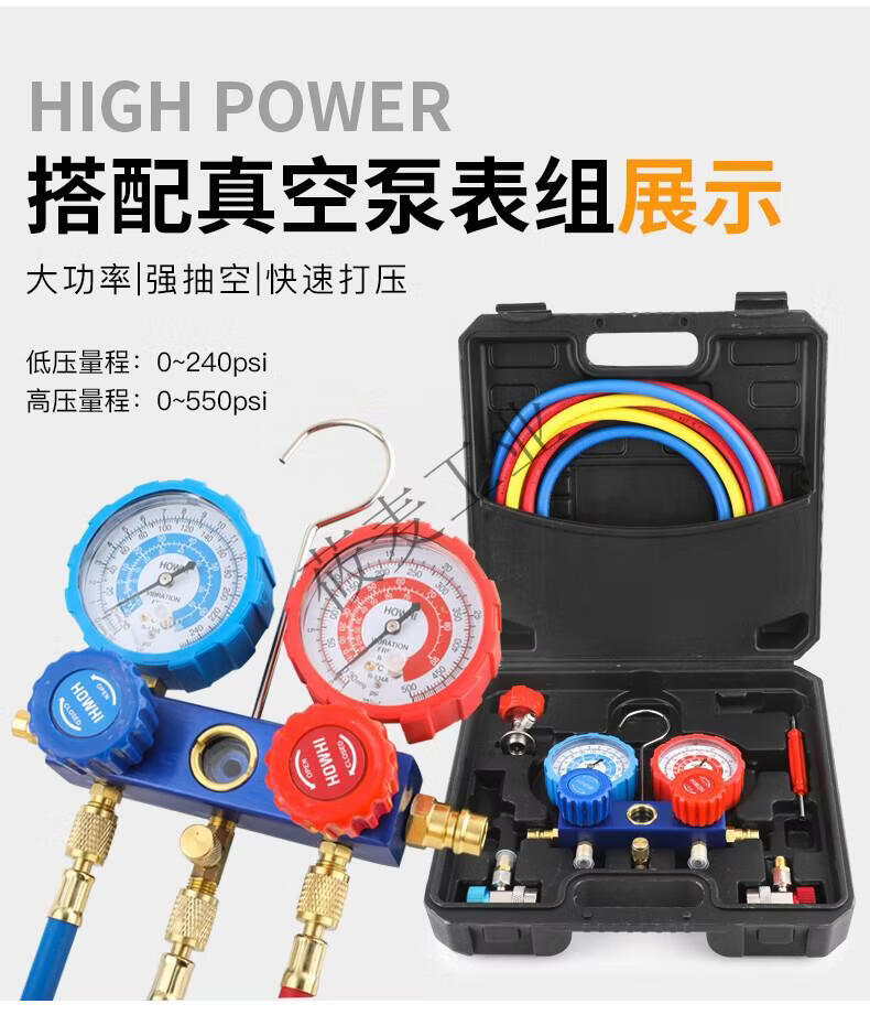 三栖虎汽车空调抽真空泵 抽打两用真空泵冷媒加注轮胎打气 冰箱维修工具 780单机+可调双表套装 现货直发