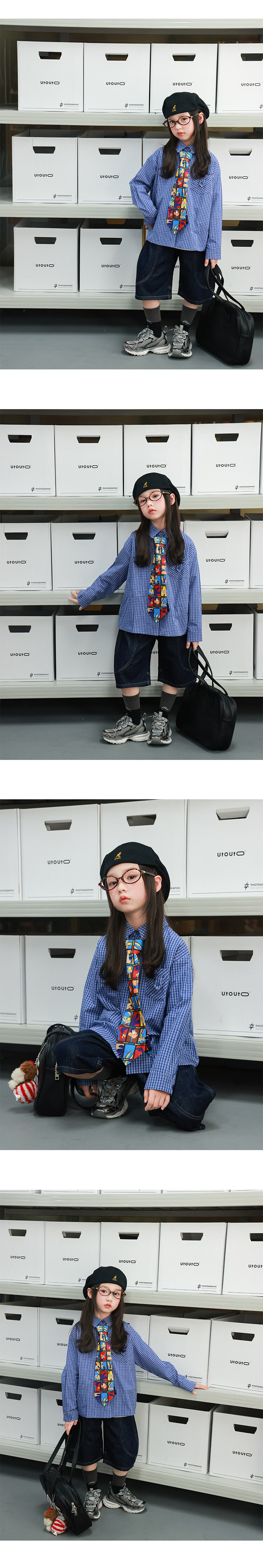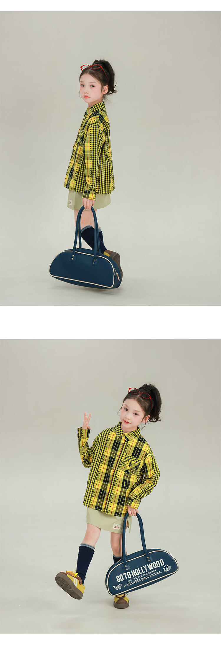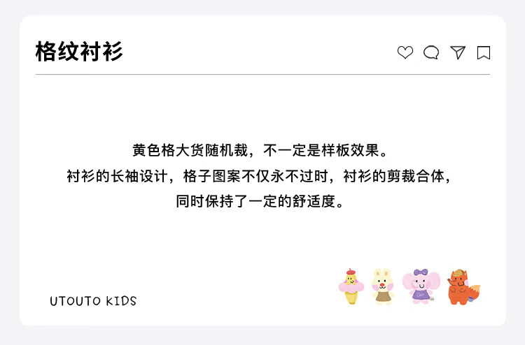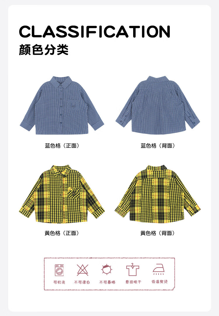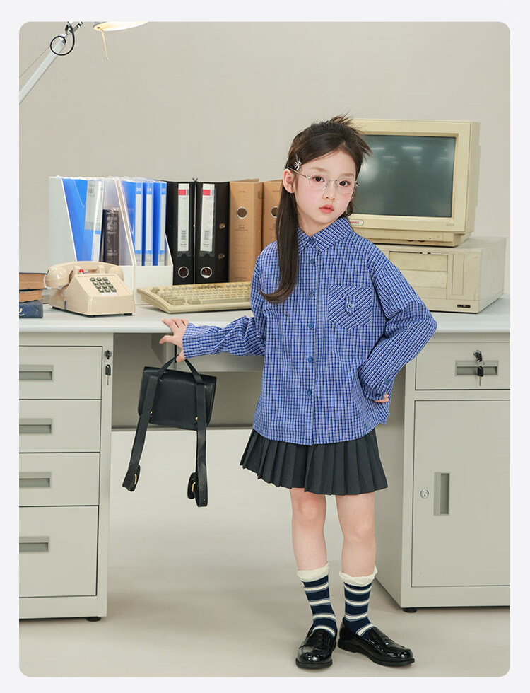 UTOUTO Big Ear Elephant Girls Plaid Shirt 2026 Spring New Baoer Trendy Pure Cotton Casual Versatile Long-Sleeved Top Blue Plaid Pre-sale second batch around early April 80