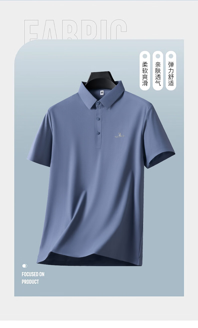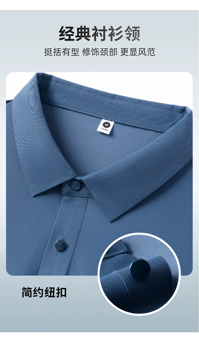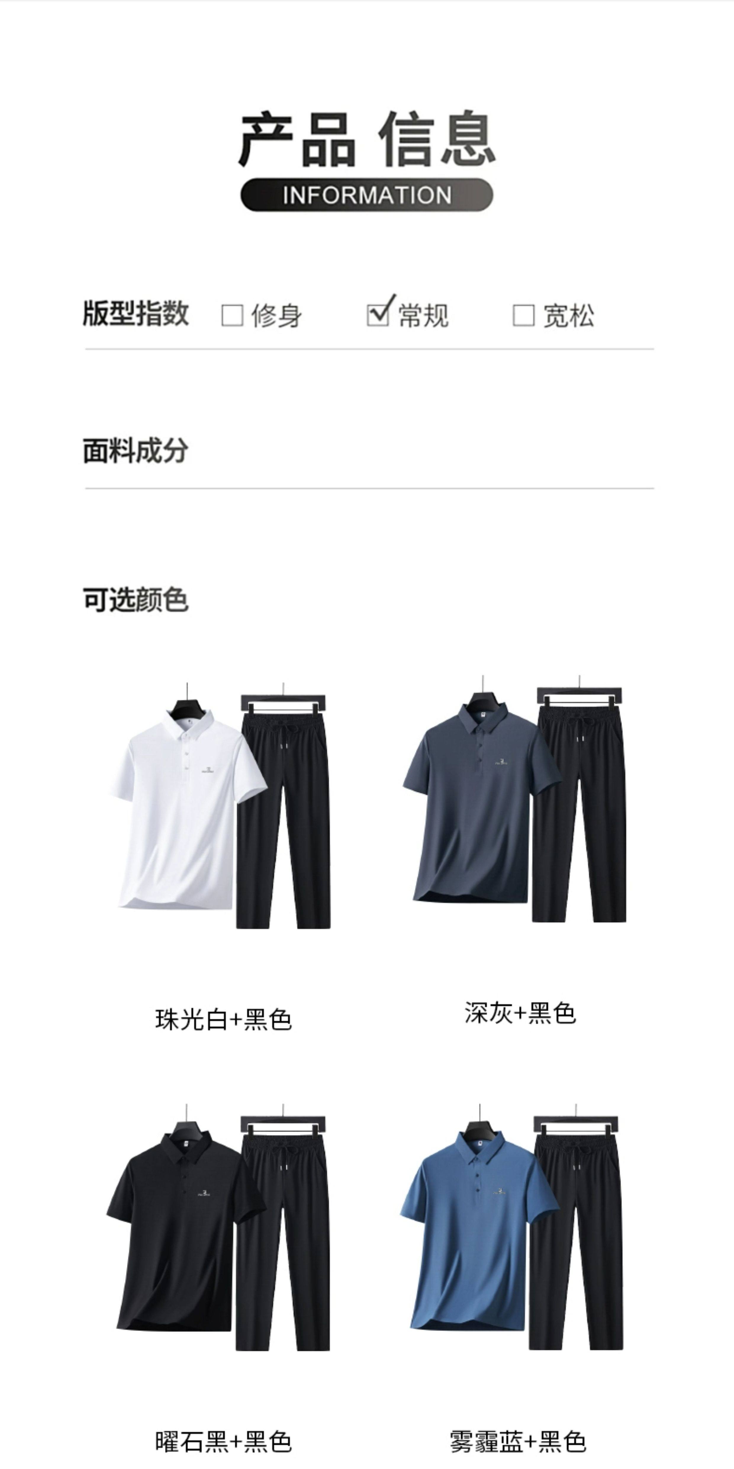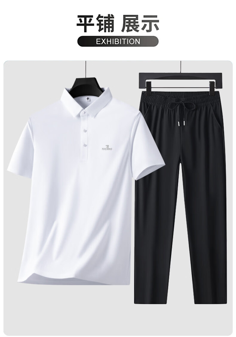 Woodpecker Ice Silk Short Sleeve T-Shirt Men's Dad Suit 2026 New Summer Father's Day Gift Middle-aged and Elderly Men's Polo Shirt Haze Blue Short Sleeve + Black Pants XL (Recommended 125-140 Jin Jin equals 0.5 kg)