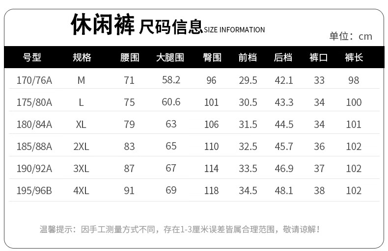 Outseam (cm) 99 cm 101.5 cm 104 cm 106.5 cm 109 cm