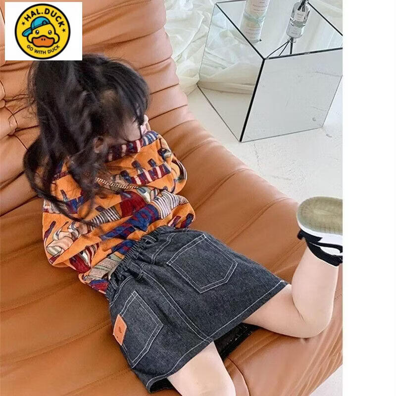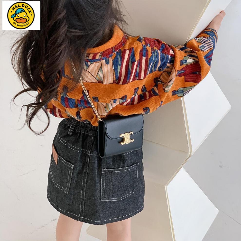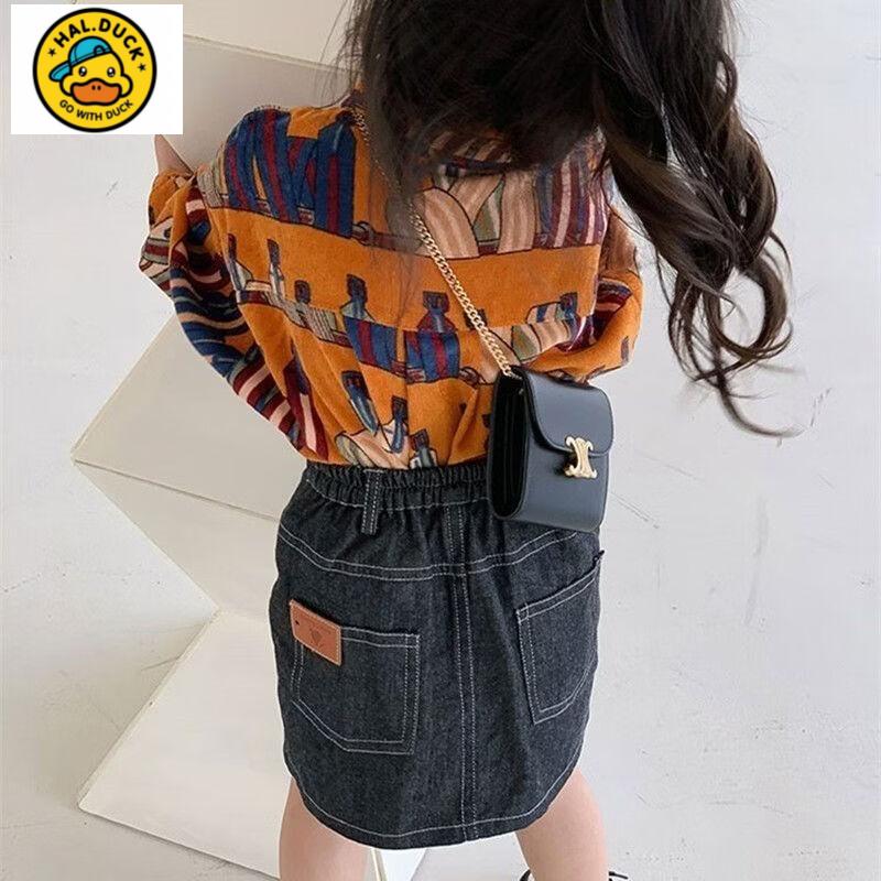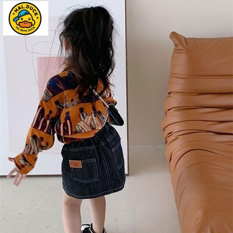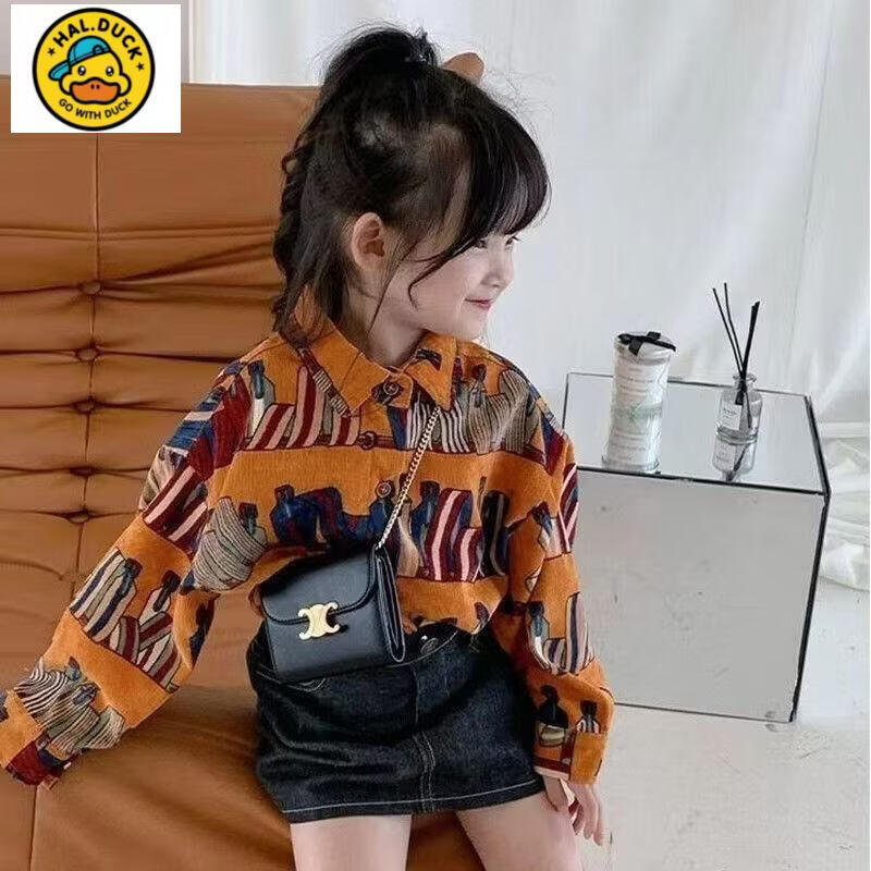 HAL.DUCK Girls' Shirts Spring and Autumn New Children's Style Retro Printed Korean-style Shirts for Children Corduroy Tops Coral Shirts 130 cm (130cm)