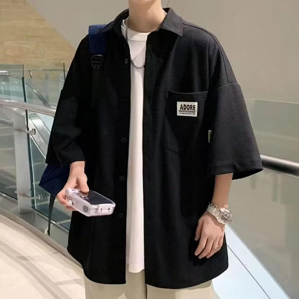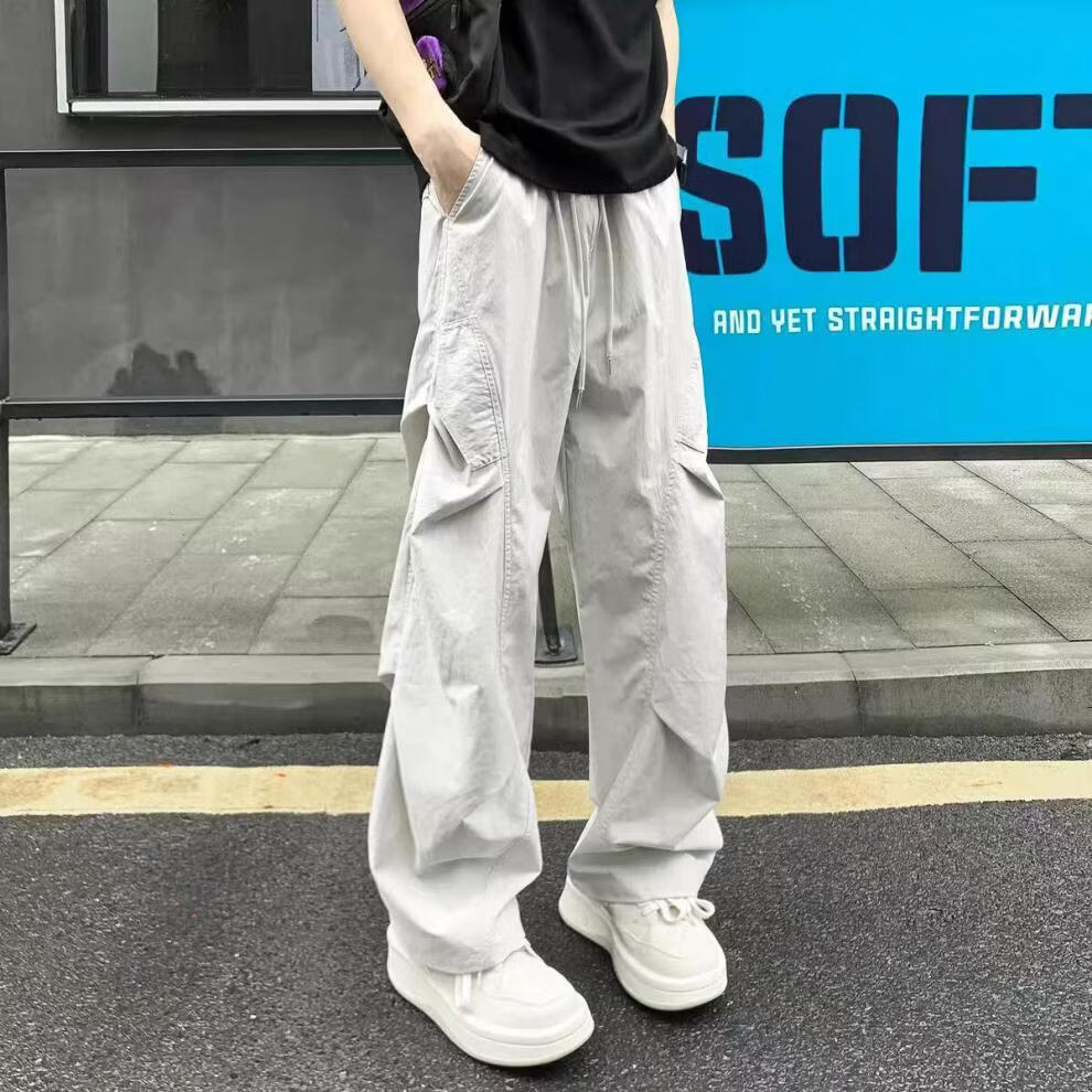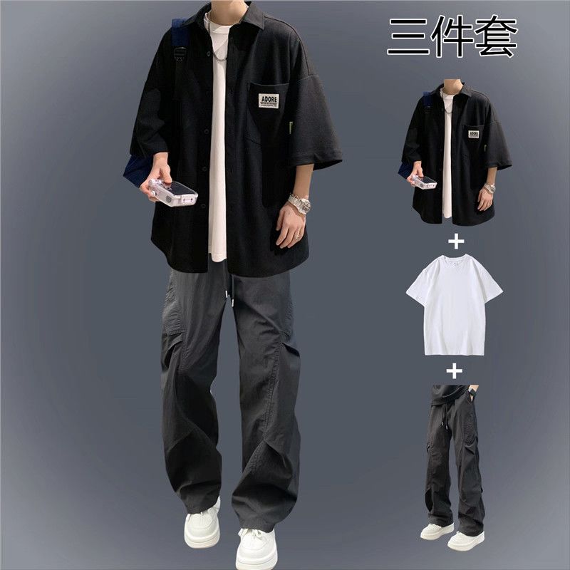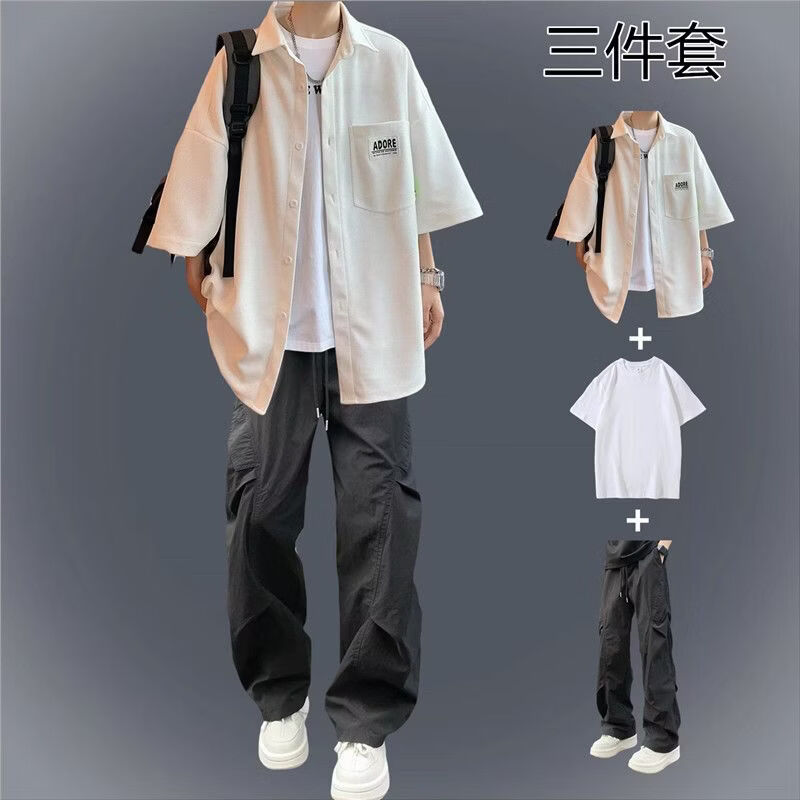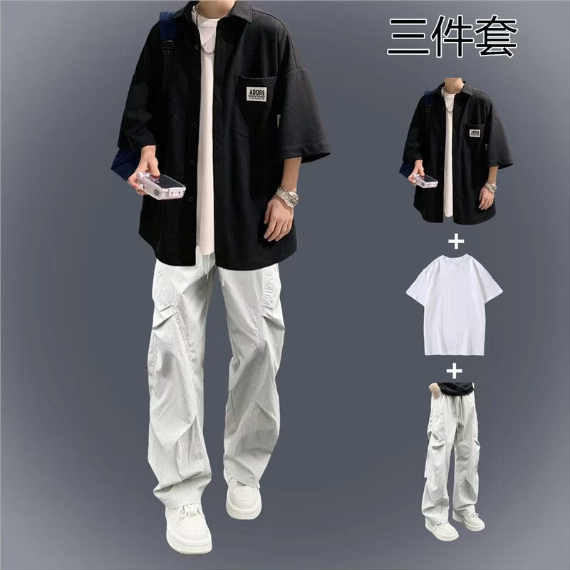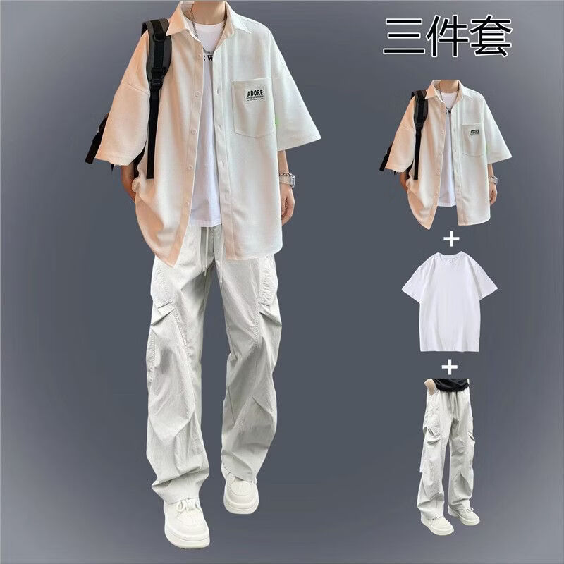 Playboy (PLAYBOY) men's 2026 suit handsome wear summer cool and handsome summer thin new trendy men's clothing boys students teenagers C91 white + light gray overalls + short-sleeved white L 100-115Jin Jin equals 0.5 kg