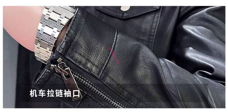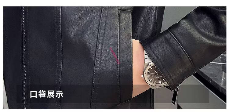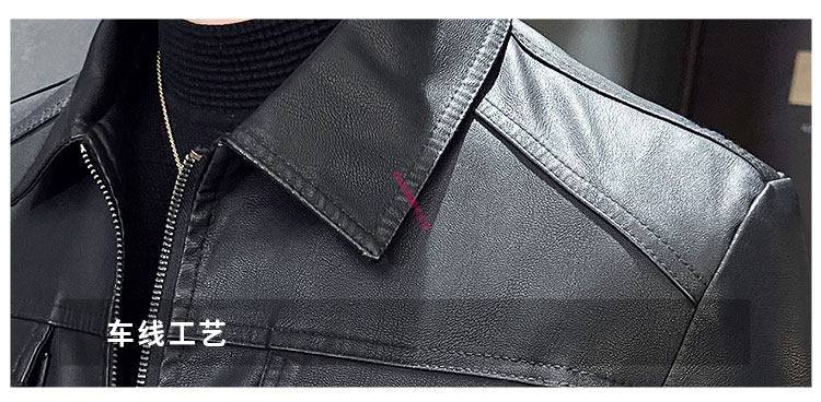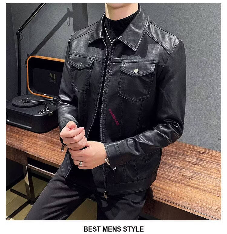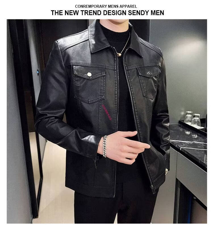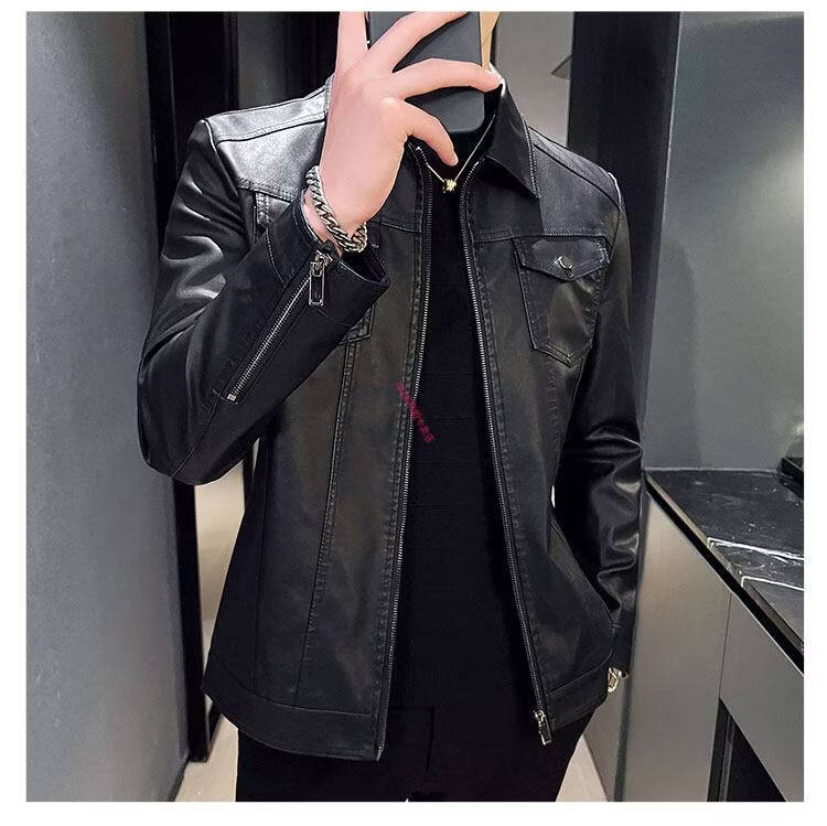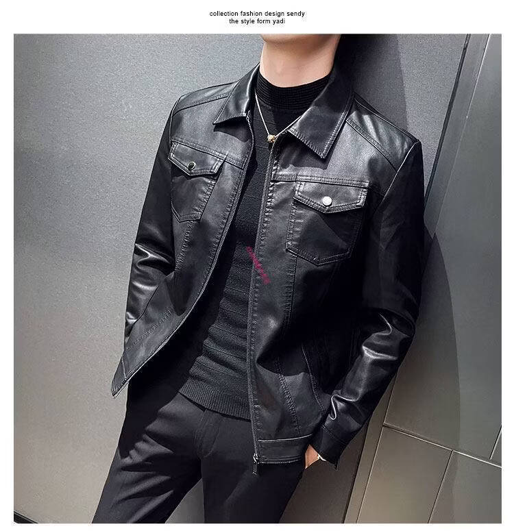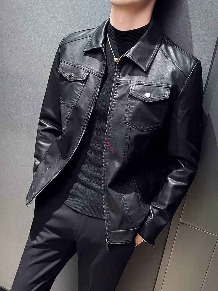 KBXNG Jinba Men's Thin Slim Leather Jacket Men's Lapel Leather Jacket Trendy Casual Black Velvet M Recommended 100-110 Jin Jin equals 0.5 kg