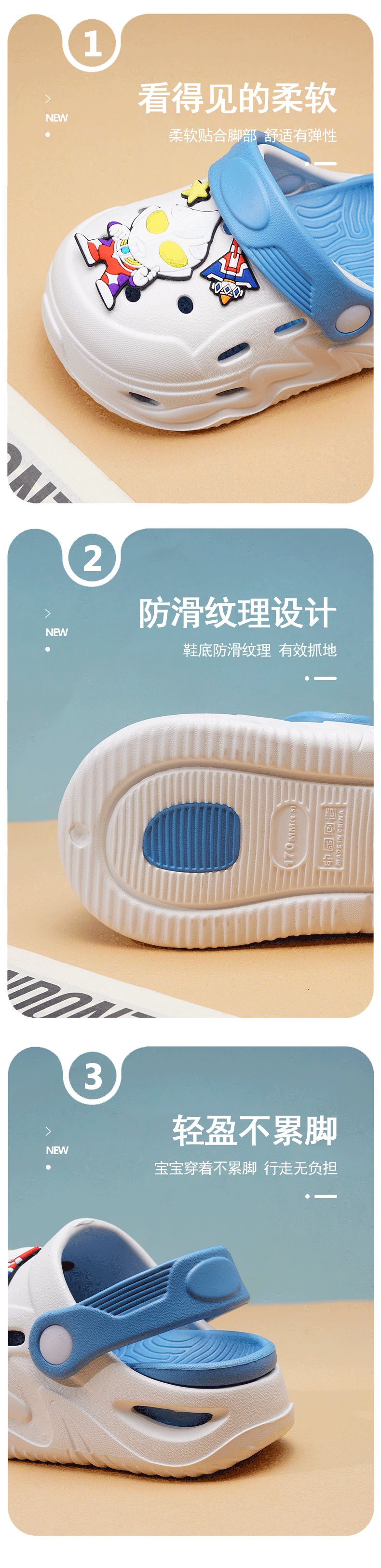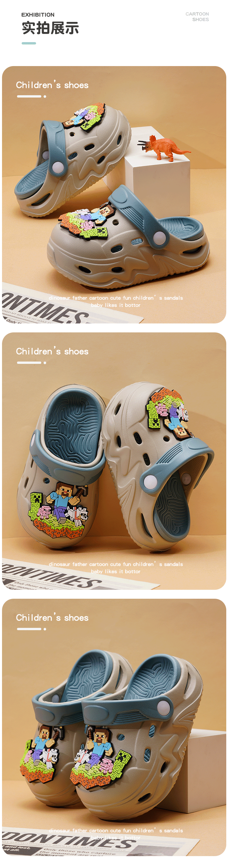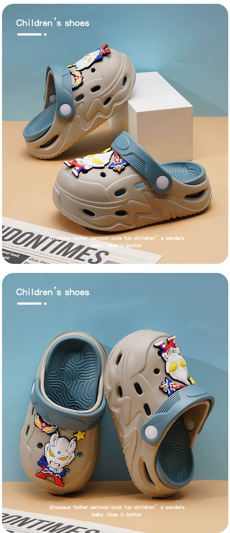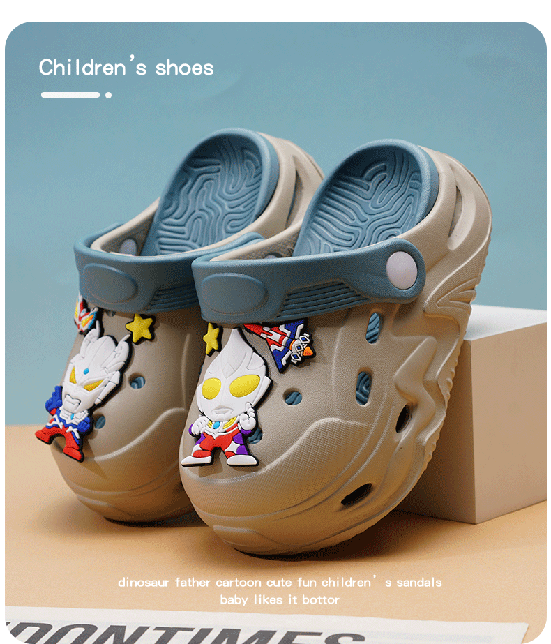 ABC KIDS Children's Croc Shoes for Boys and Girls Summer New Cute Cartoon Boy Sandals Comfortable Non-Slip Soft Bottom Beach Slippers Gray Blue Zombie War 26 / 27 Inner Length 18CM