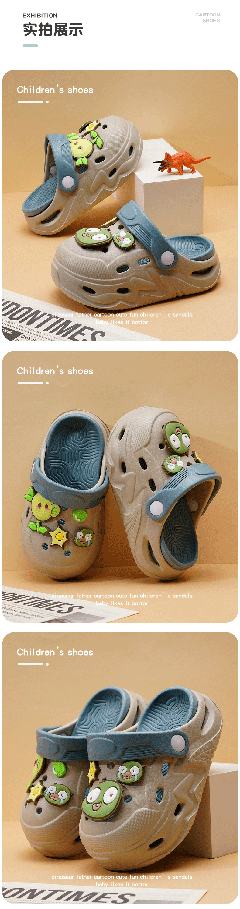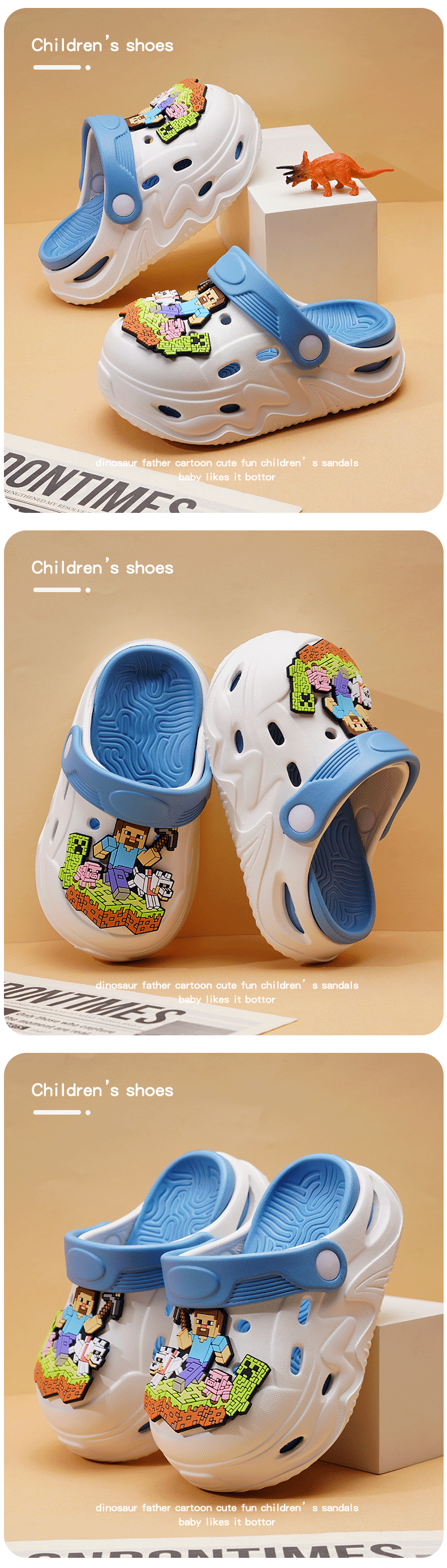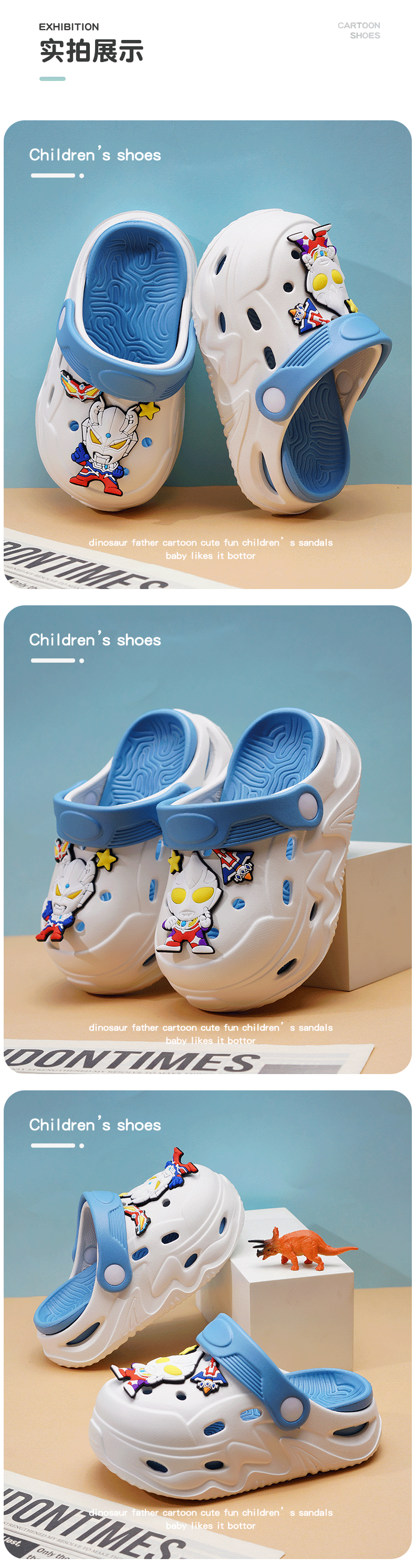 ABC KIDS Children's Croc Shoes for Boys and Girls Summer New Cute Cartoon Boy Sandals Comfortable Non-Slip Soft Bottom Beach Slippers Gray Blue Zombie War 26 / 27 Inner Length 18CM