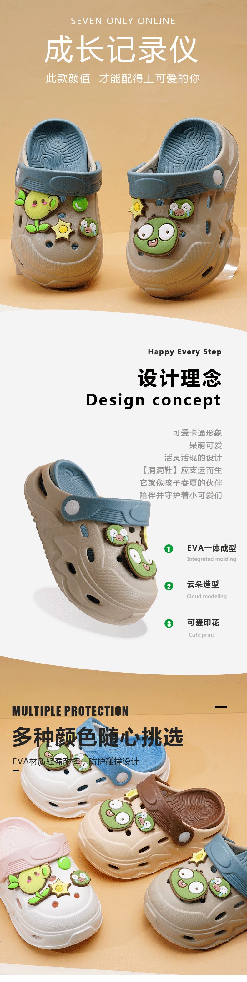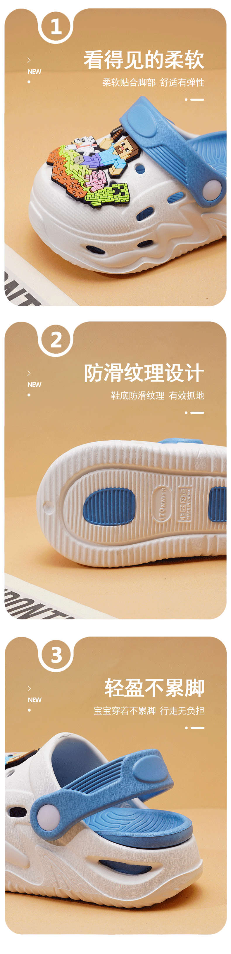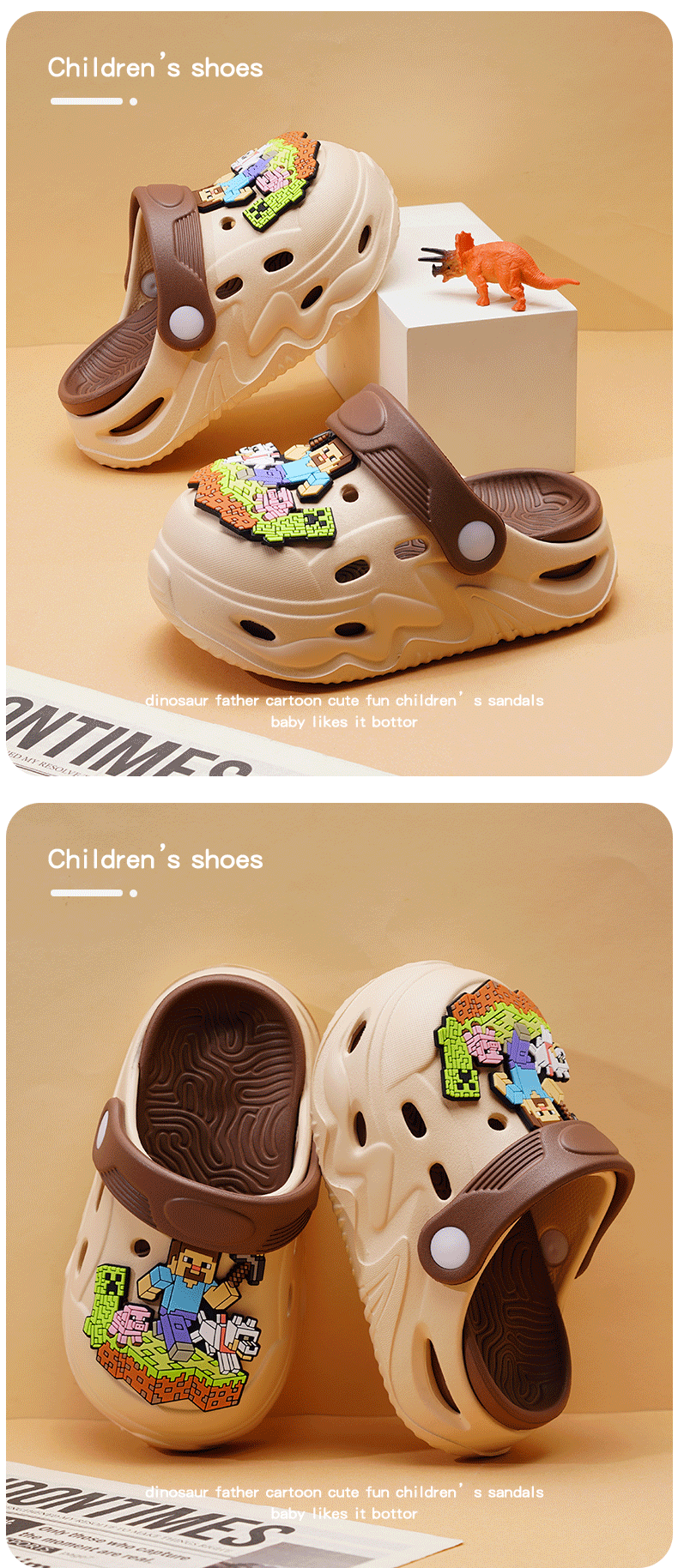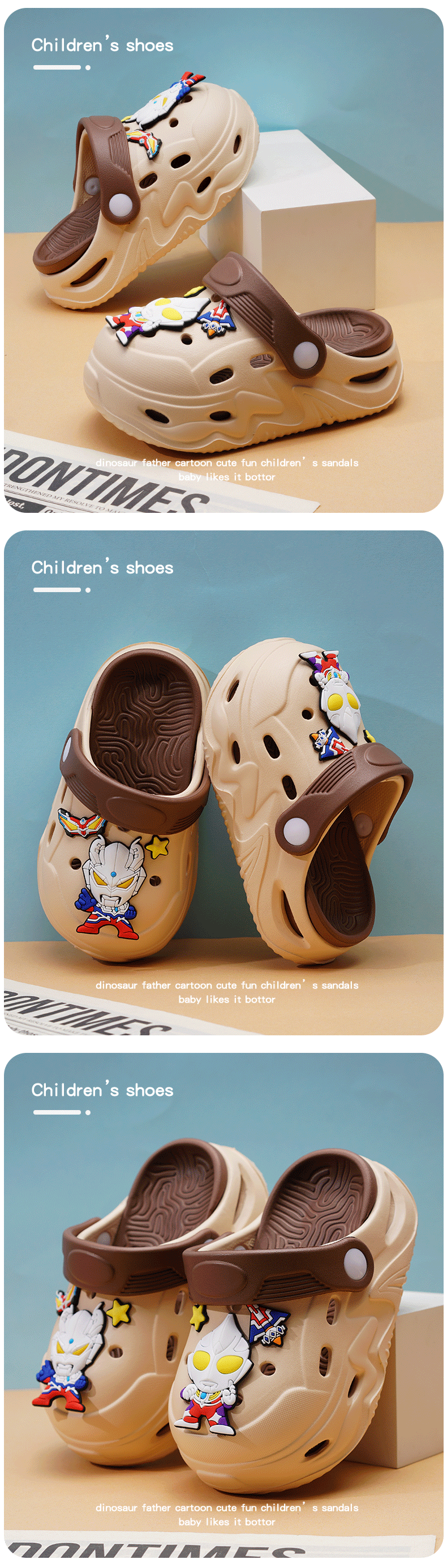ABC KIDS Children's Croc Shoes for Boys and Girls Summer New Cute Cartoon Boy Sandals Comfortable Non-Slip Soft Bottom Beach Slippers Gray Blue Zombie War 26 / 27 Inner Length 18CM