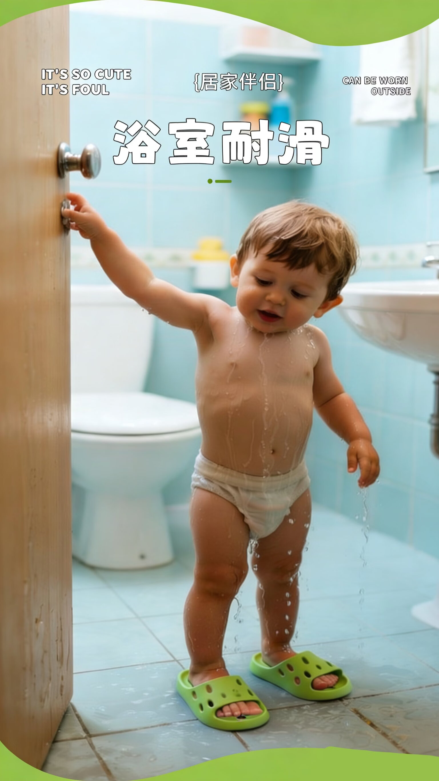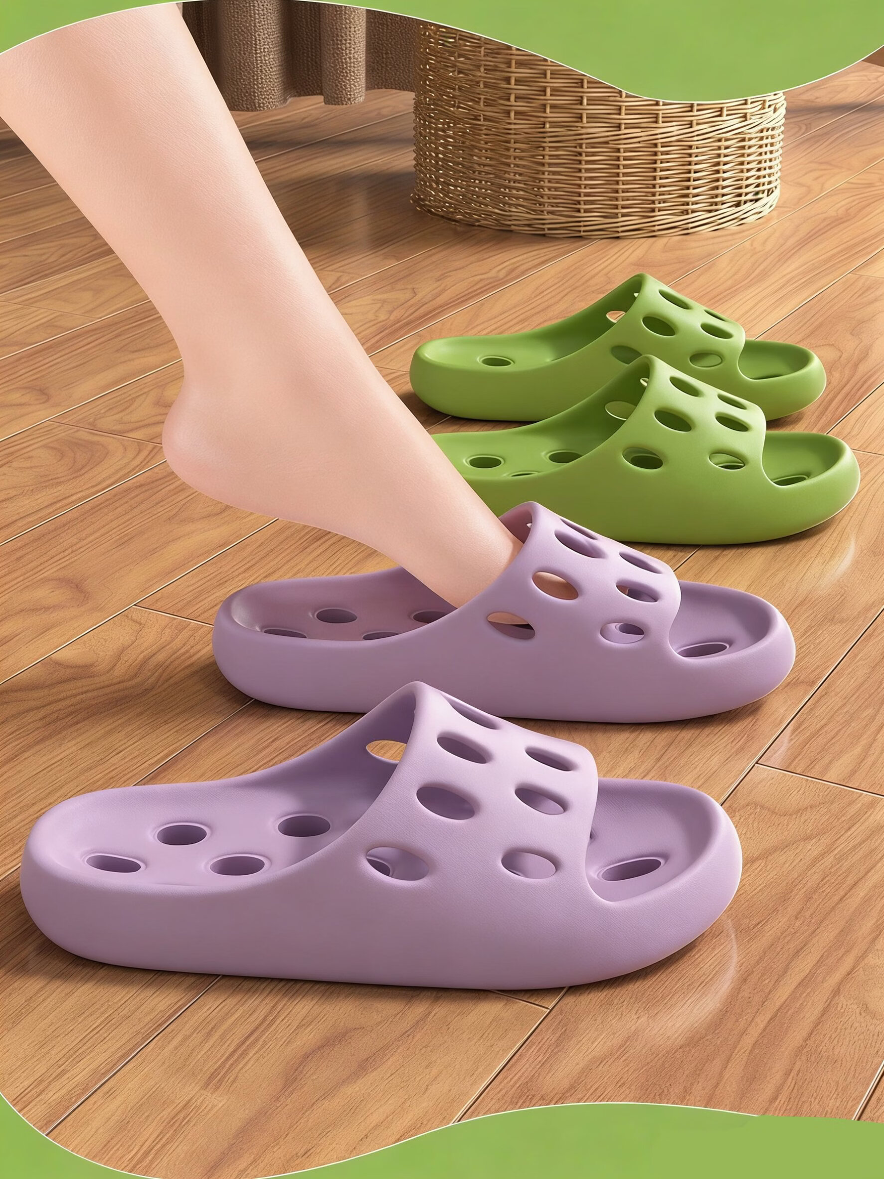Xinnan children's bathroom slippers for boys and girls 2026 new indoor and outdoor home bathing anti-leak slippery parent-child slippers green children's bathroom leaking slippers 34-35 size