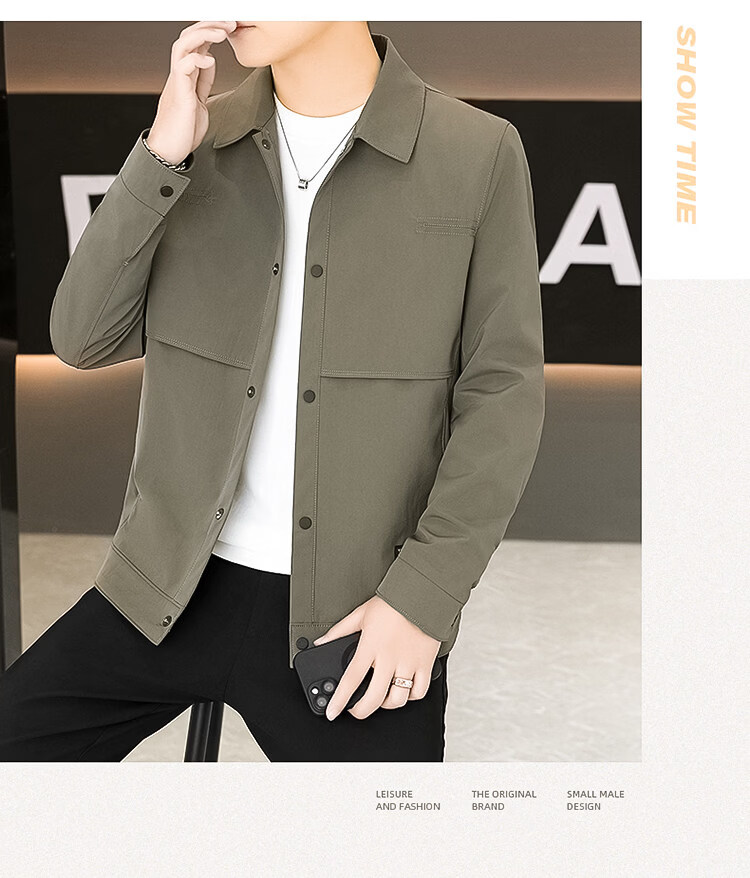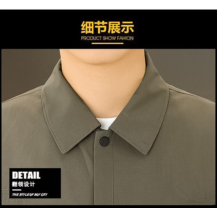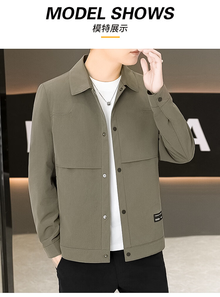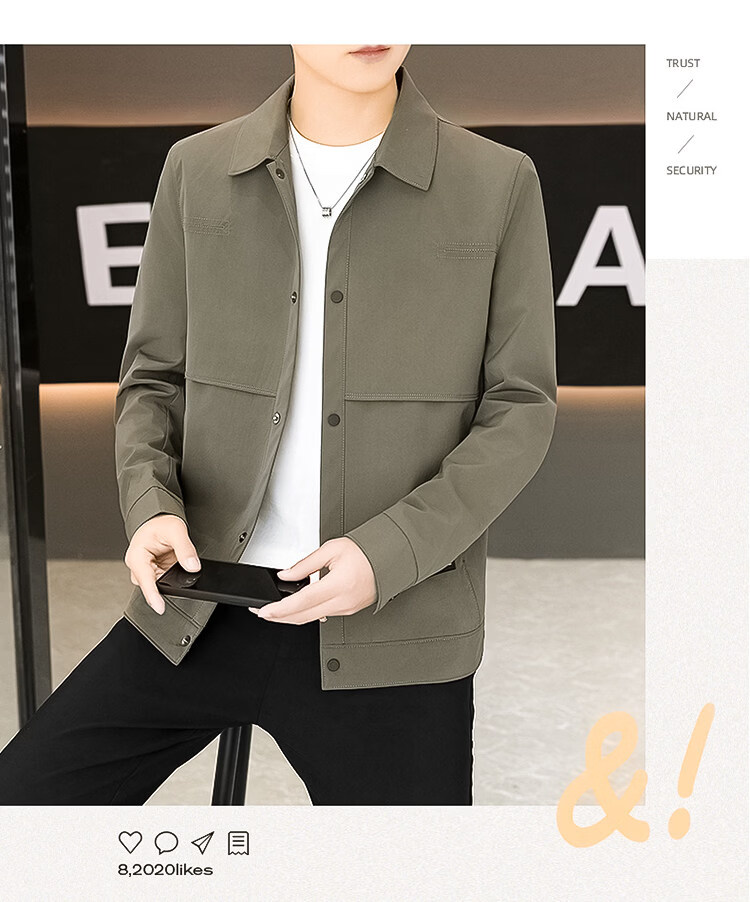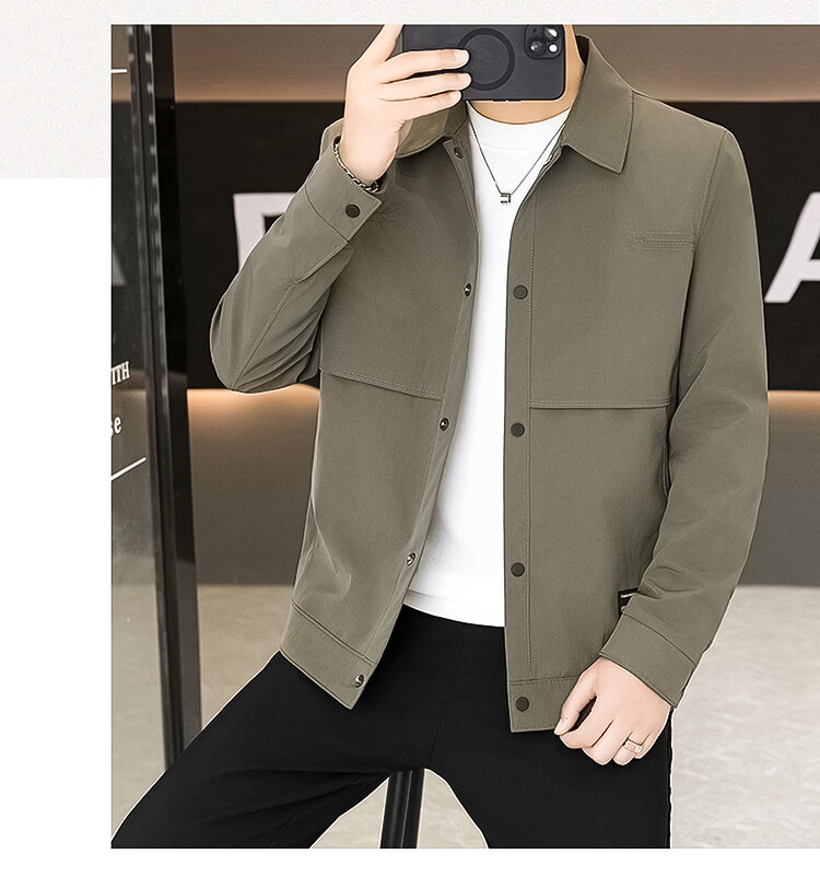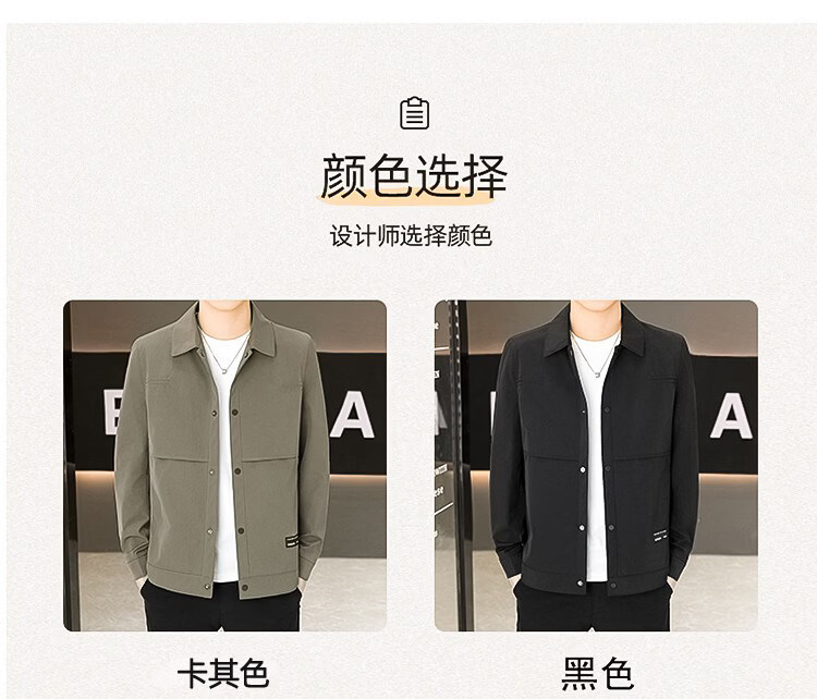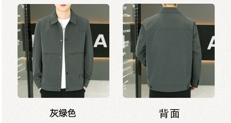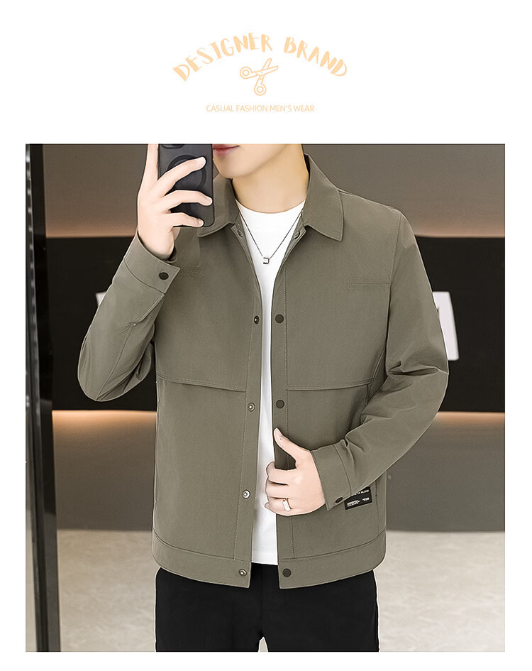 ROMON Jacket Men's Short Lapel Casual Jacket Spring and Autumn New Handsome Versatile Thin Workwear Top Beige L 175