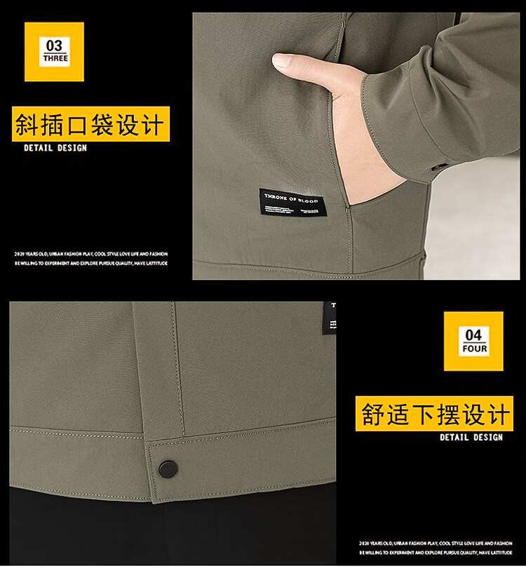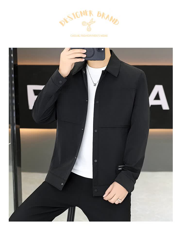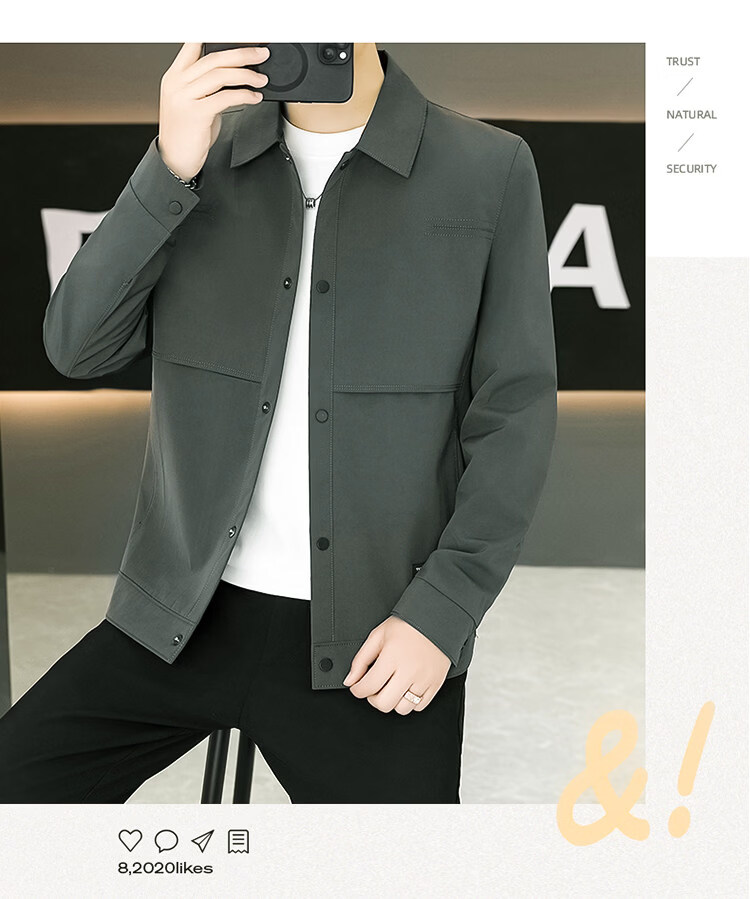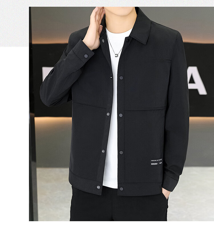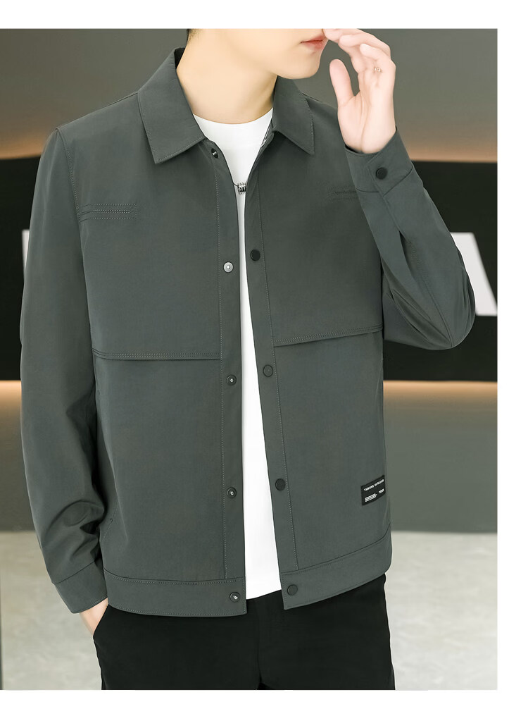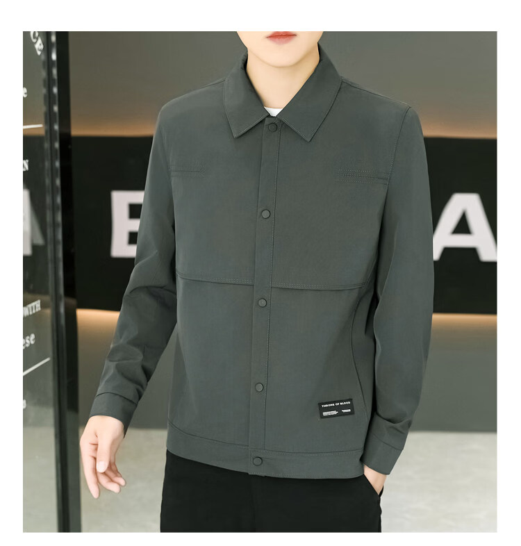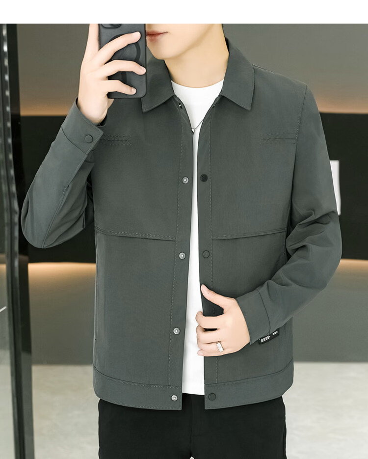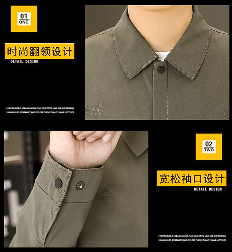 ROMON Jacket Men's Short Lapel Casual Jacket Spring and Autumn New Handsome Versatile Thin Workwear Top Beige L 175
