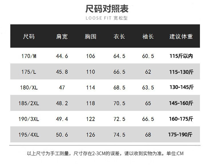 China (cm) 165 / 88-90 170 / 96-98 175 / 108-110 180 / 118-122 185 / 126-130