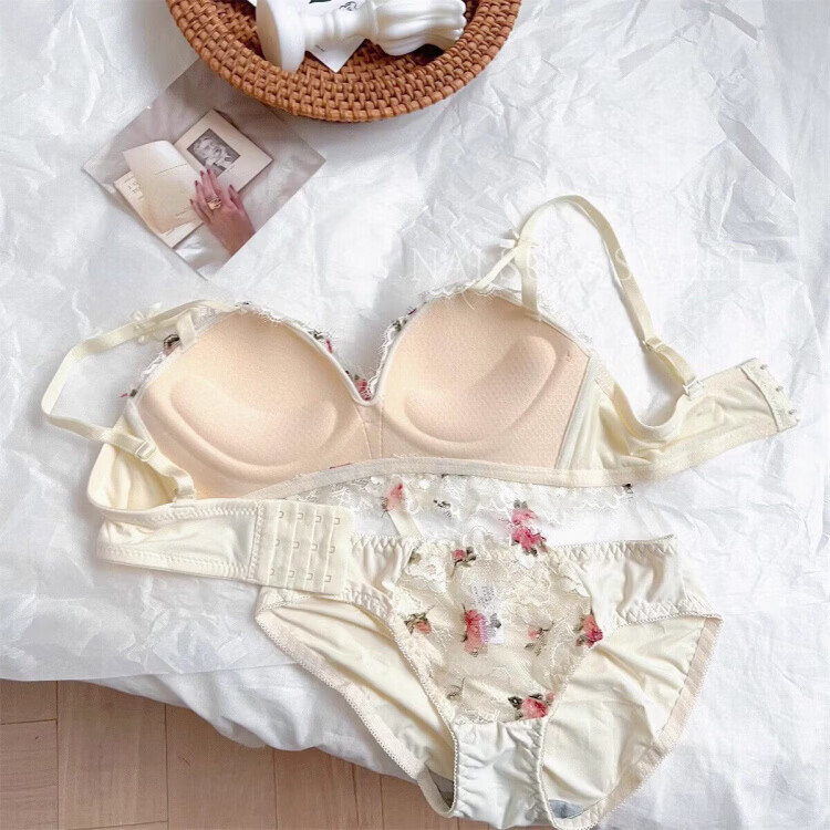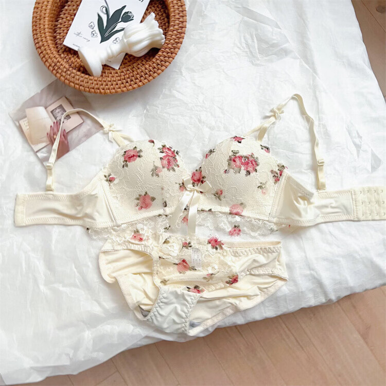 Agent Provocateur Light Luxury Brand Women's Underwear Feminine Small Breast Gathering Wire-Free Secondary Breast Control Anti-Sagging Bra Set Off-White - Set 70C 32