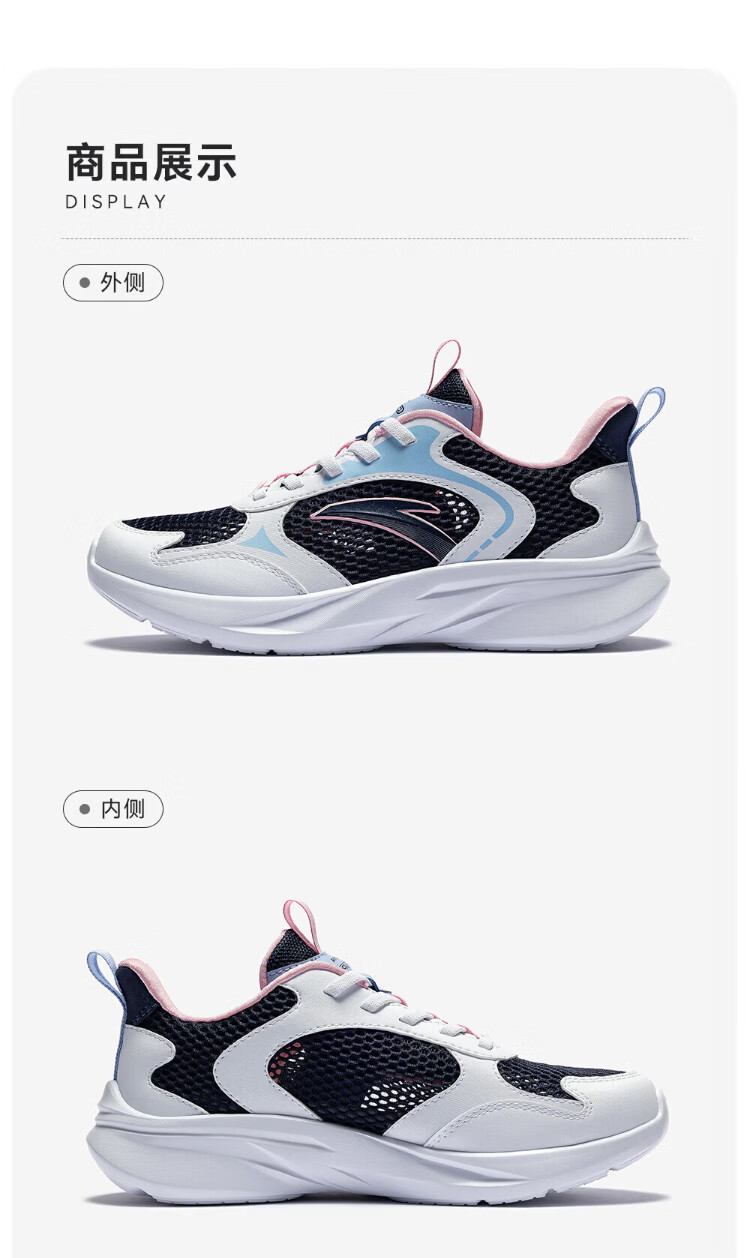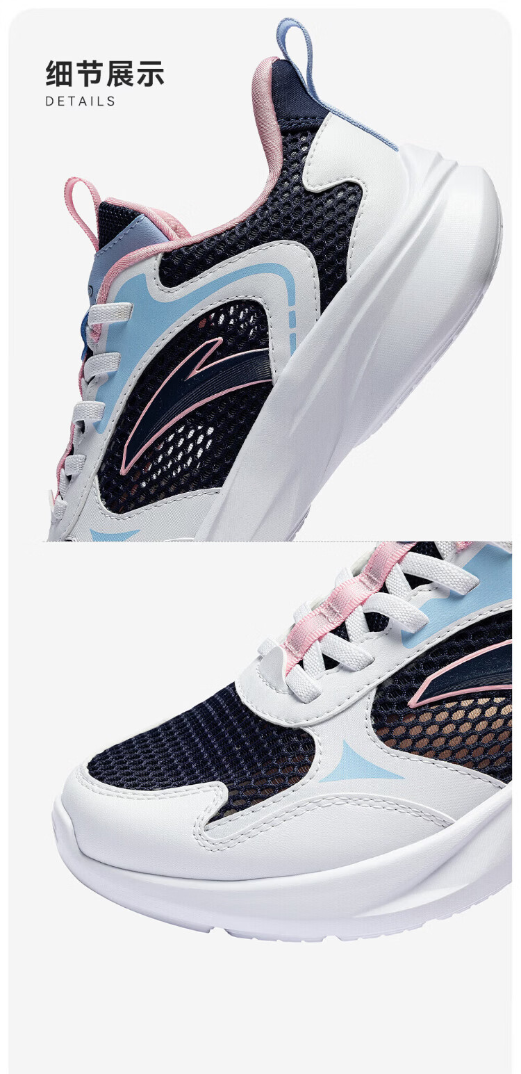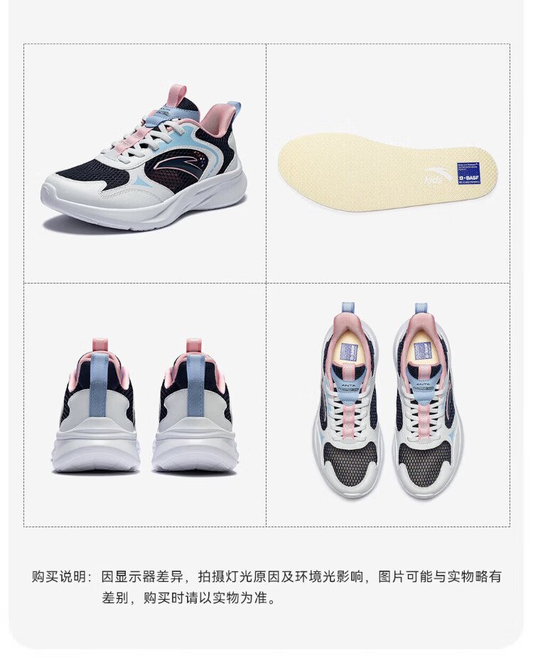 ANTA (ANTA) Children's Sports Shoes for Girls, Middle and Large Children Running Shoes 26 Summer Large Mesh Crocs Comfortable Soft Soled White Shoes Sandals Misty Purple/Ivory White/Evening Mist Blue Jiandan Technology 34 Foot Length 21.5cm