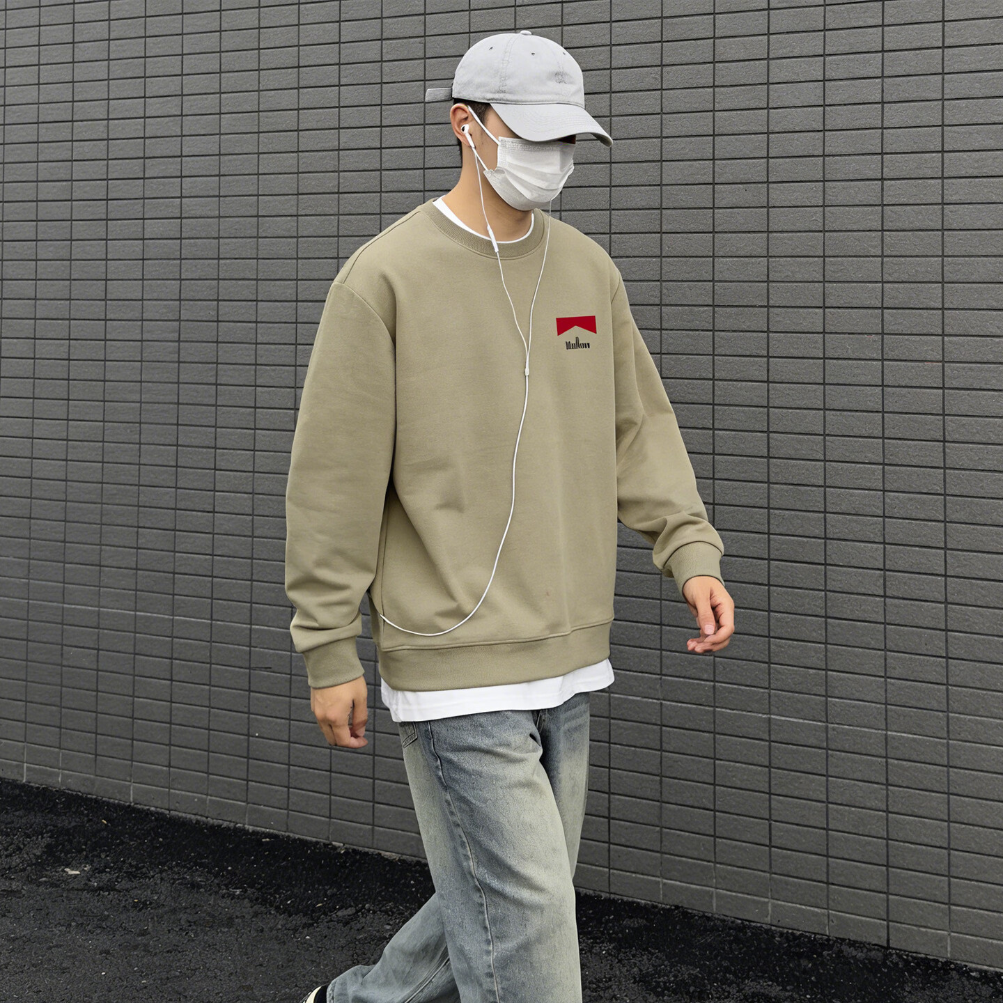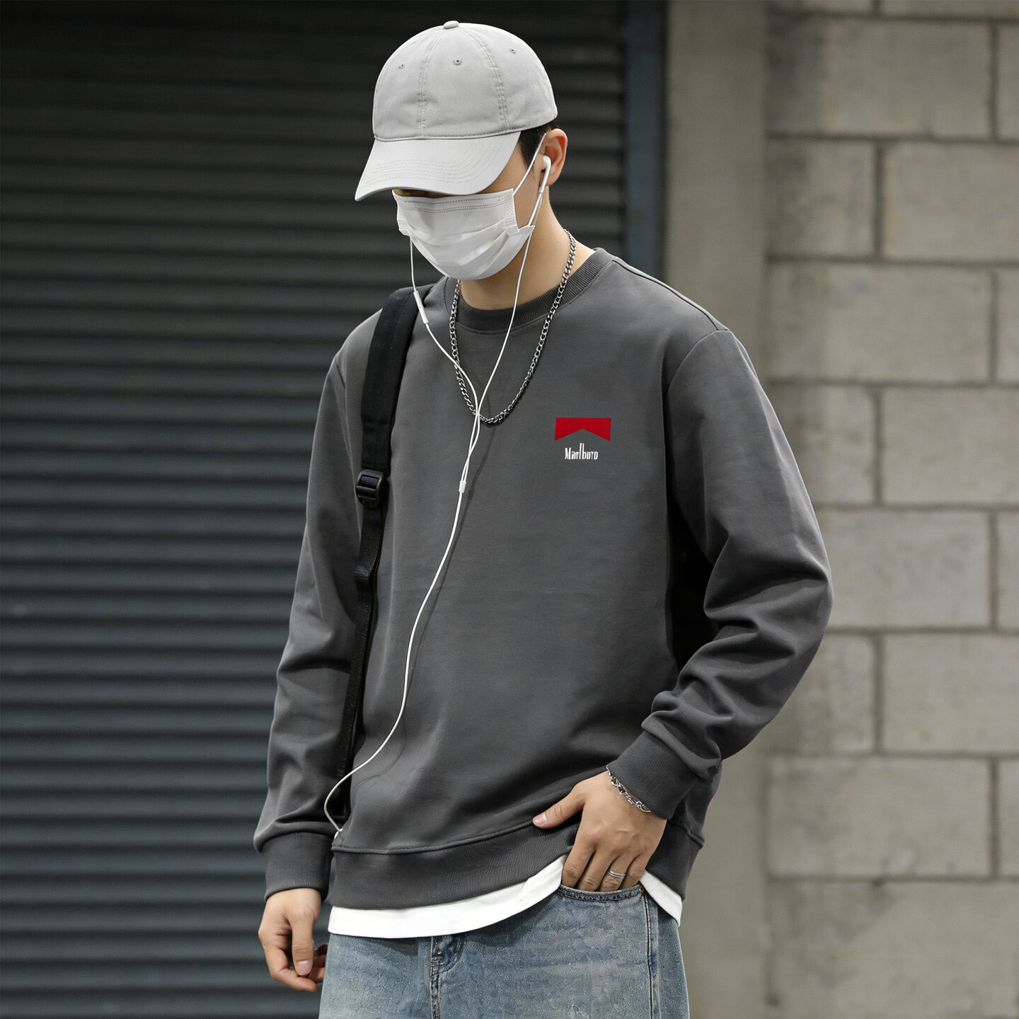 JEEP SPIRIT Sudadera de cuello redondo engrosada de terciopelo pesado americano para hombre, camisa informal holgada de primavera 2026, gris S