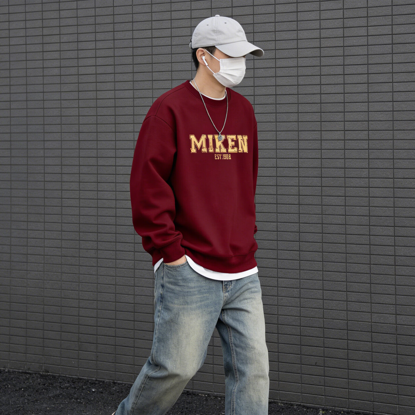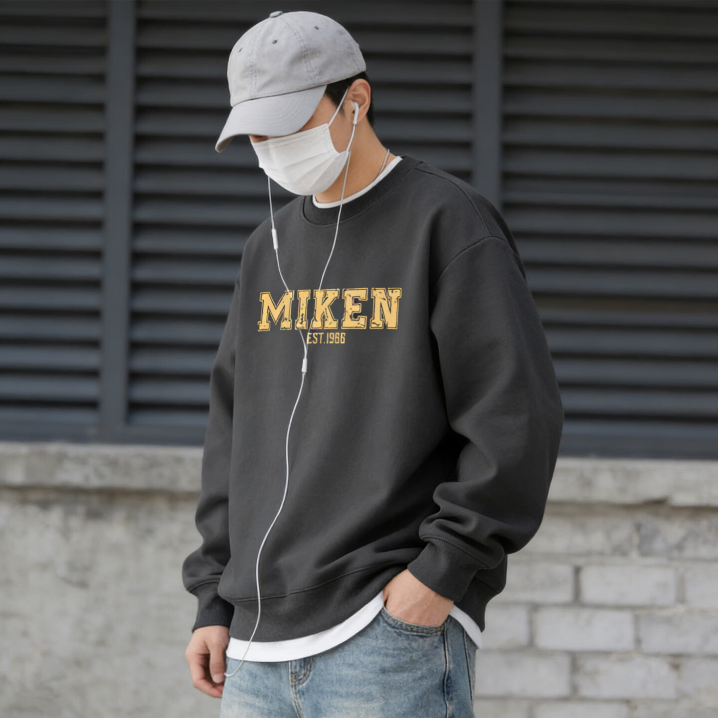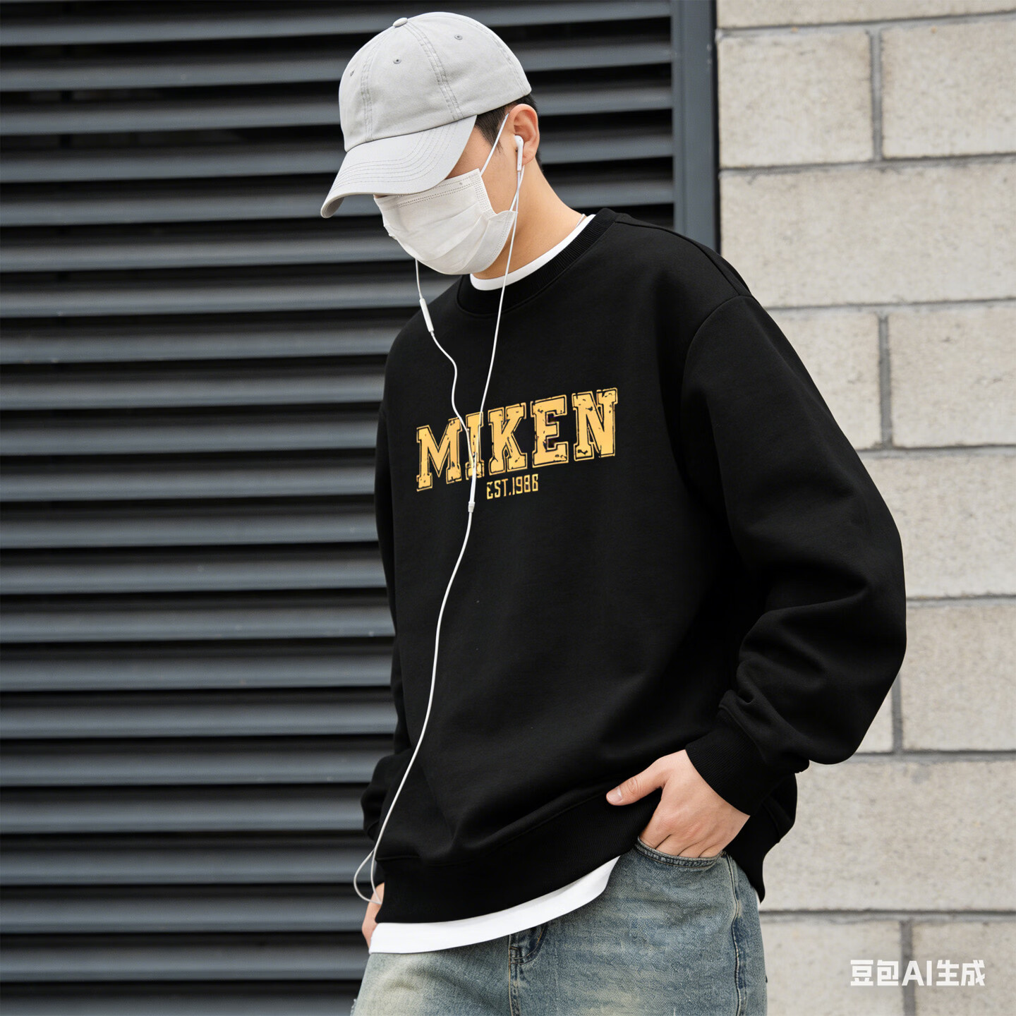 JEEP SPIRIT American heavyweight sweatshirt for men plus velvet loose trend versatile printed round neck pullover top jacket black S
