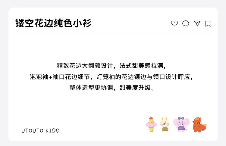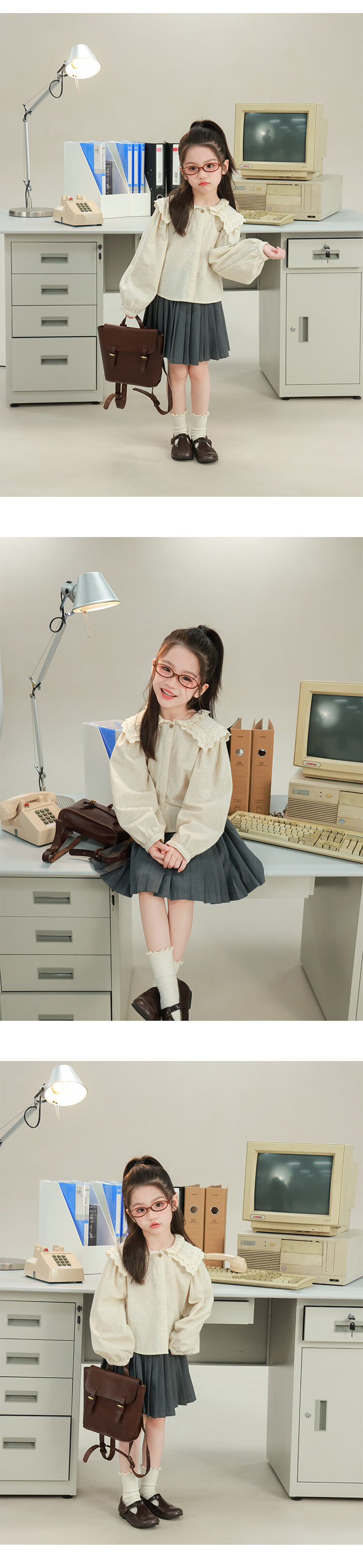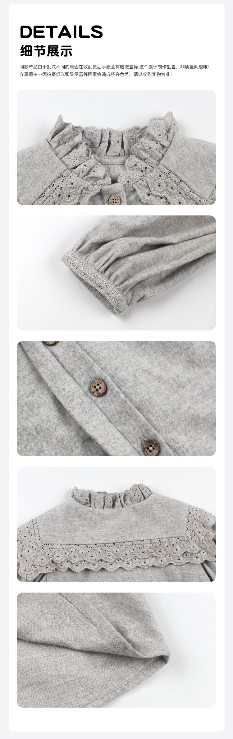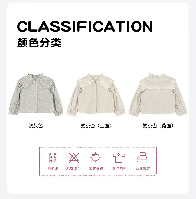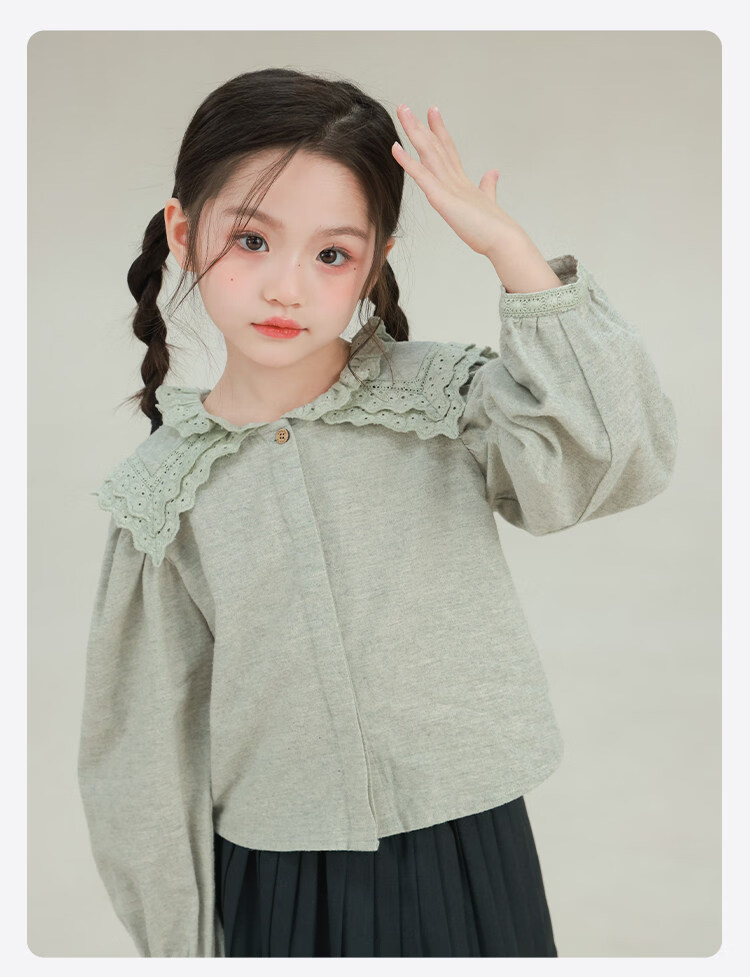 UTOUTO Big Ear Elephant Girls Hollow Lace Solid Color Shirt 2026 Spring New Baoer Pure Cotton Large Lapel Long Sleeve Top Milk Tea Apricot Spot 80