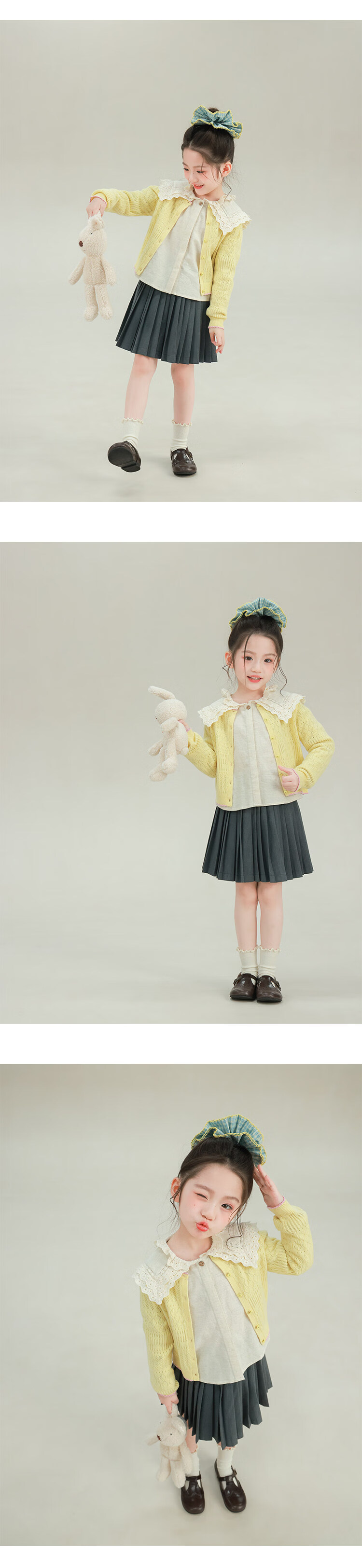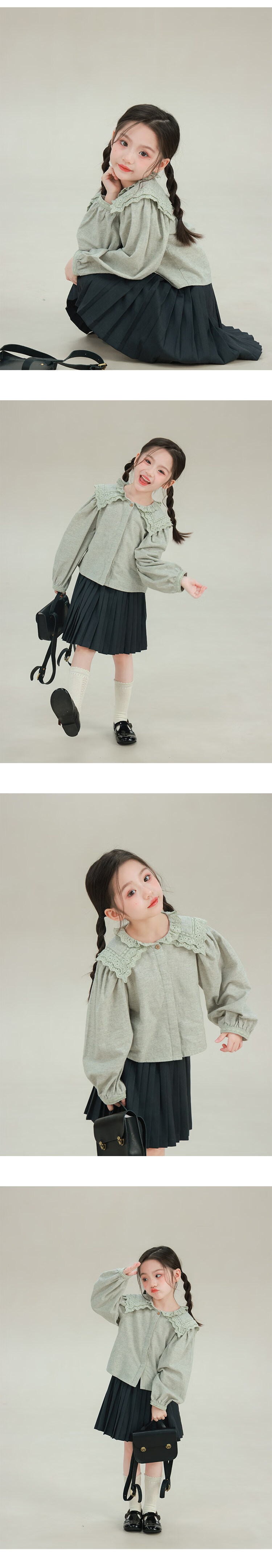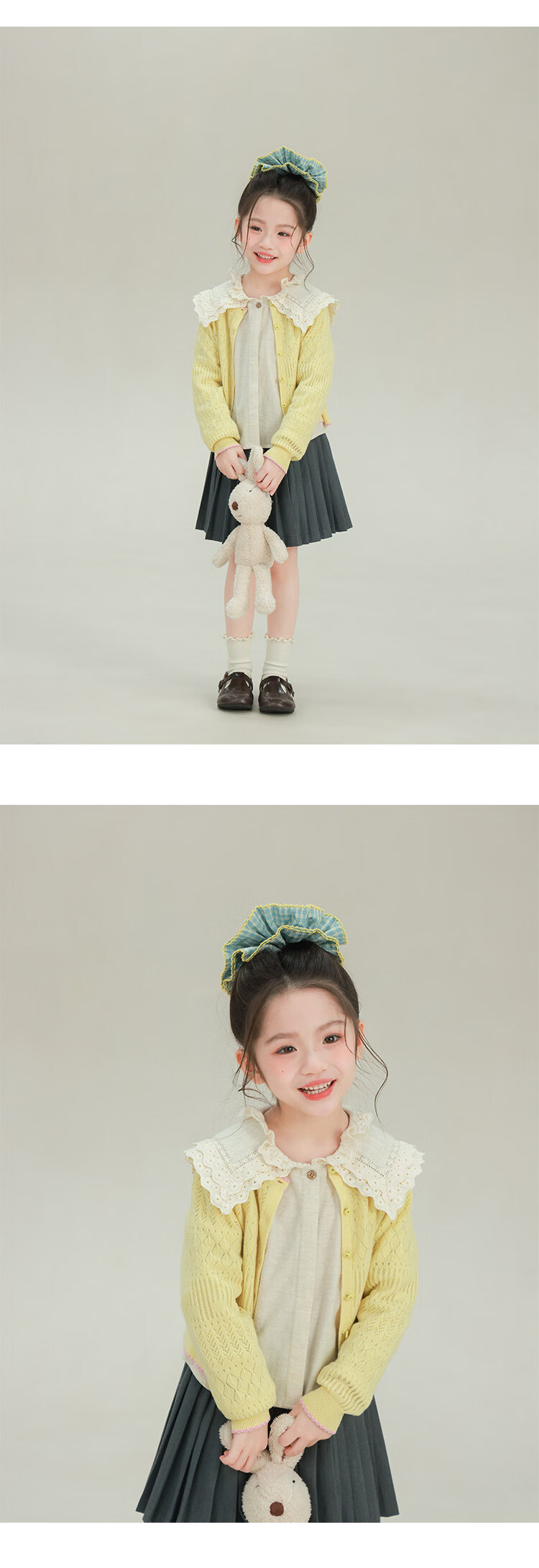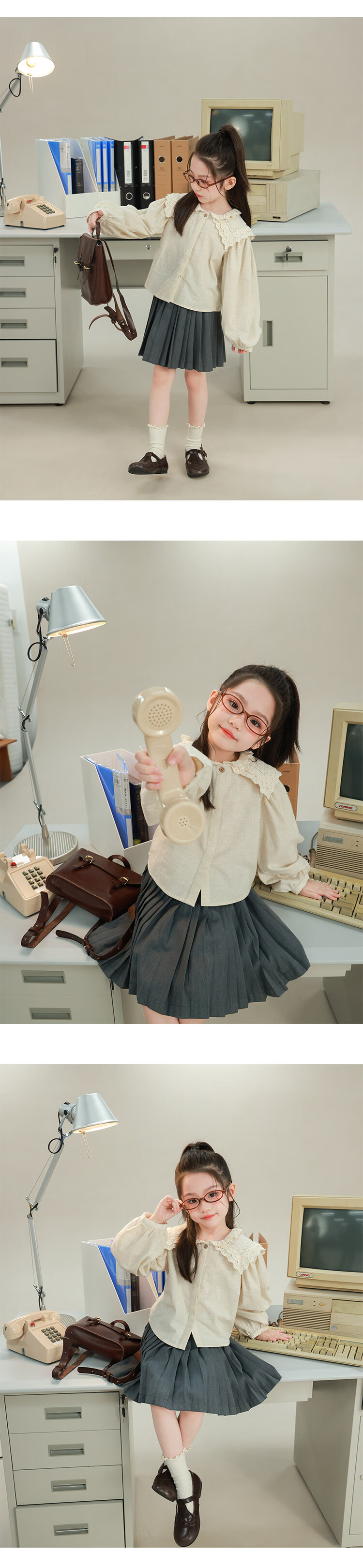 UTOUTO Big Ear Elephant Girls Hollow Lace Solid Color Shirt 2026 Spring New Baoer Pure Cotton Large Lapel Long Sleeve Top Milk Tea Apricot Spot 80