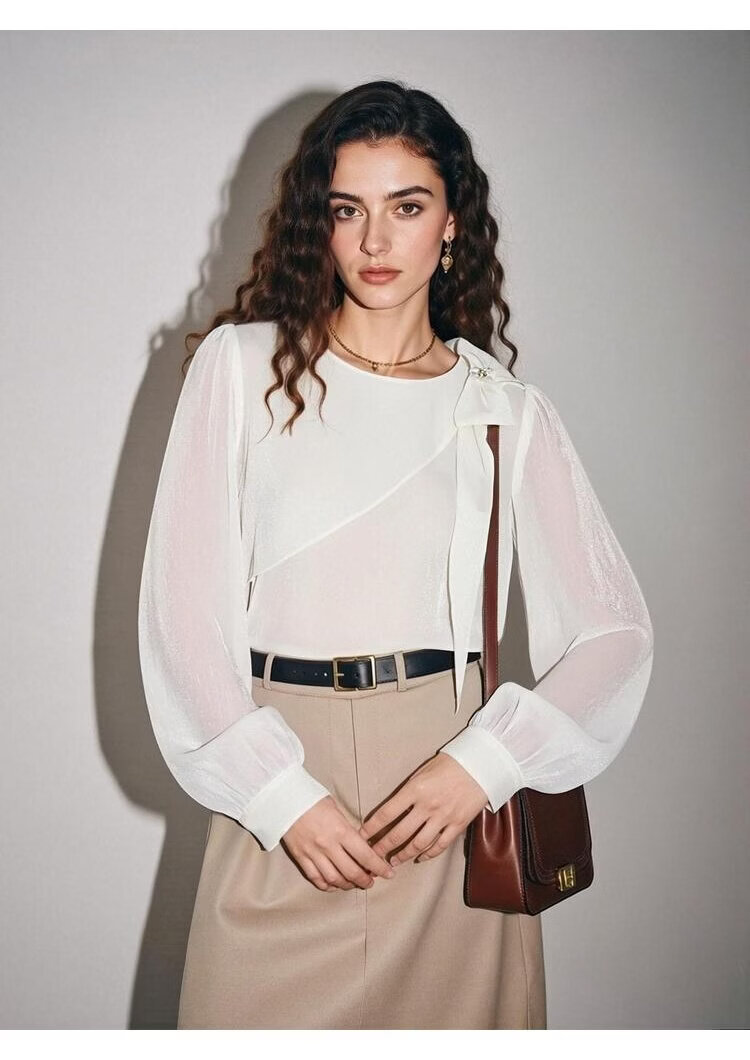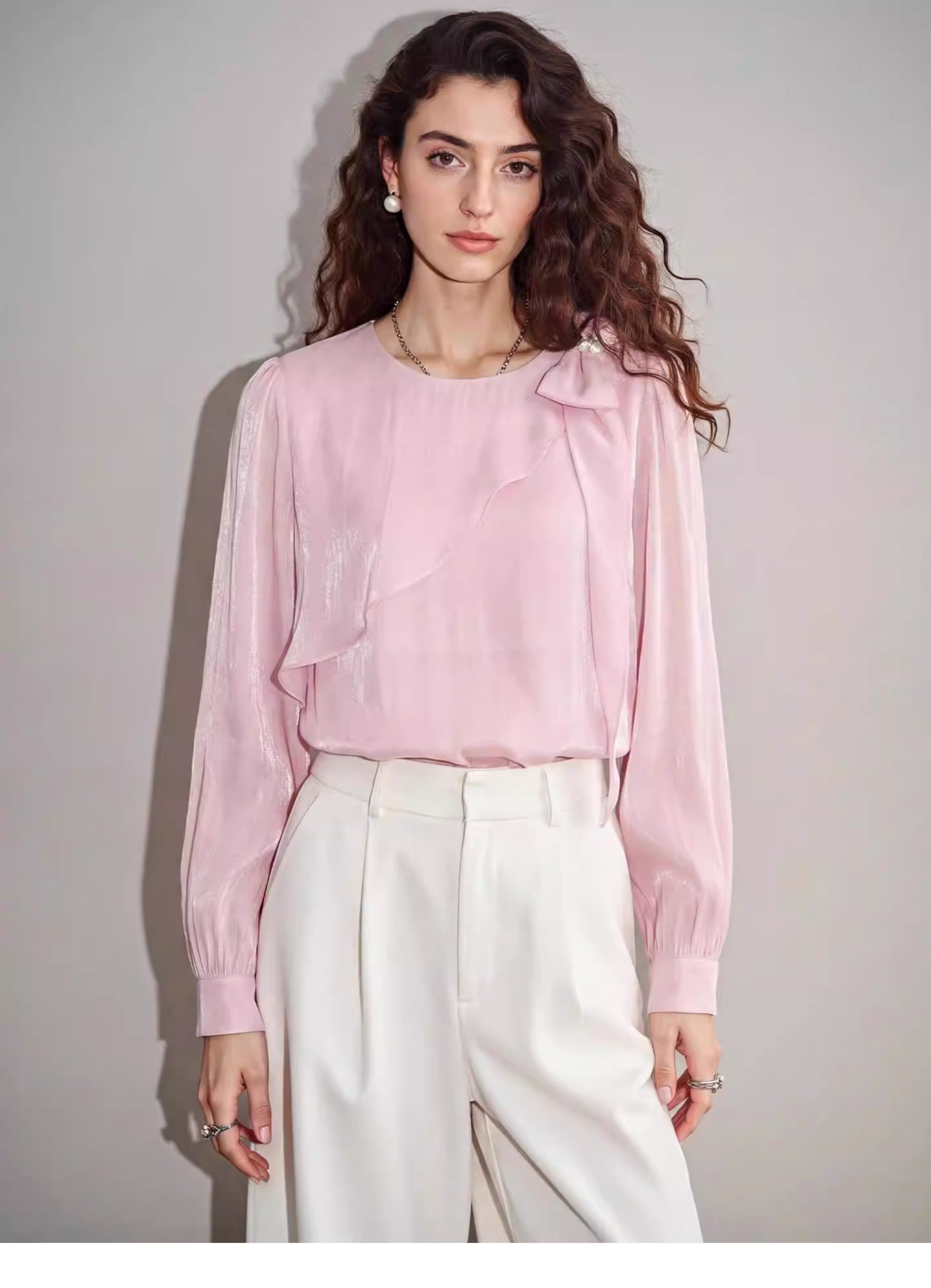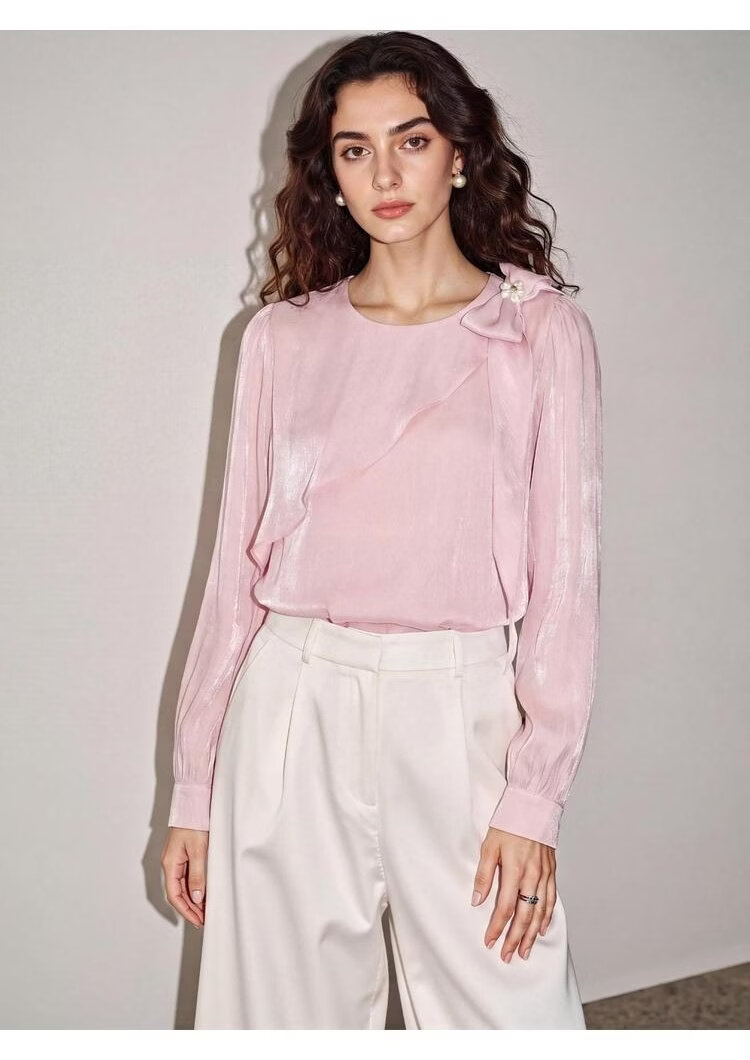 Basic House Basic House/Baijiahao pink bow chiffon shirt for women 2026 spring new design shirt m M