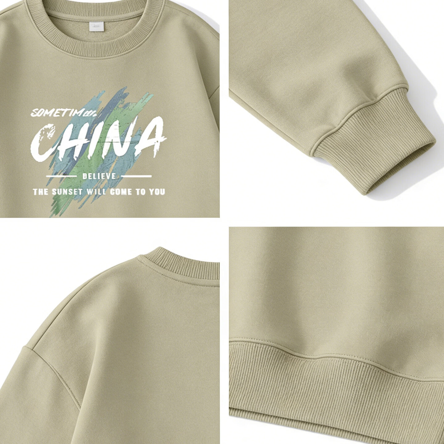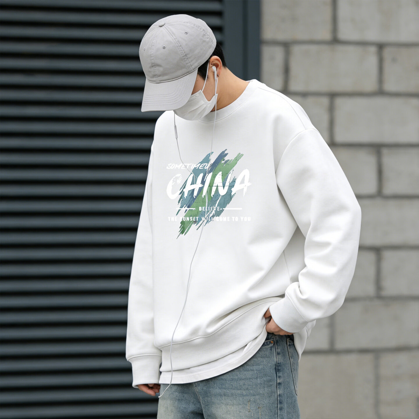 JEEP SPIRIT American Heavyweight Round Neck Sweatshirt Men's 2026 Spring Loose Velvet Thickened Bottoming Shirt Men's Green 2XL Recommended 175-195 Jin Jin equals 0.5 kg