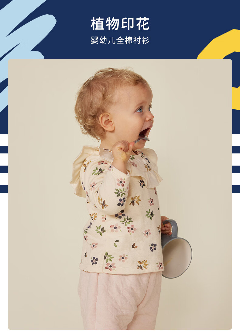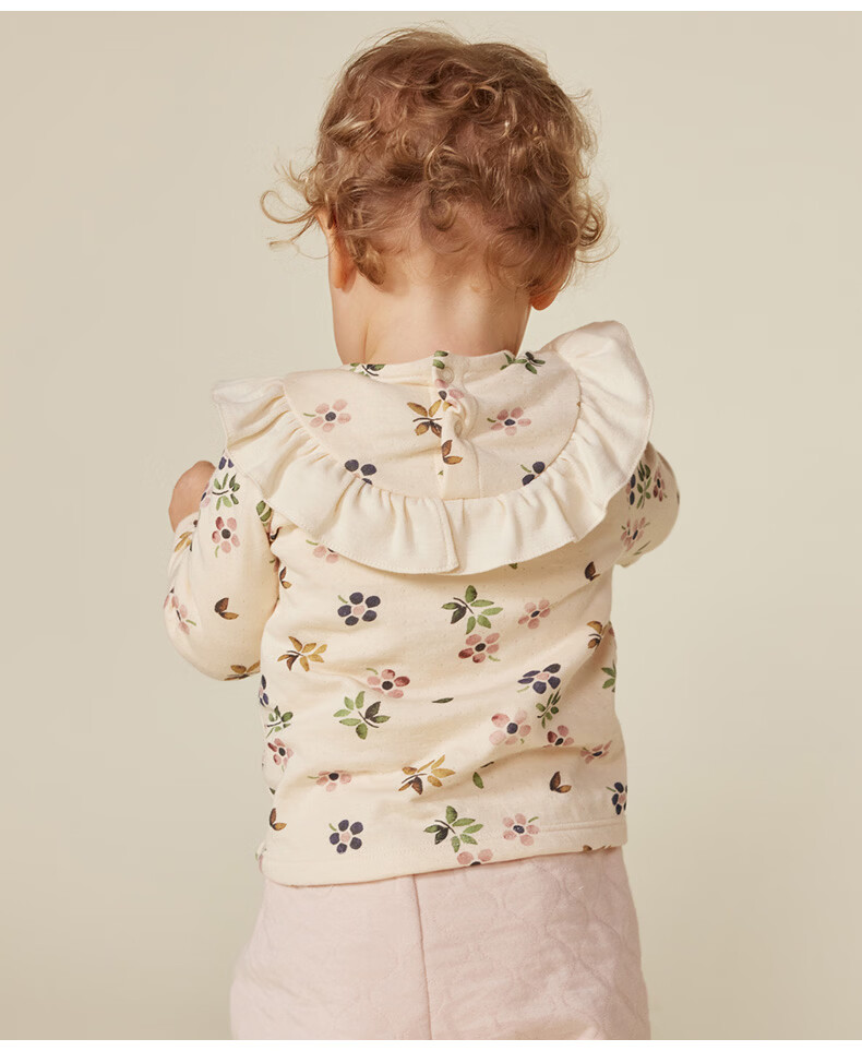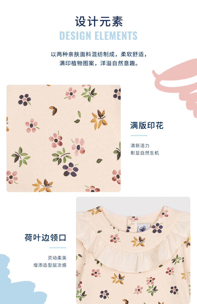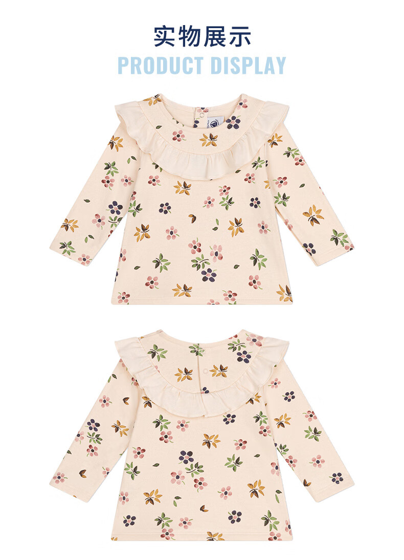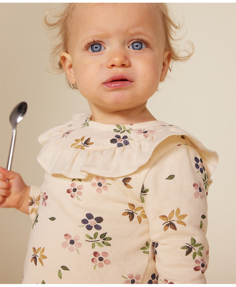 PETIT BATEAU small sailing boat autumn infant lace floral cotton top A0B3C beige 73 cm