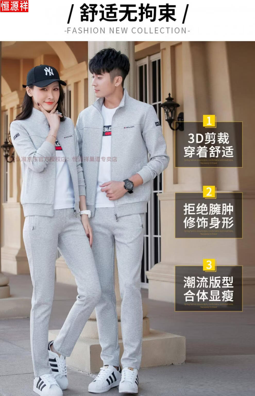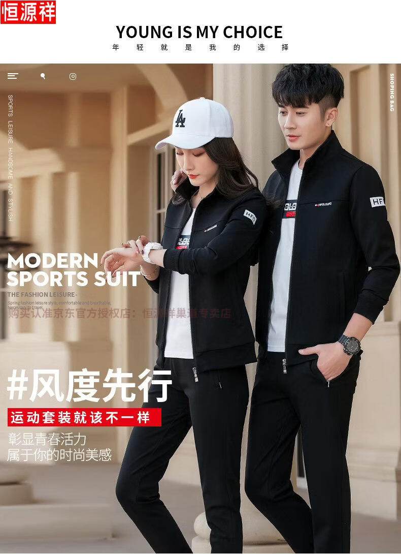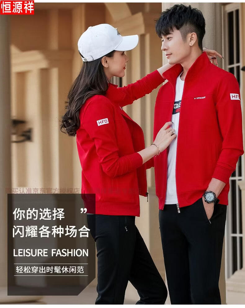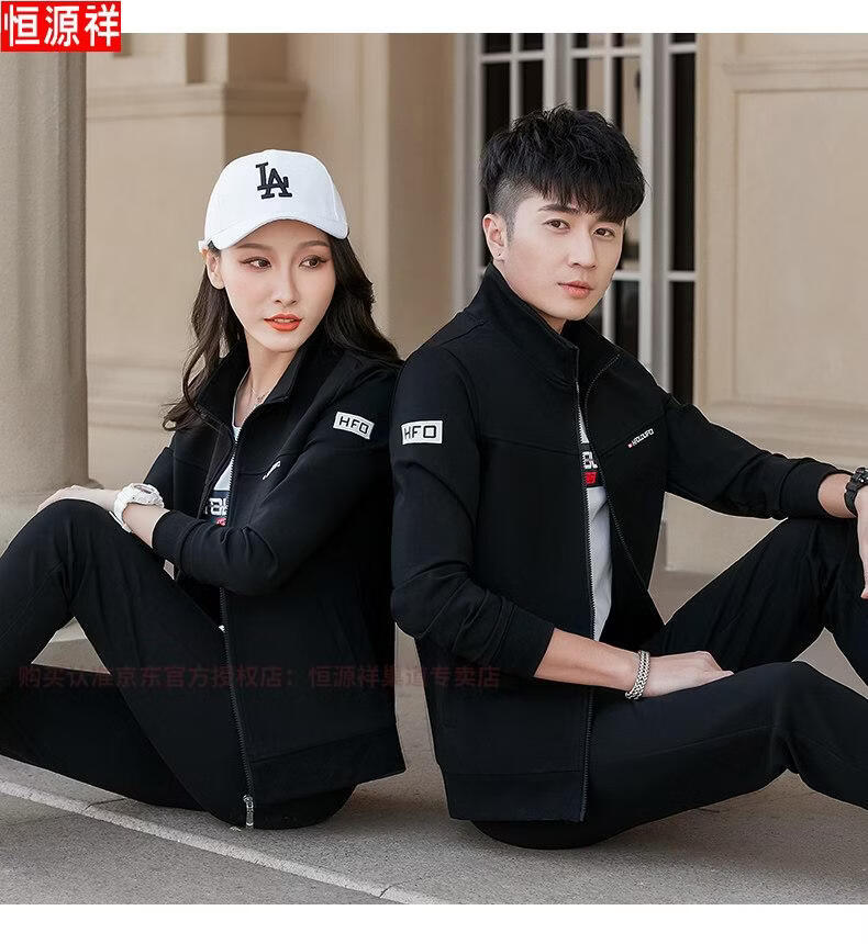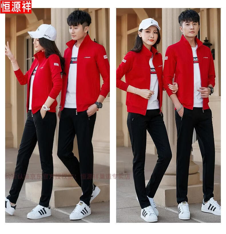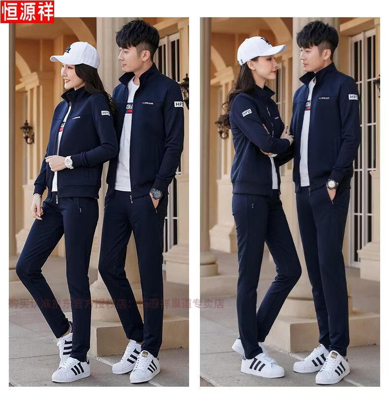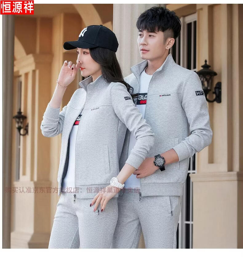 Hengyuanxiang Spring and Autumn Couple Sportswear Set Spring Unisex Youth Large Size Casual Sweater Pure Cotton Running Three-piece Set 9851 Gray Jacket + Trousers Spring and Autumn Two-piece Set M Female 80-96Jin Jin is equal to 0.5 kg +