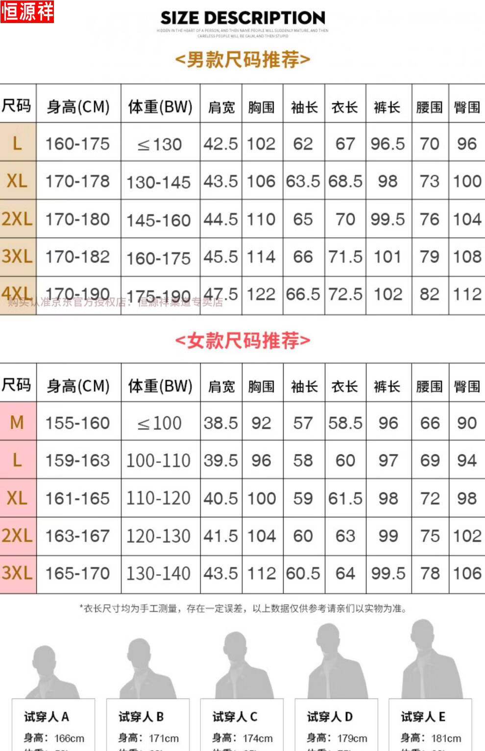 China (cm) 160-165/84-86 165-170 / 88-90 167-172 / 92-96 168-173 / 98-102 170-176 / 106-110
