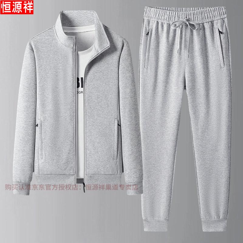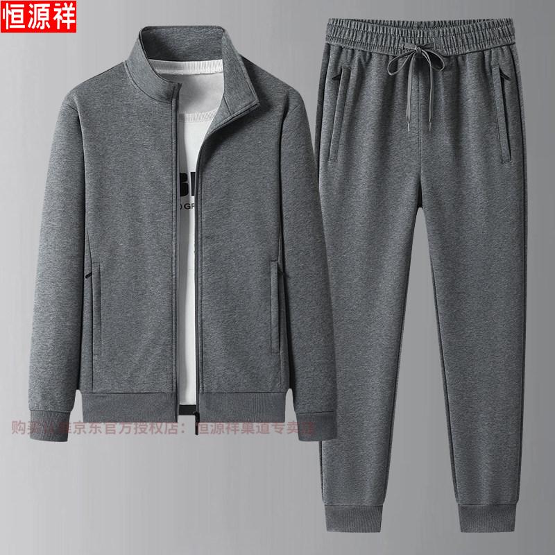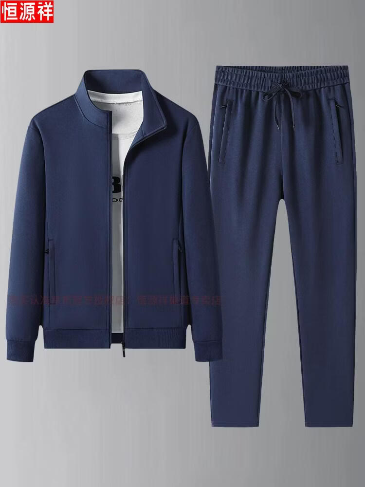 Hengyuanxiang Traje deportivo de algodón puro Cárdigan informal para hombre Suéter Pantalones Correr Fitness Conjunto de dos piezas Compra en grupo Logotipo Personalización Azul oscuro (pie recto) L