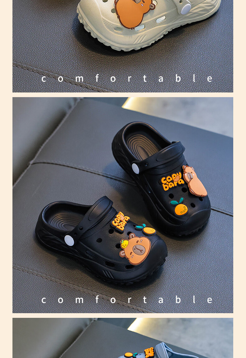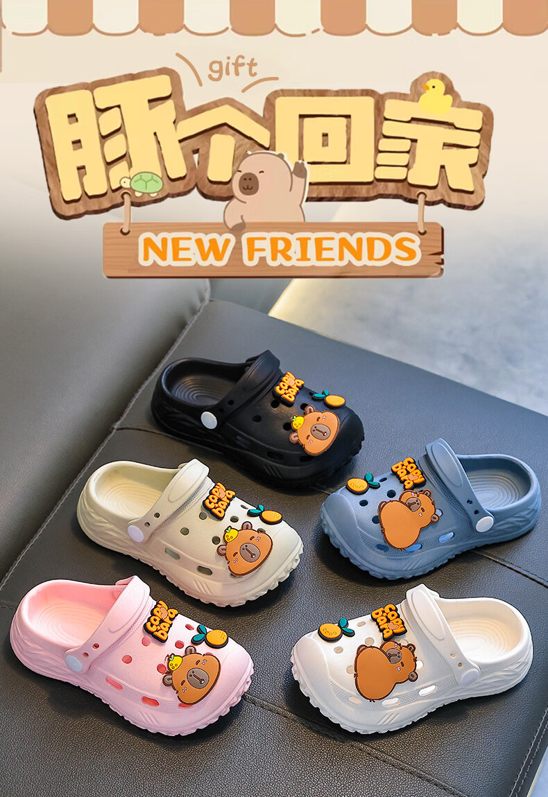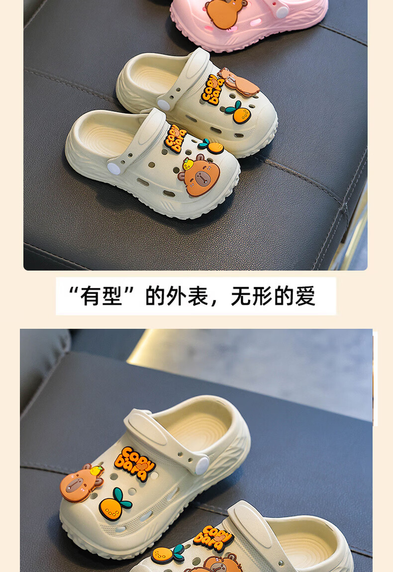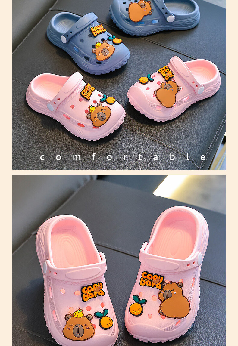 本本猪卡皮巴拉儿童洞洞鞋女童夏季卡通可爱防滑室内洗澡软底拖鞋宝拖鞋 天蓝色(升级版环保材质) 12 30/31码(鞋内长19CM适合脚长18CM)