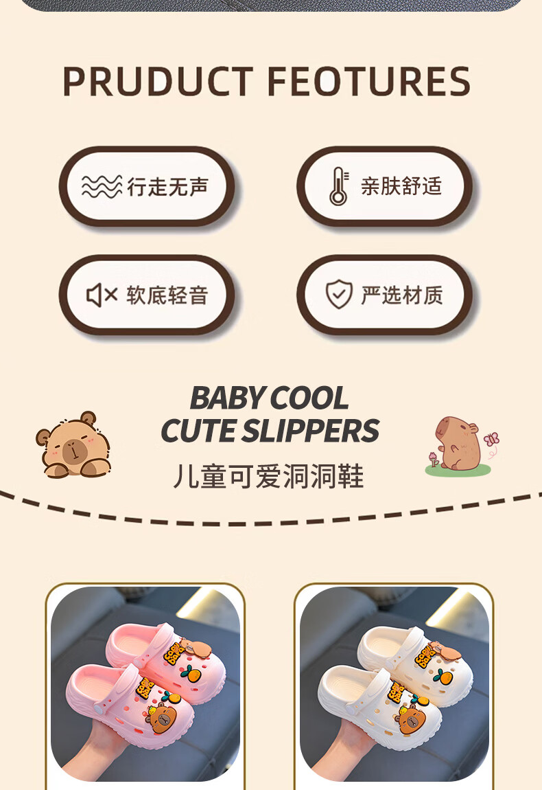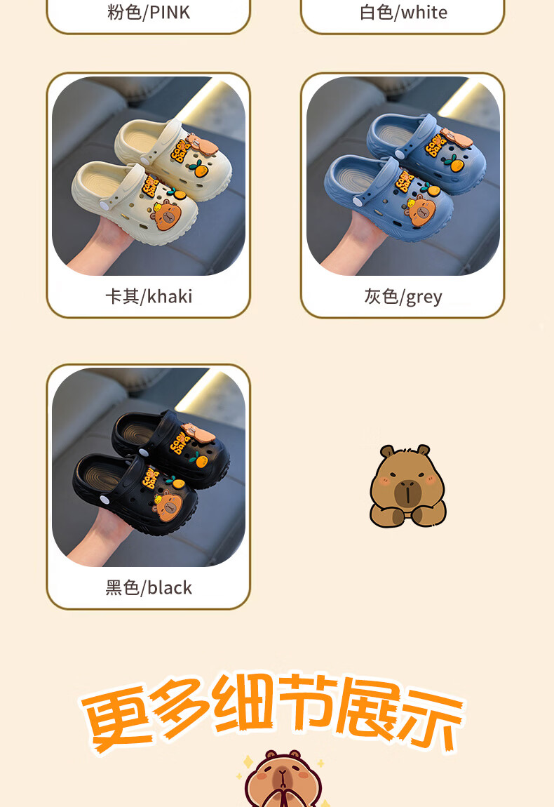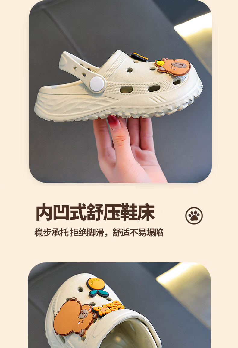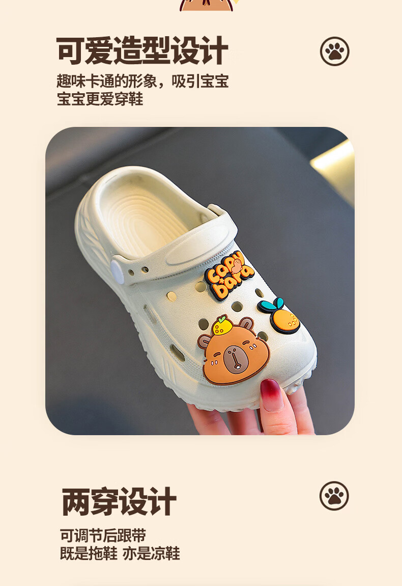 本本猪卡皮巴拉儿童洞洞鞋女童夏季卡通可爱防滑室内洗澡软底拖鞋宝拖鞋 天蓝色(升级版环保材质) 12 30/31码(鞋内长19CM适合脚长18CM)