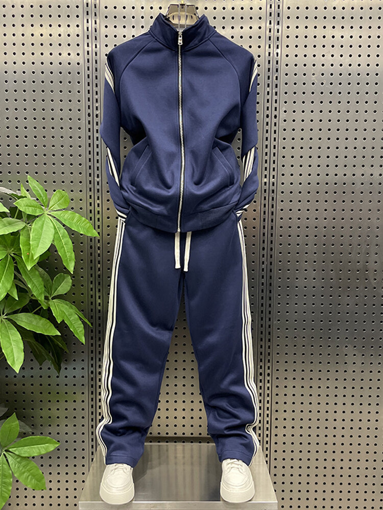 ROMON spring new casual suit men's straight floor-length mopping pants running sports two-piece loose sweatshirt and sweatpants complete set blue top single piece 4XL 170-185Jin Jin equals 0.5 kg