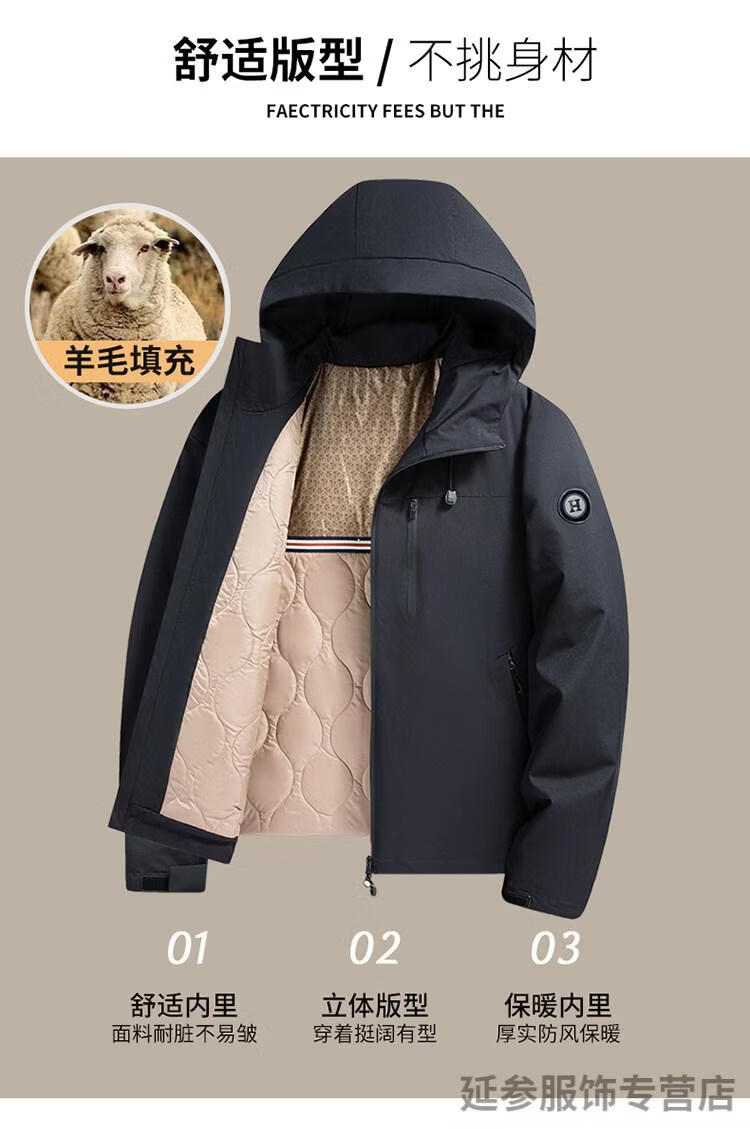 K-Boxing Men's Wear (K-Boxing) Middle-aged Outdoor Jacket Men's Jacket Winter Lightweight Wool Down Jacket Thickened Cotton Jacket Loose Cotton Jacket Men 802202 Light Gray L