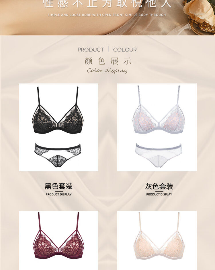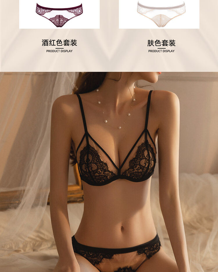 Victoria's style wire-free underwear set red sexy lace big breasts slimming push-up French thin underwear for women black bra + panties M -32C and 34/75AB cup