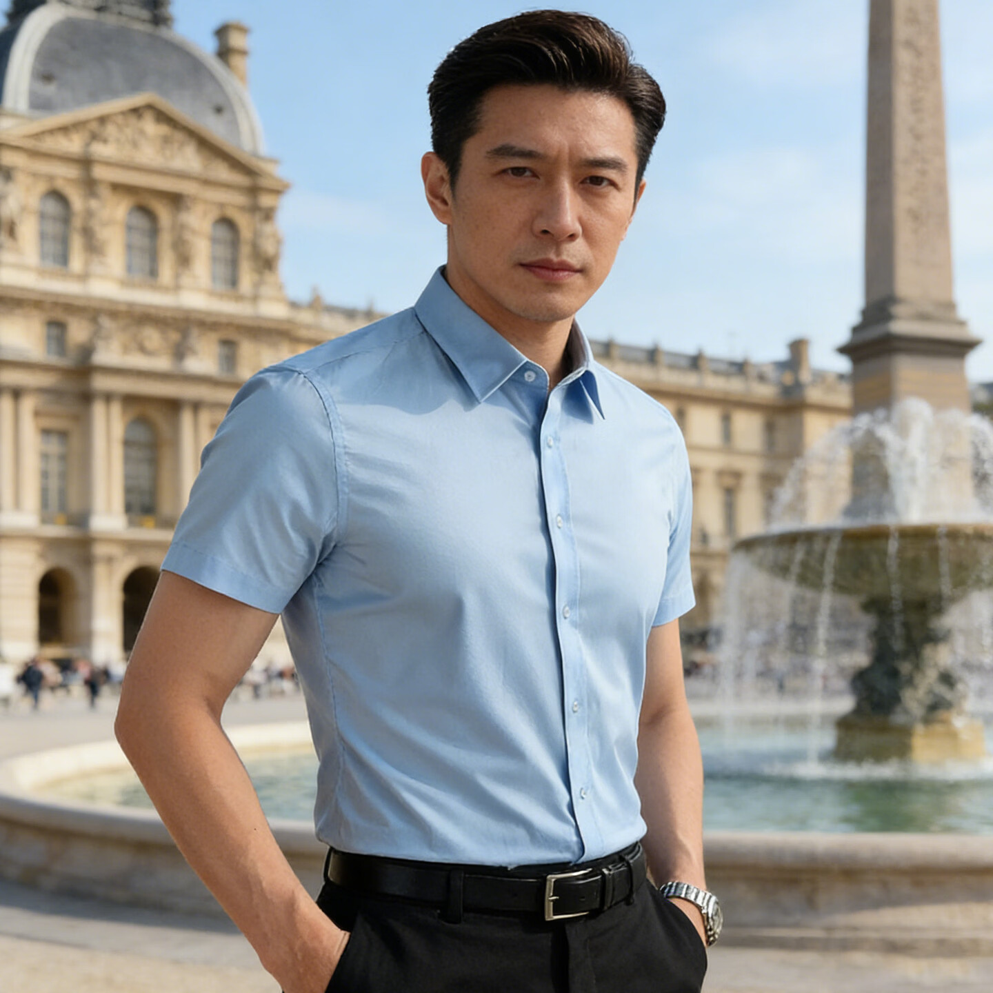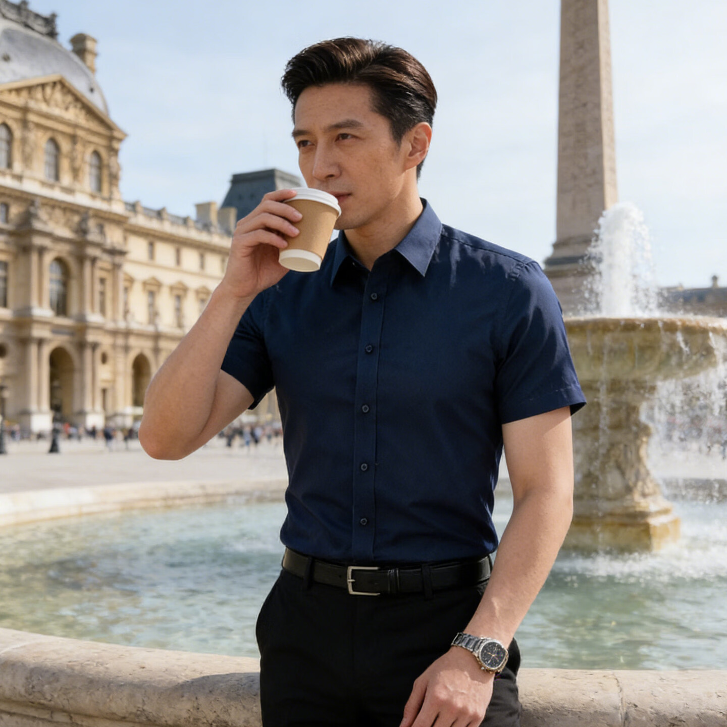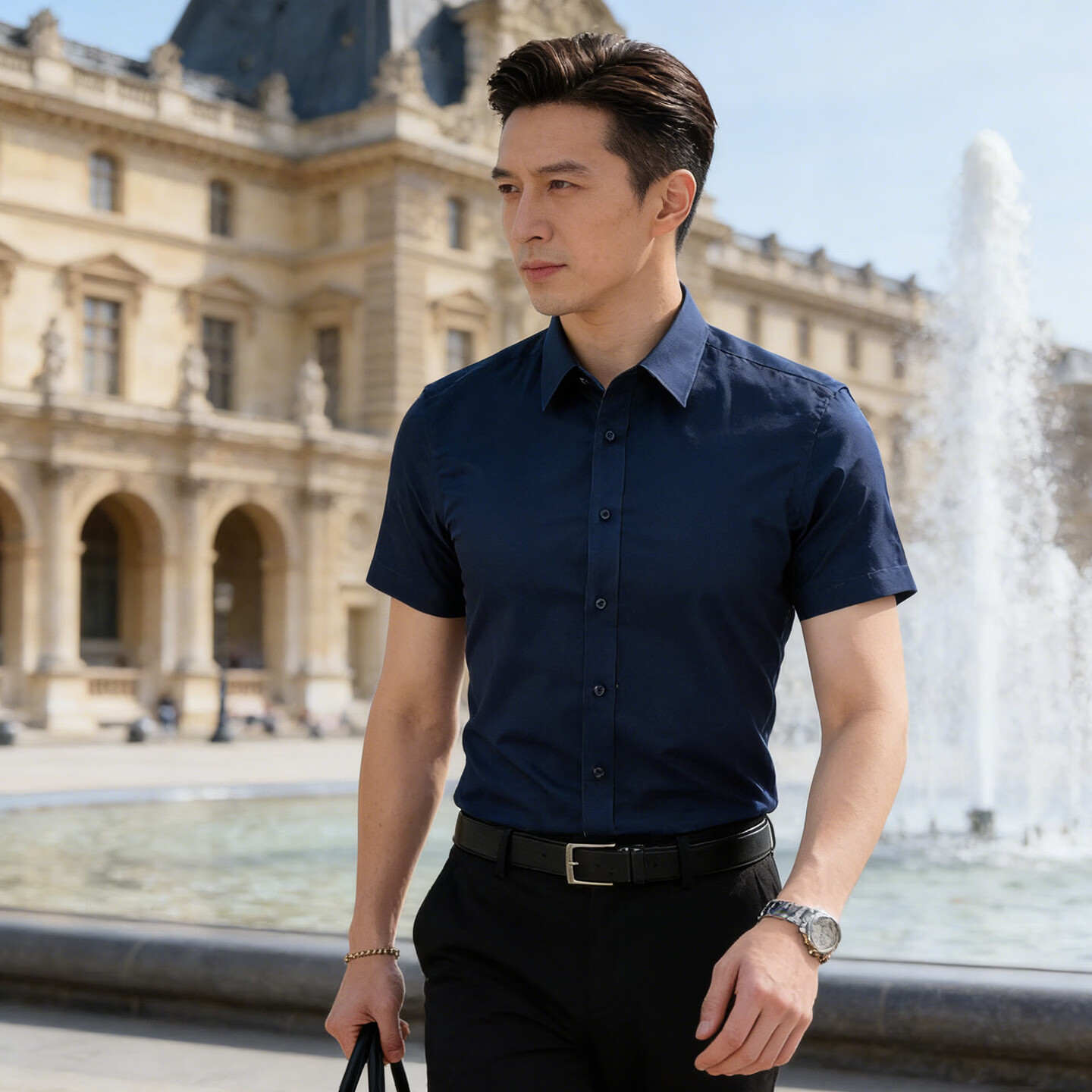 Playboy (PLAYBOY) light luxury high-end light blue iron-free short-sleeved shirt men's summer business casual shirt men's dark blue XL