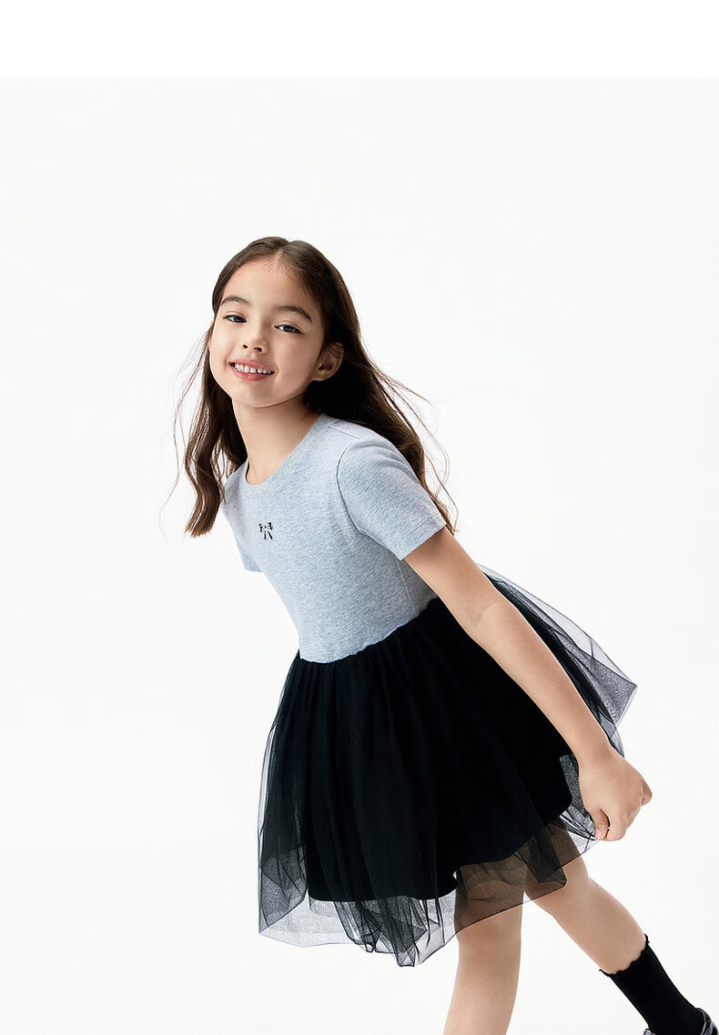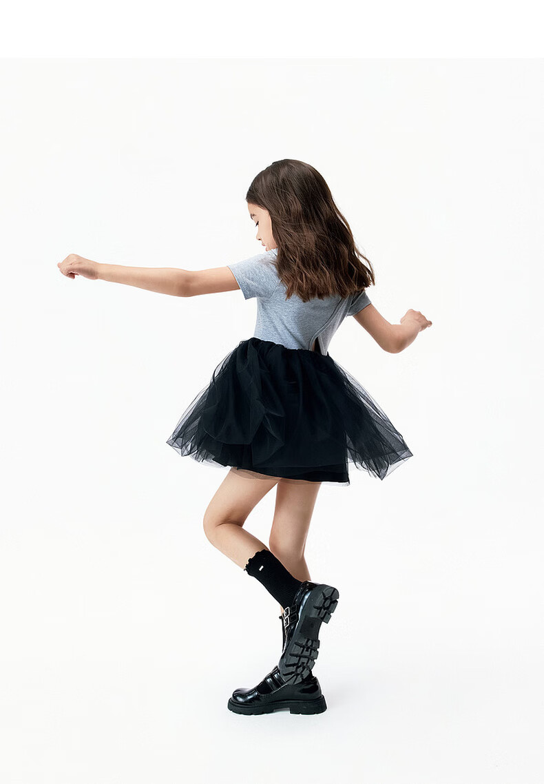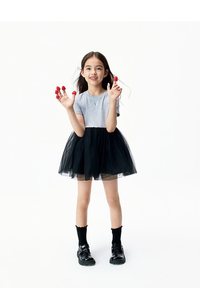 Little MO&Co.little moco children's clothing 26 summer new style girls ballet style princess skirt dress mesh skirt skirt medium flower gray 120 120/60