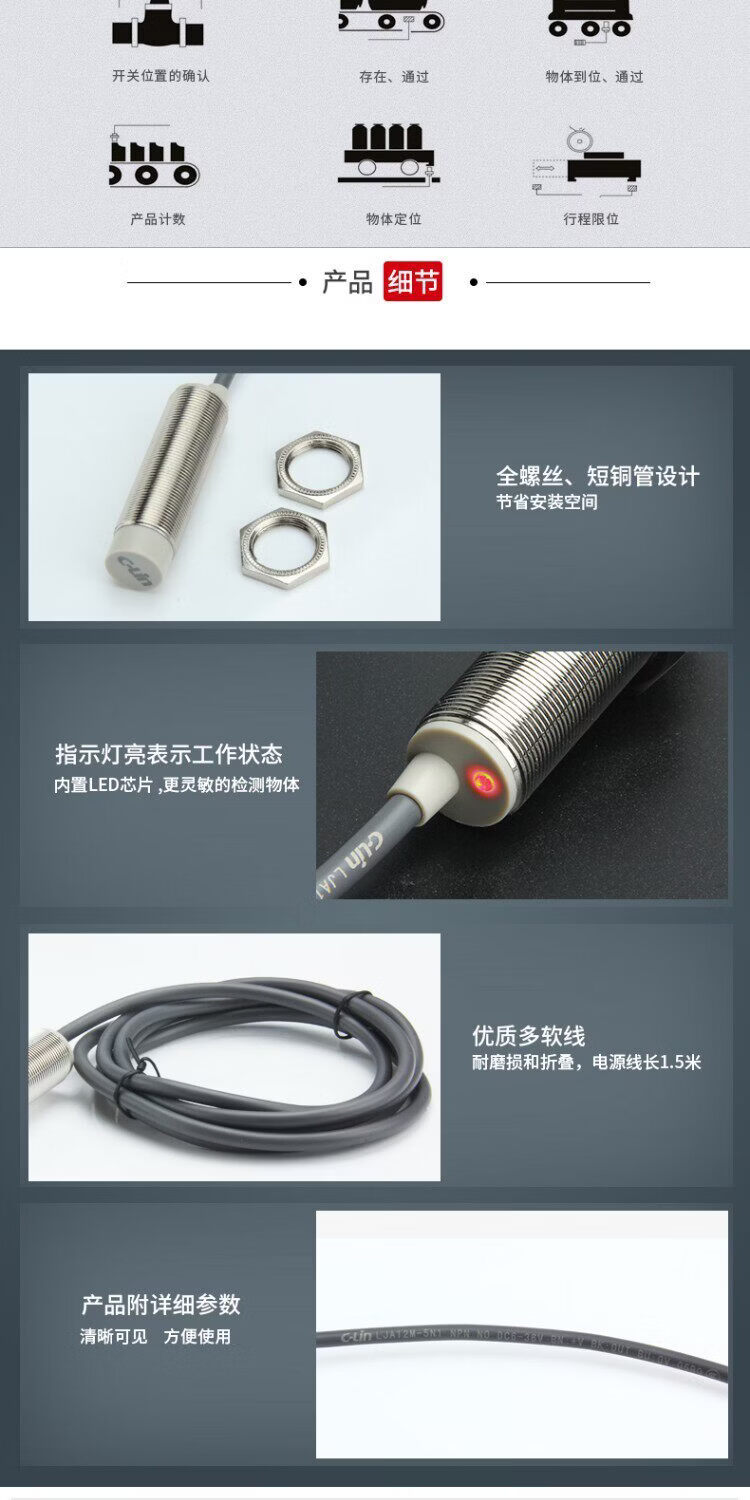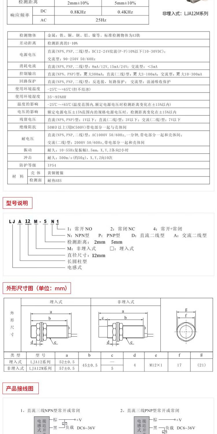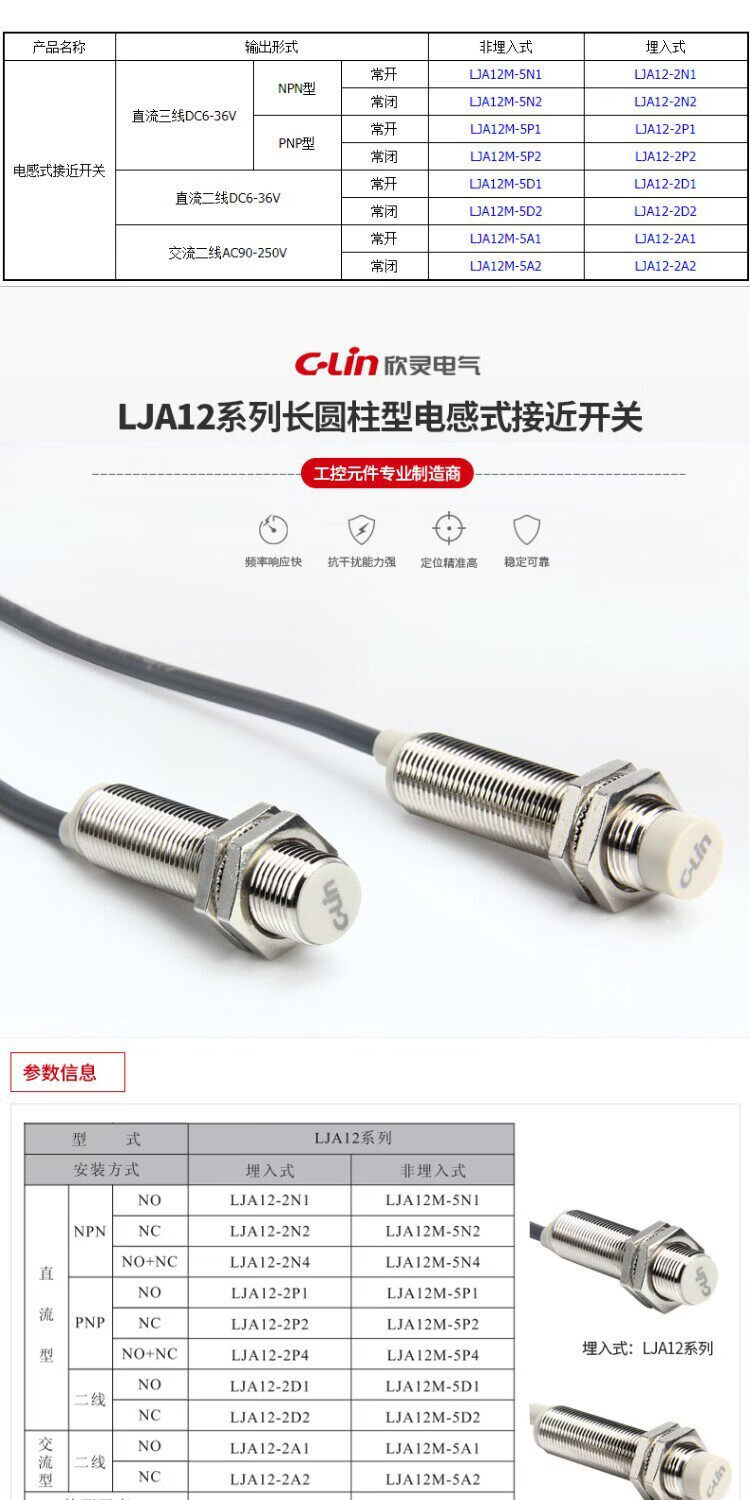 Xinling brand inductive proximity switch LJA12M-5N1/N2/N4/P1/P2/A1/A2/5D1/D2/A1-Z LJA12M-5N1_3 meters long_DC three wire_NPN_normally open