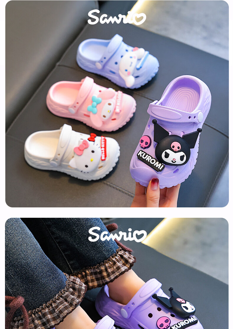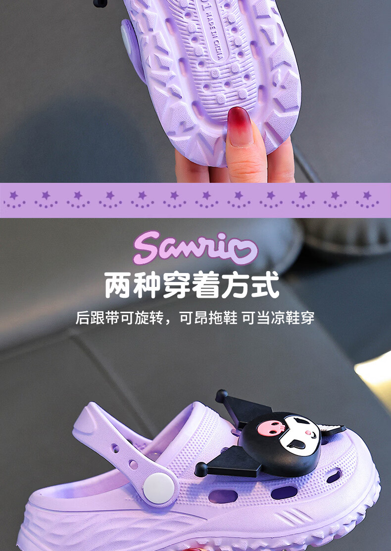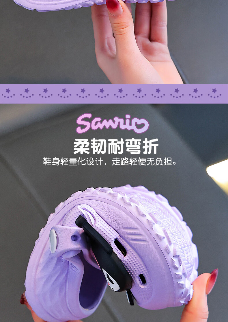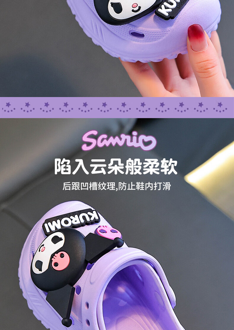 Benbenzhu Children's Sandals Girls Summer Cartoon Cute Non-Slip Indoor Bath Soft Soled Slippers Parent-child Baby Croc Shoes Purple Kuromi (Upgraded Eco-Friendly Material) Size 12 32/33 (Shoe Inner Length 20CM Suitable for Foot Length 19CM)
