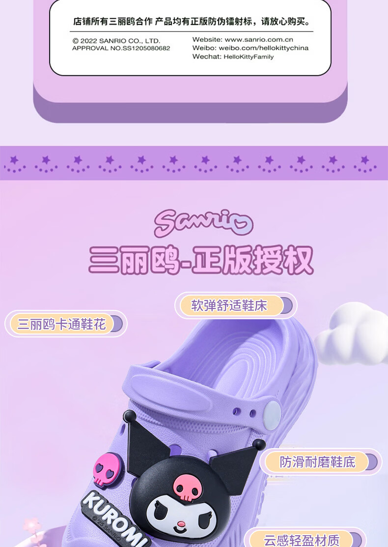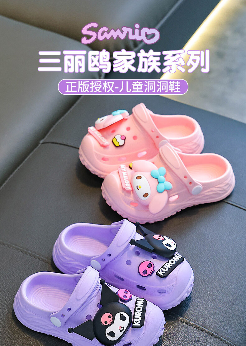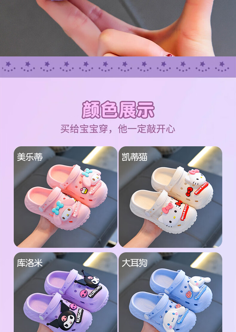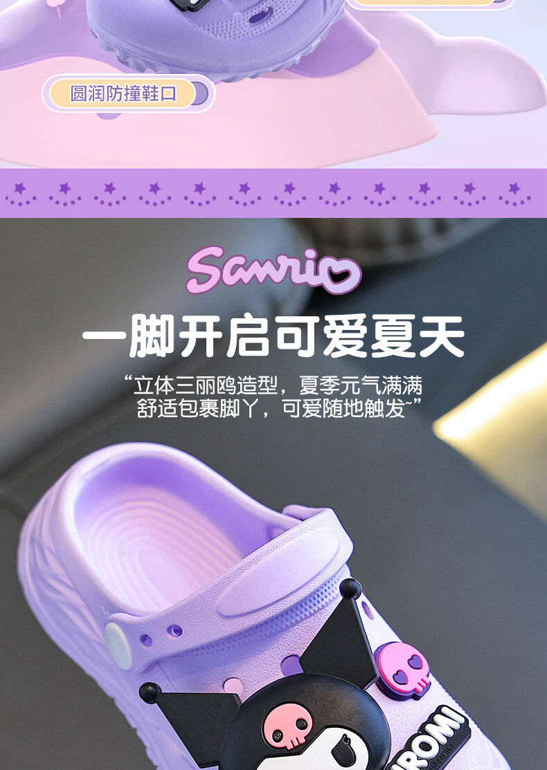 Benbenzhu Children's Sandals Girls Summer Cartoon Cute Non-Slip Indoor Bath Soft Soled Slippers Parent-child Baby Croc Shoes Purple Kuromi (Upgraded Eco-Friendly Material) Size 12 32/33 (Shoe Inner Length 20CM Suitable for Foot Length 19CM)