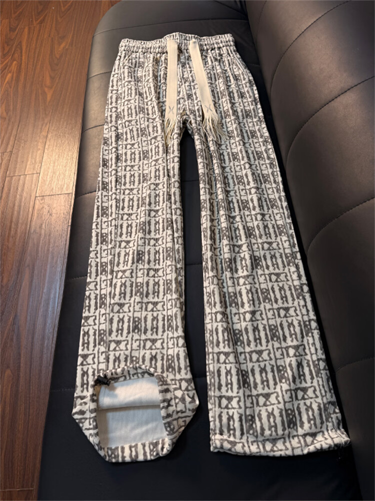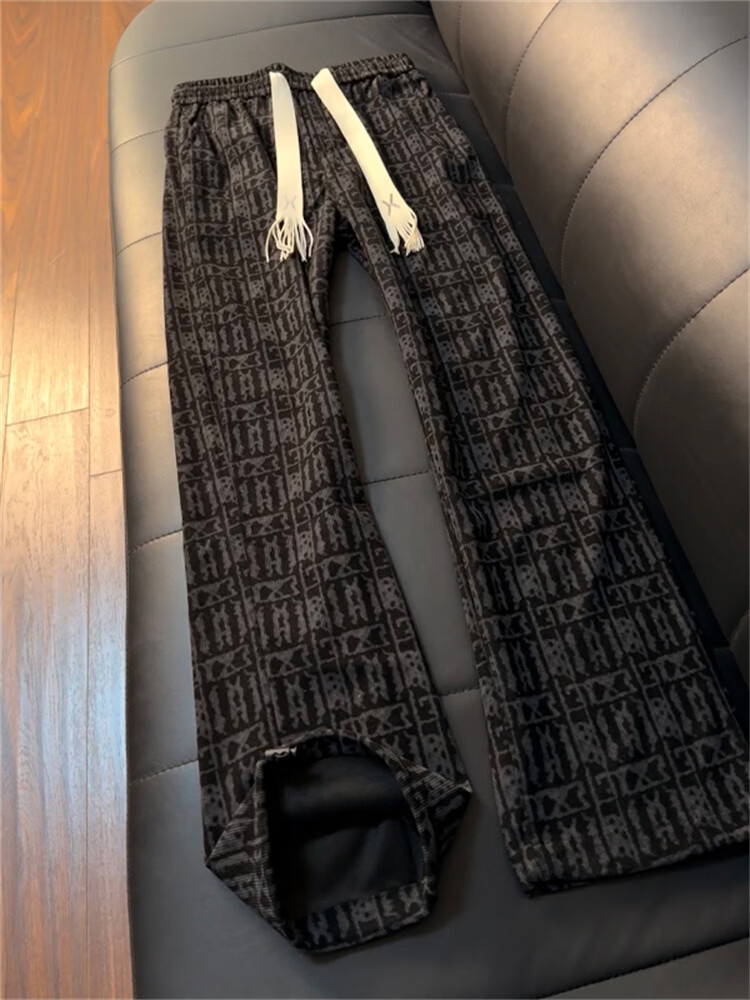 Katuchi American tie-dyed plaid casual pants for men in spring and autumn loose vertical straight wide legs high street lazy sports pants black XL