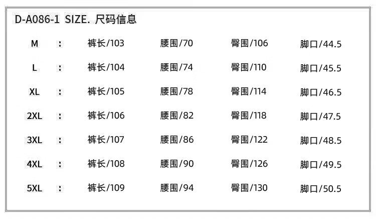 Outseam (cm) 99 cm 101.5 cm 104 cm 106.5 cm 109 cm
