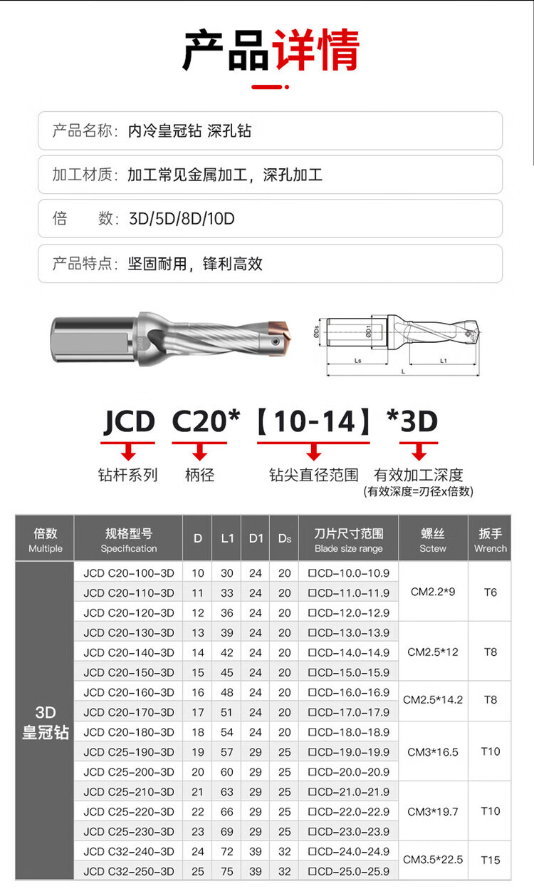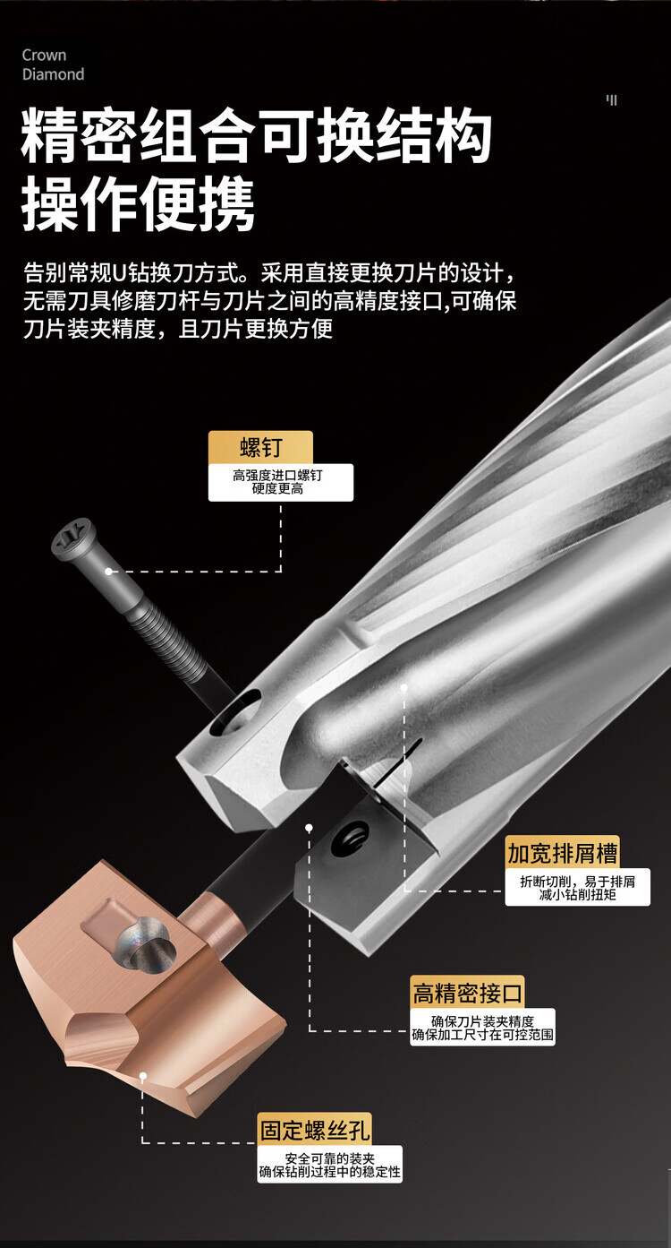 Crown drill bit u drill violent drill bit plus long gun drill bit 3 times 5 times 8 times 10 times shovel drill crown drill tool bar blade diameter 16.1mm