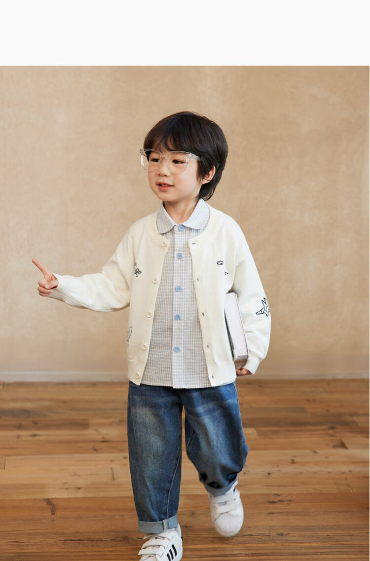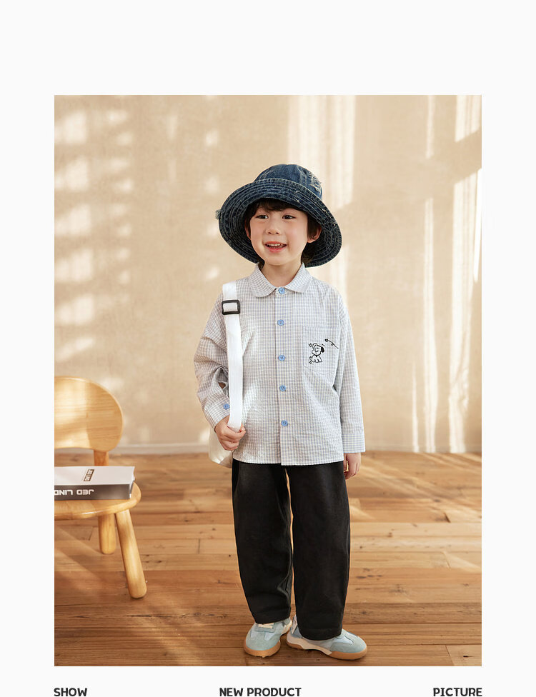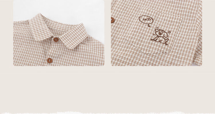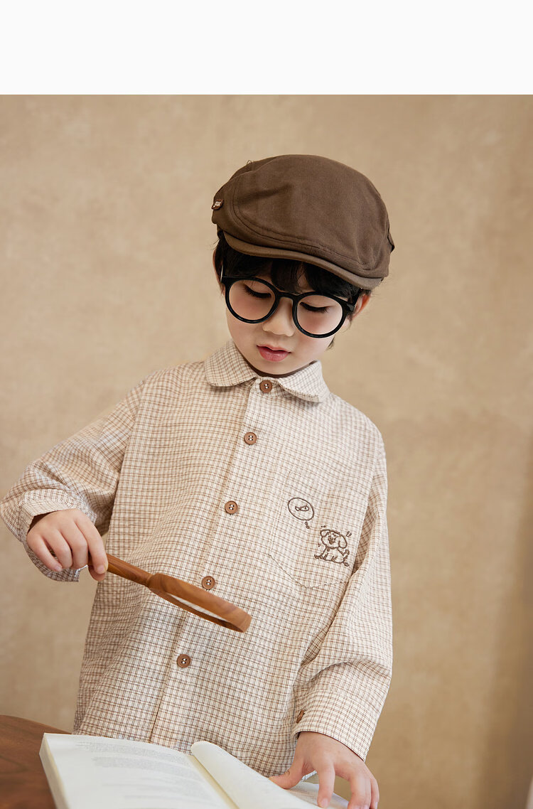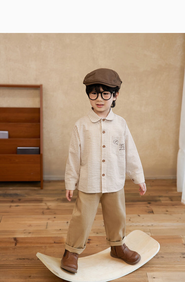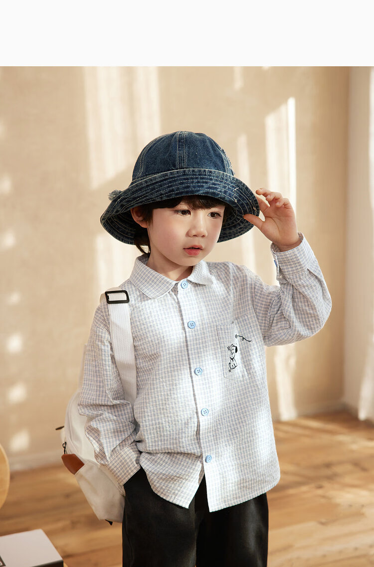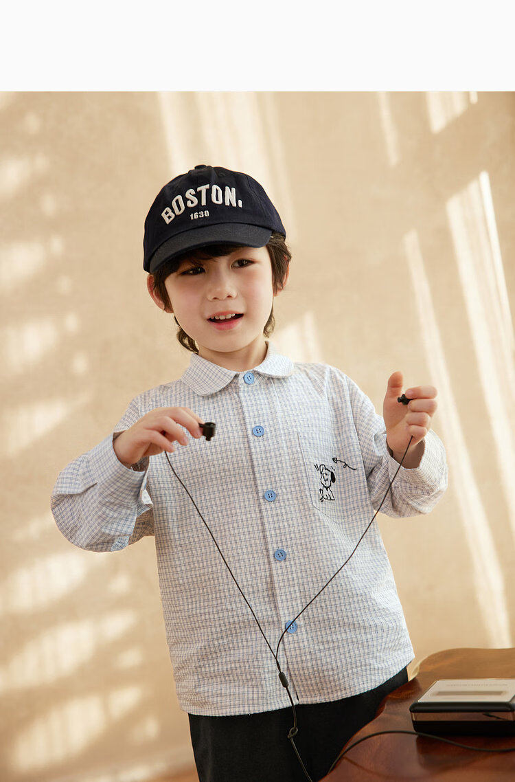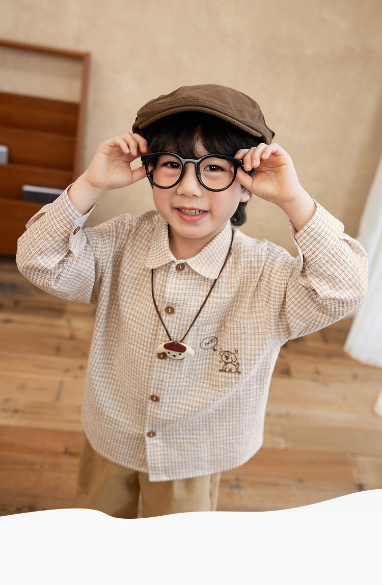 LUSON Boys Classic Plaid Embroidered Shirt 2026 Spring New Cute Retro College Style Top Blue 90
