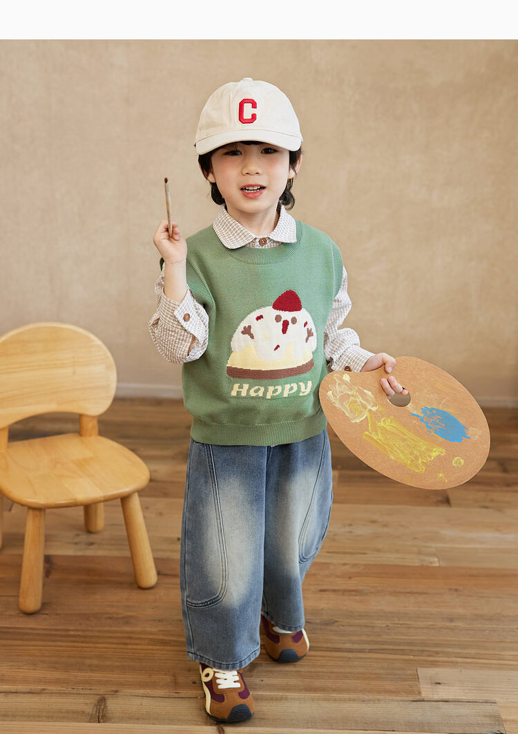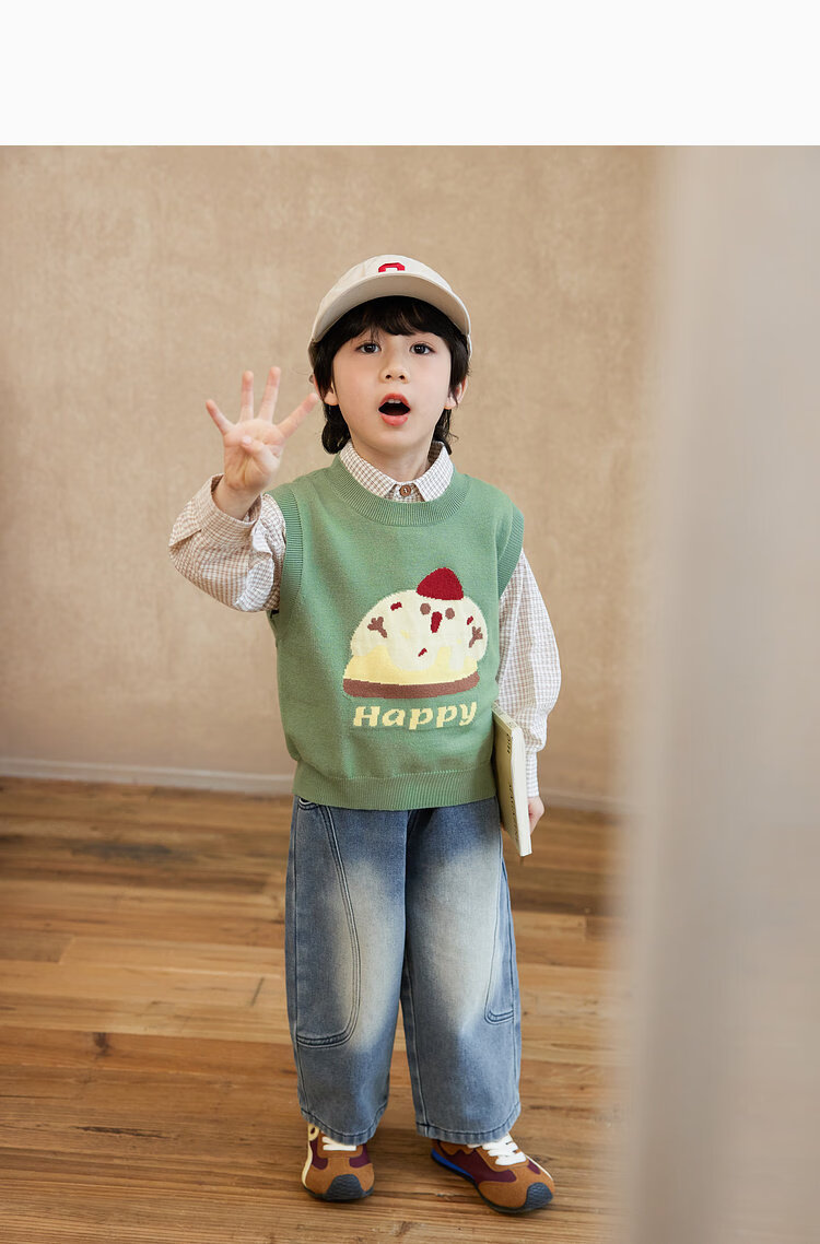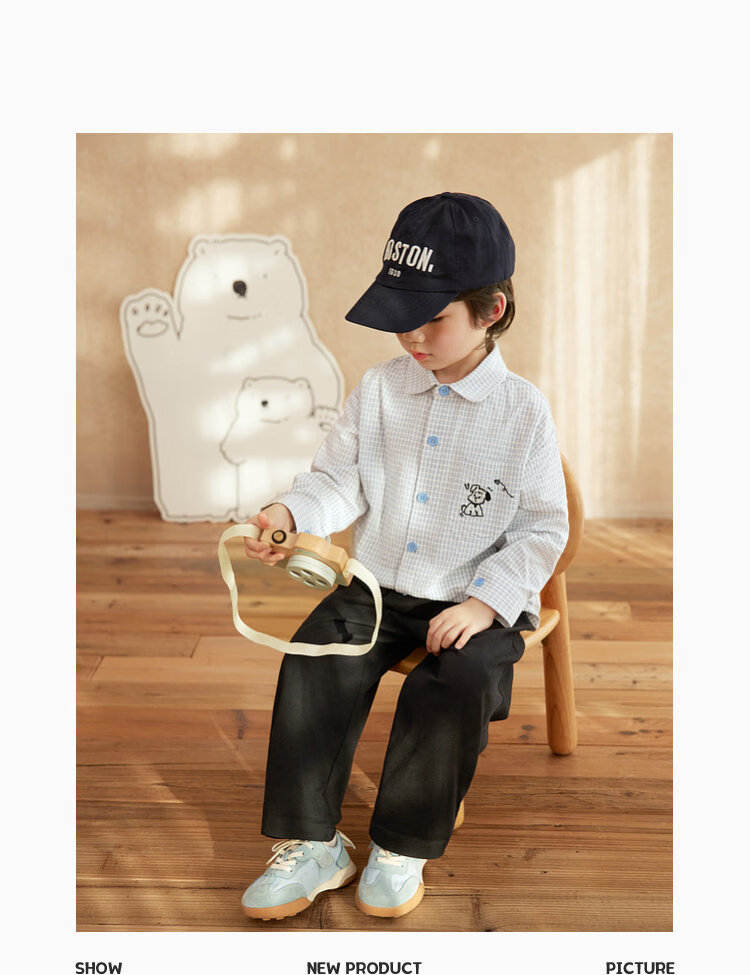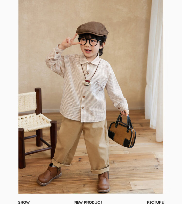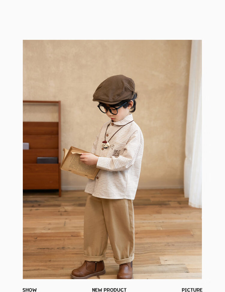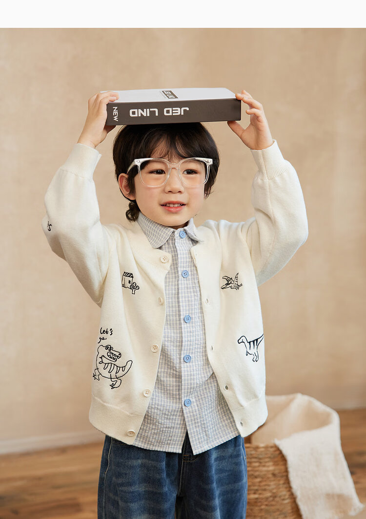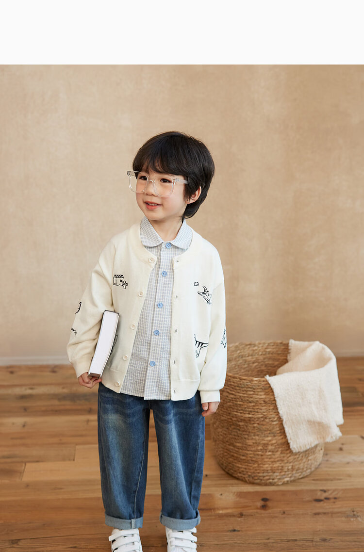 LUSON Boys Classic Plaid Embroidered Shirt 2026 Spring New Cute Retro College Style Top Blue 90