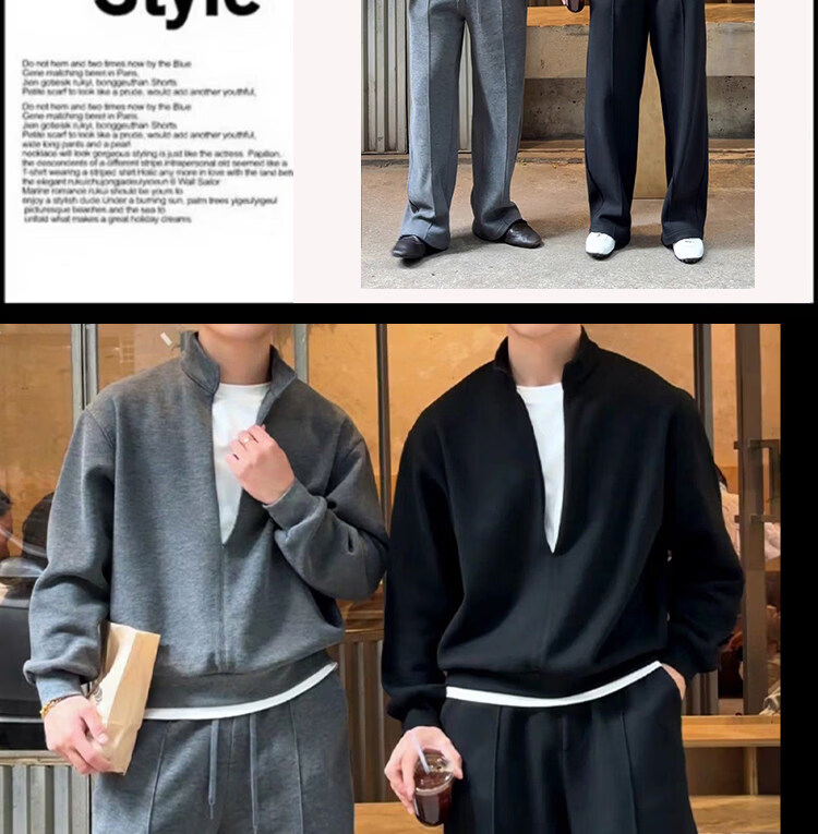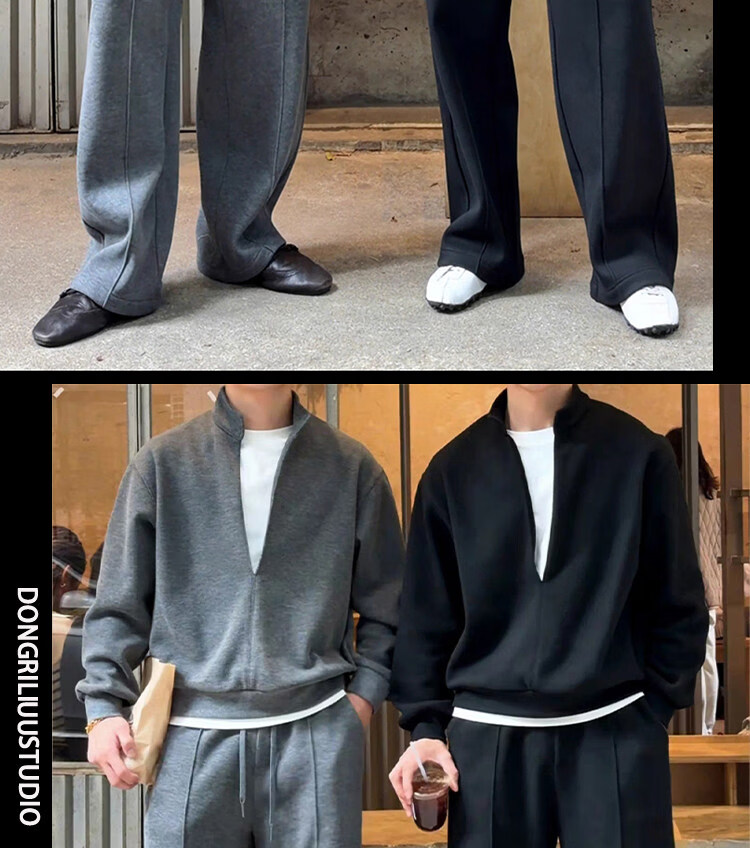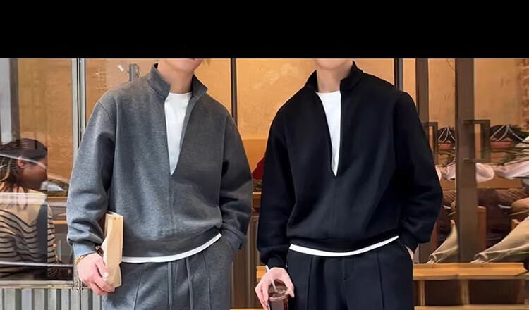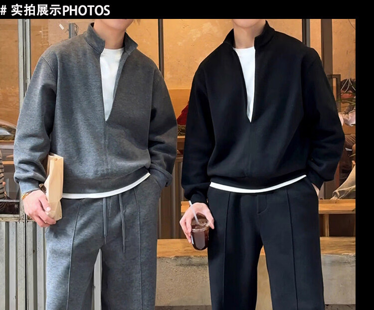 ROMON spring design stitched collar fake two-piece sweatshirt suit for men, trendy, handsome, high-end, old money style two-piece suit, black regular M