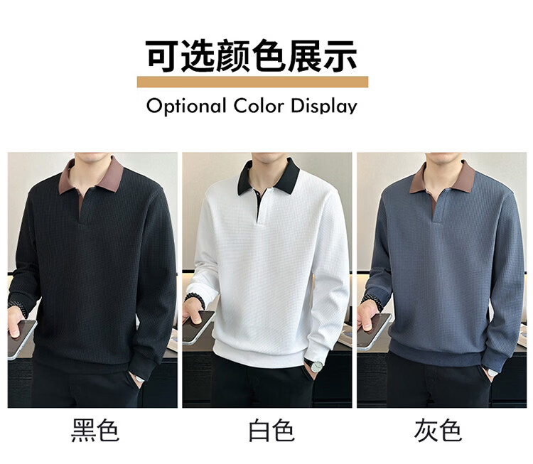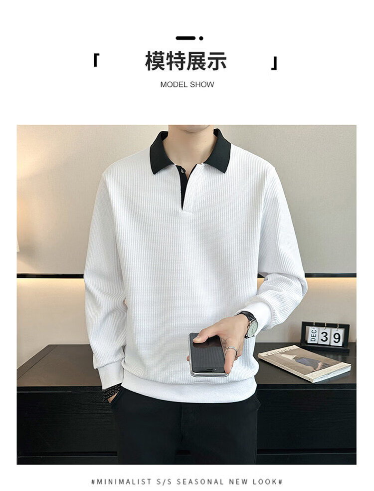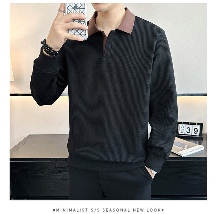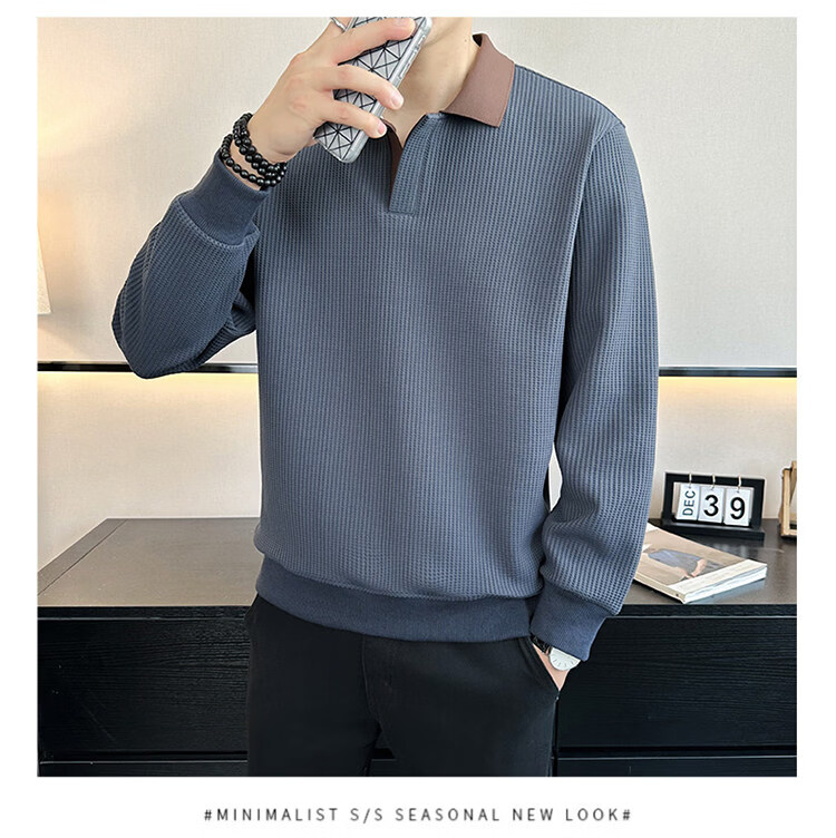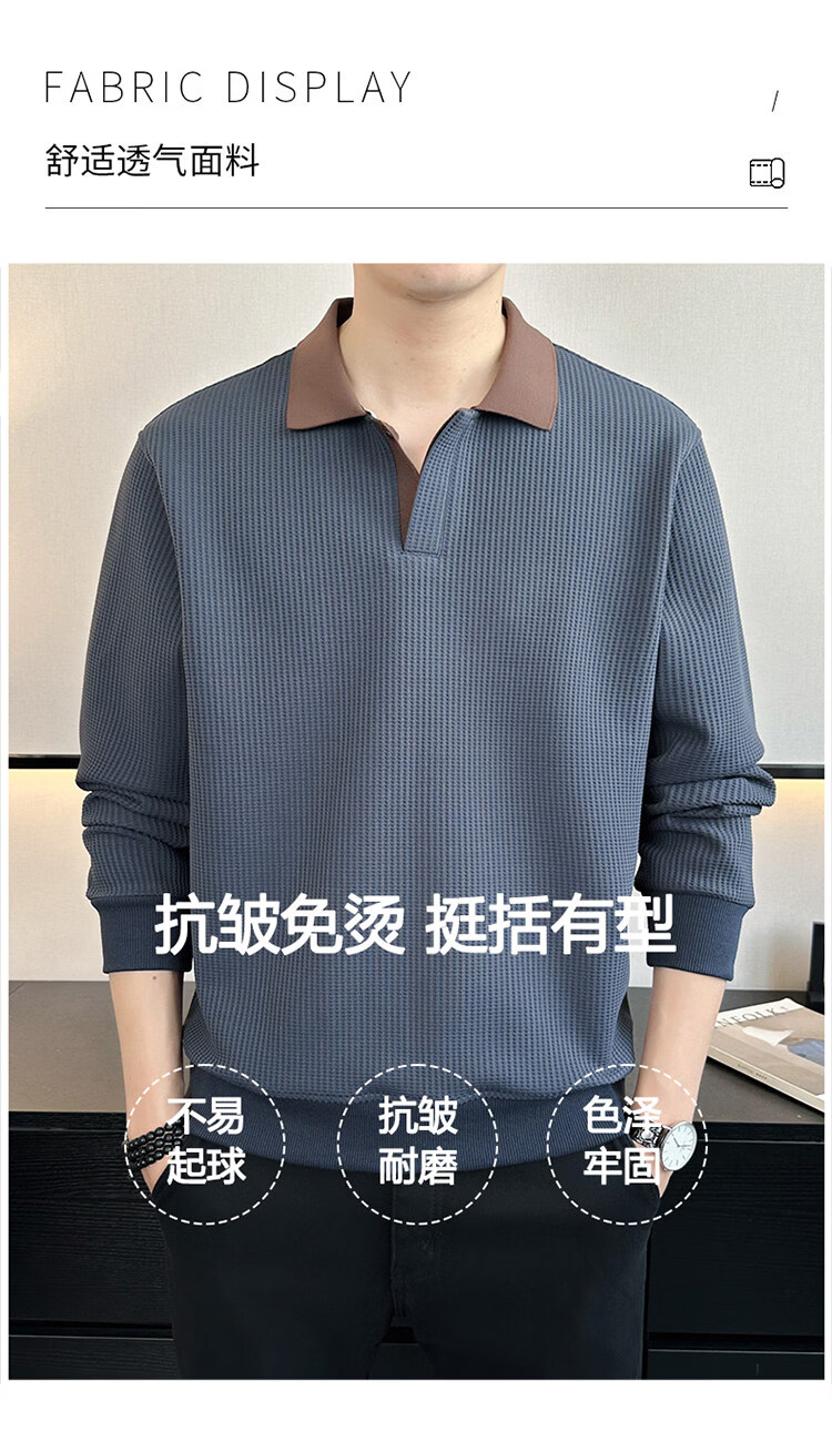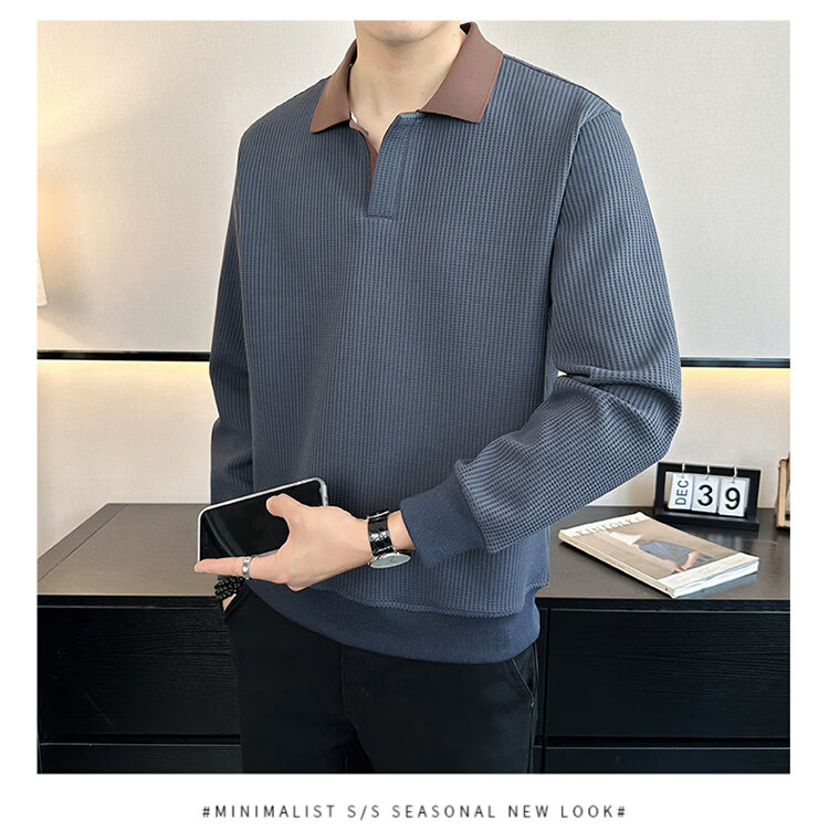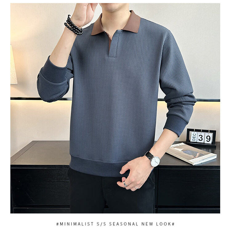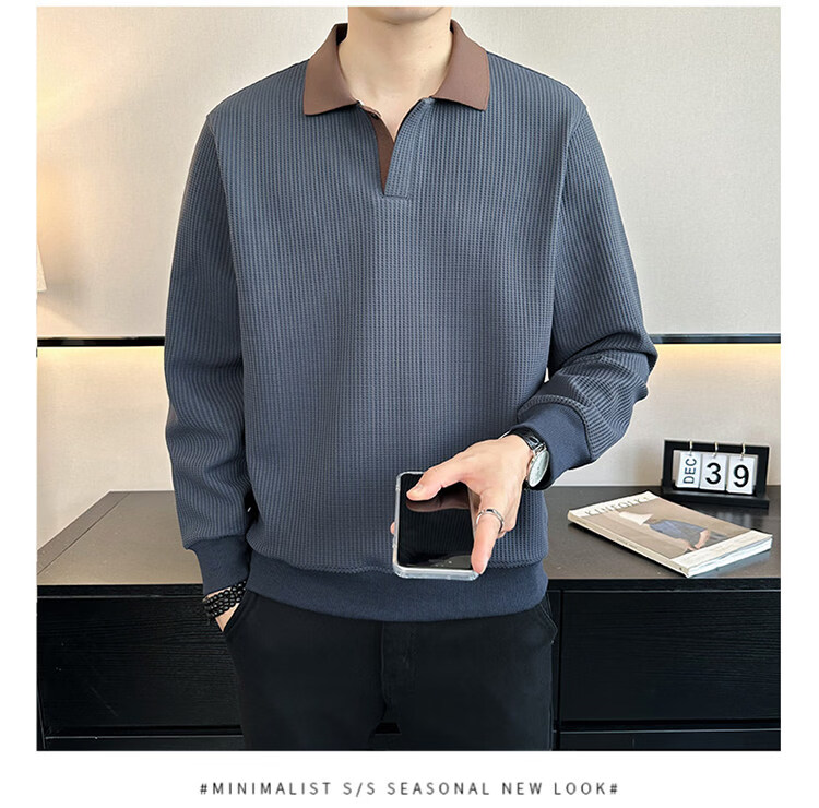 ROMON high-end heavyweight sweatshirt for men spring 2026 new trendy simple versatile long-sleeved polo shirt loose lapel T-shirt gray W022 sweatshirt M (approximately -120Jin Jin is equal to 0.5kg can be worn)