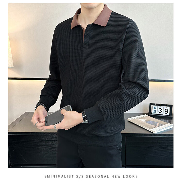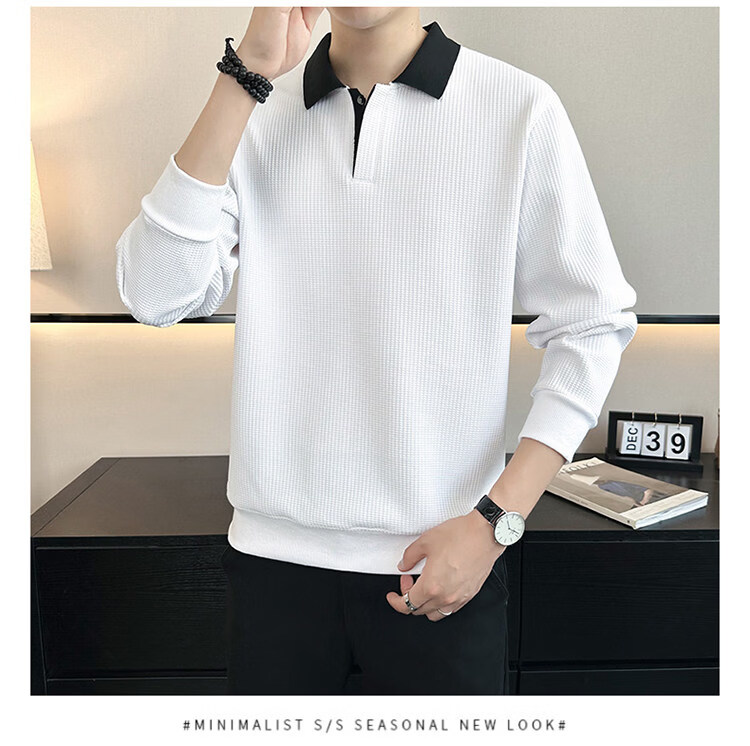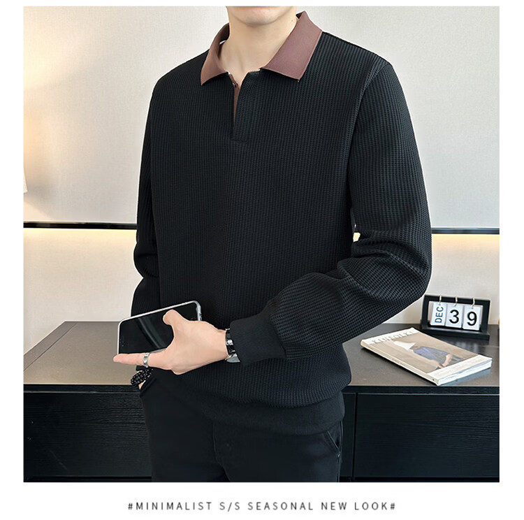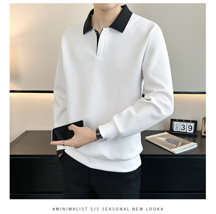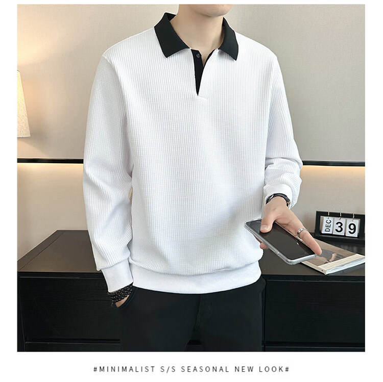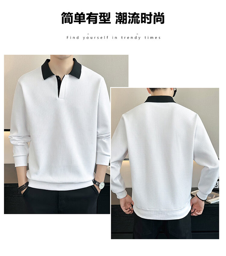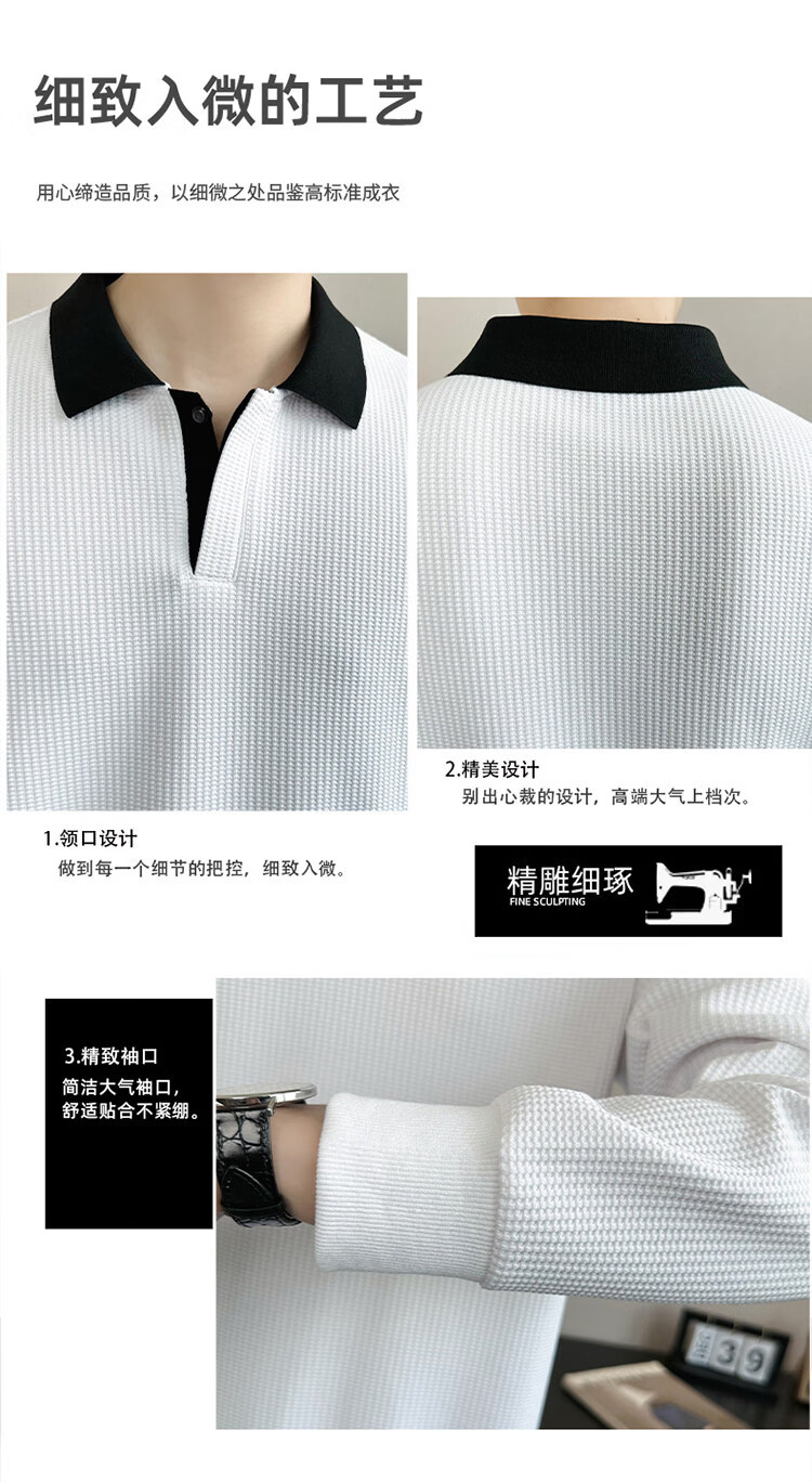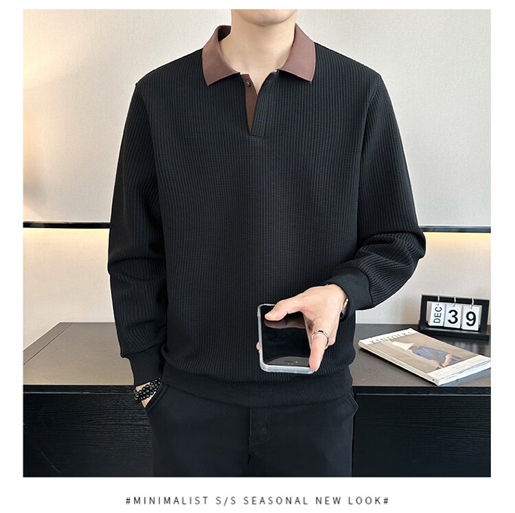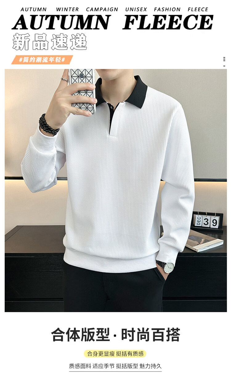 ROMON high-end heavyweight sweatshirt for men spring 2026 new trendy simple versatile long-sleeved polo shirt loose lapel T-shirt gray W022 sweatshirt M (approximately -120Jin Jin is equal to 0.5kg can be worn)
