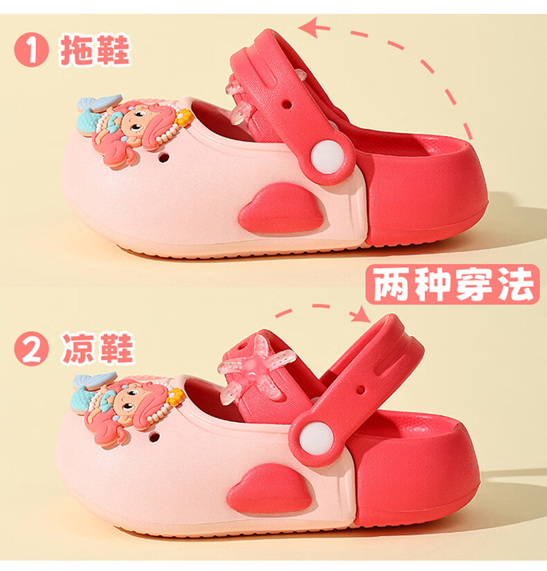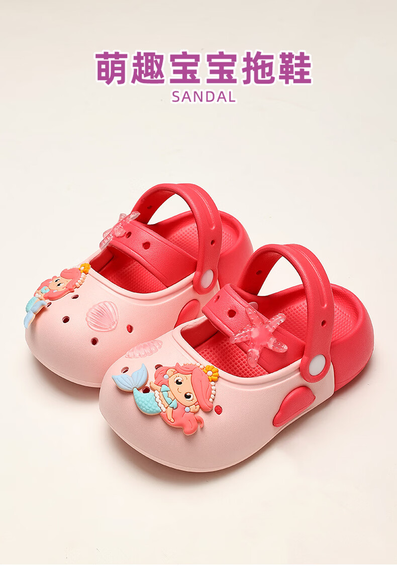 Yunyouli (yunyouli) children's slippers girls summer 2026 new baby girl cute slippers outer sandals girls hole shoes pink 10.5 190mm about size 30-31
