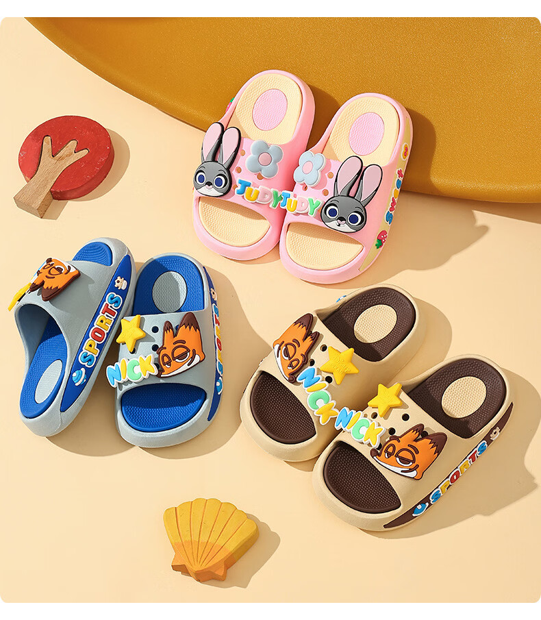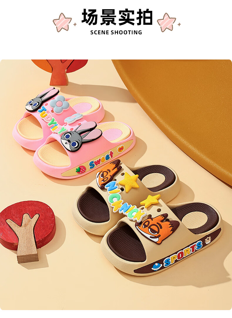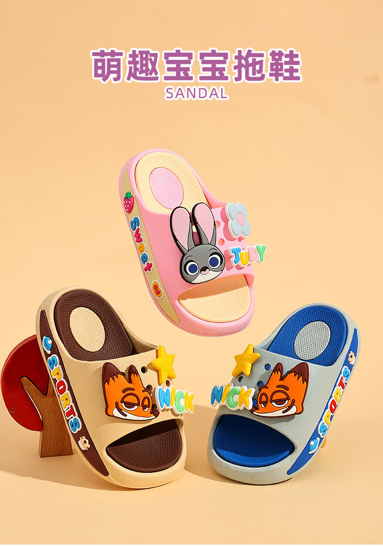 Yunyouli Judi Nick co-branded children's summer slippers, non-slip, wear-resistant, indoor and outdoor cartoon home slippers for children, pink, size 32-33, inner length 20cm