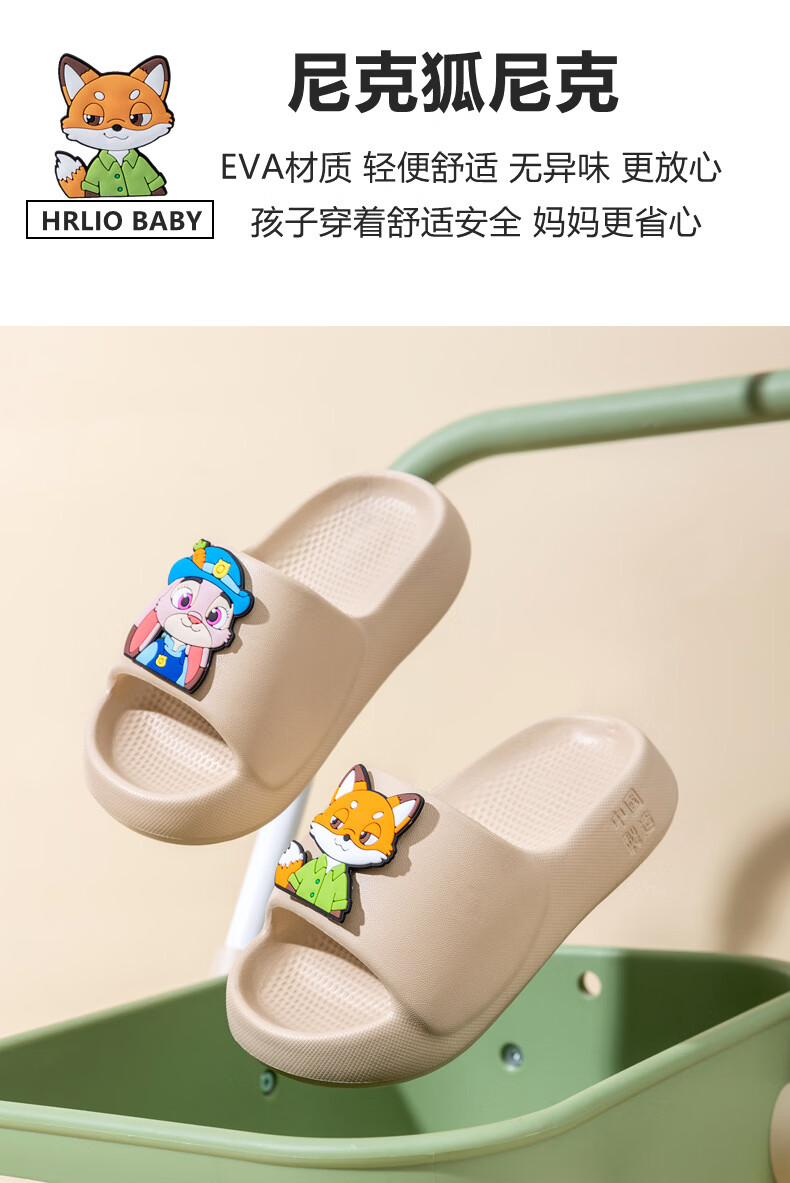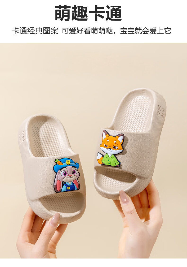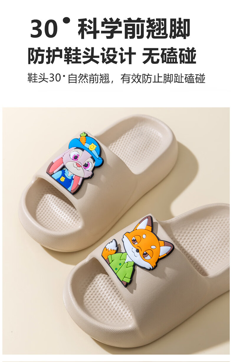 韵优利(yunyouli)夏季儿童凉拖鞋男童卡通居家拖鞋女童宝宝疯狂动物城凉拖狐尼克 卡其色(升级版) 34 -35码内长21.5cm约8-9岁