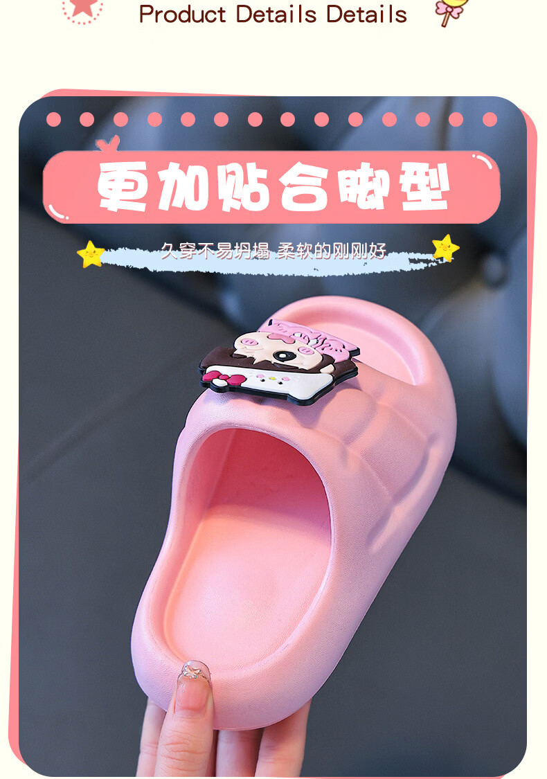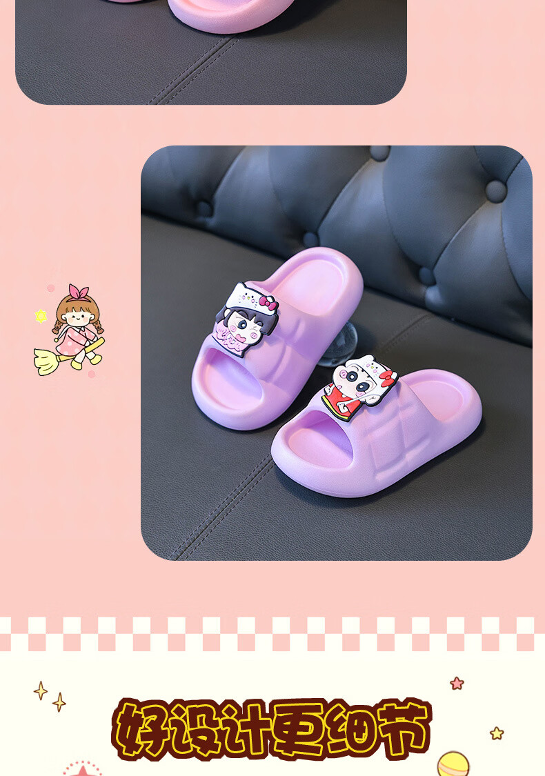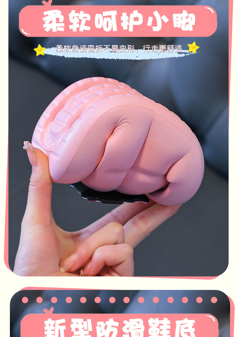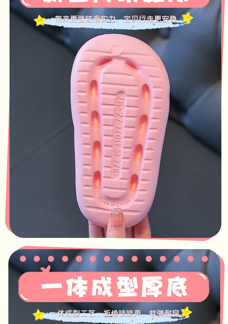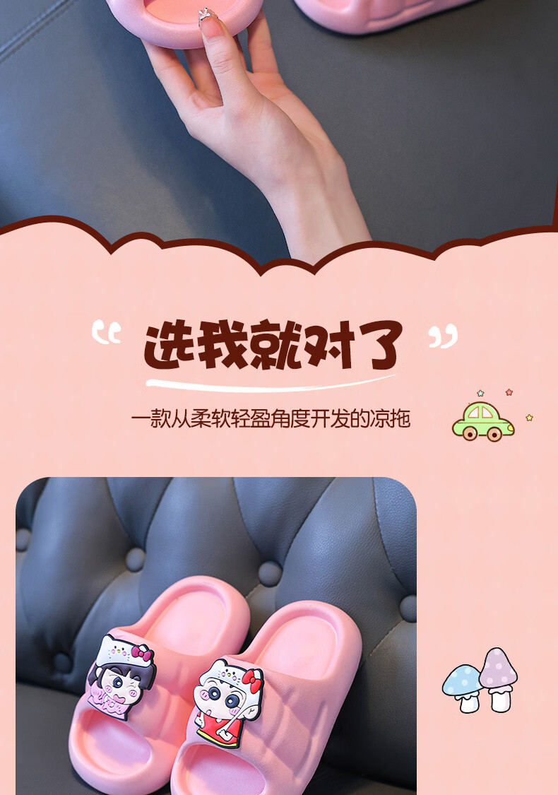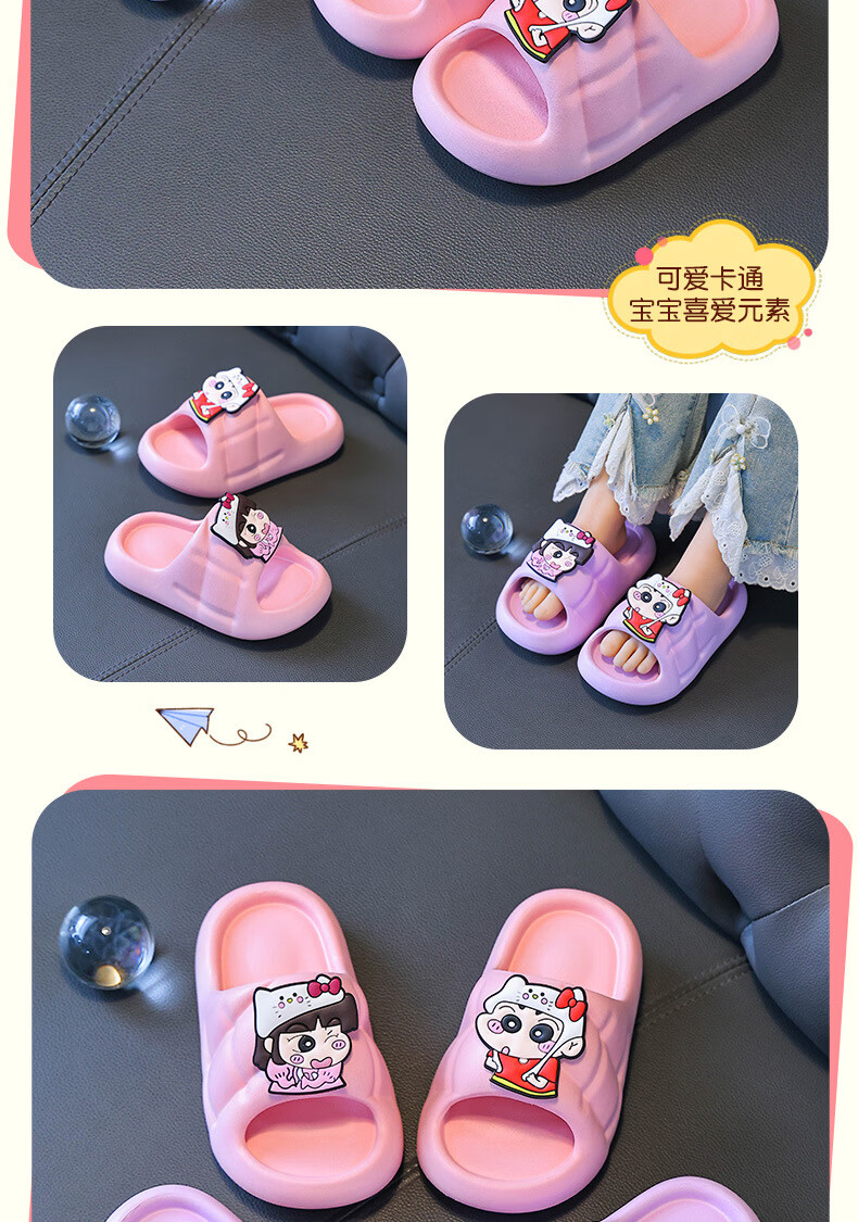Yunyouli (yunyouli) cartoon co-branded baby slippers direct supply non-slip soft bottom flip flops for children and middle-aged children, pink, size 36-37, inner length 22cm